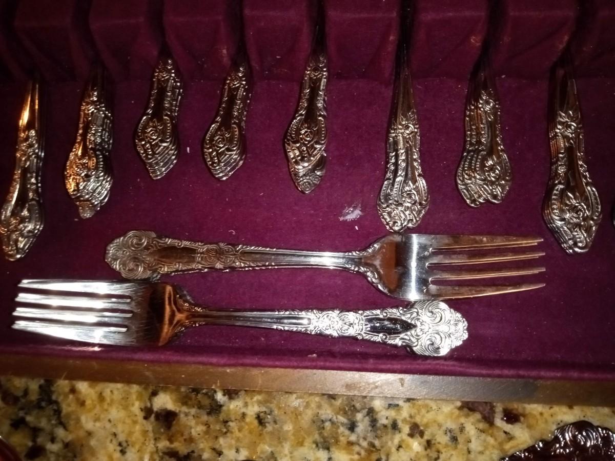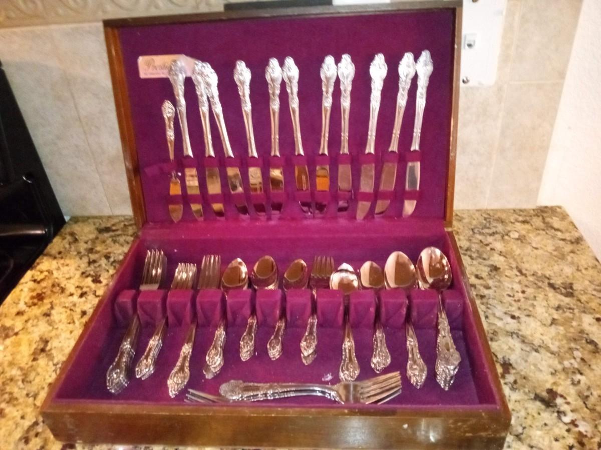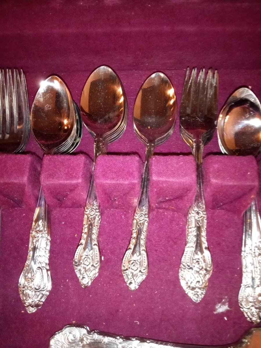 THIS IS A 12-PLACE SETTING MINUS 1 KNIFE. THERE ARE EXTRAS THAT DON'T QUITE MATCH THE MAIN PATTERN BUT ARE SO CLOSE.