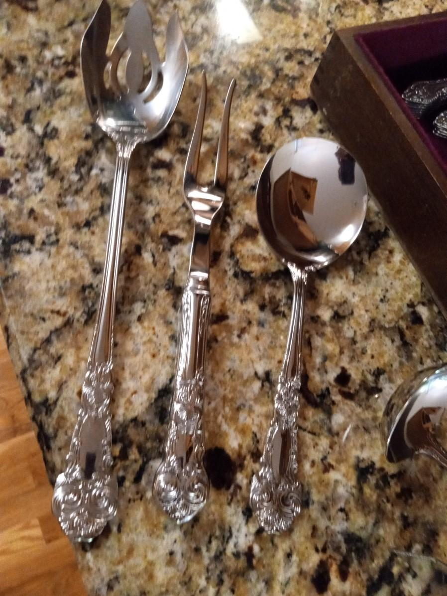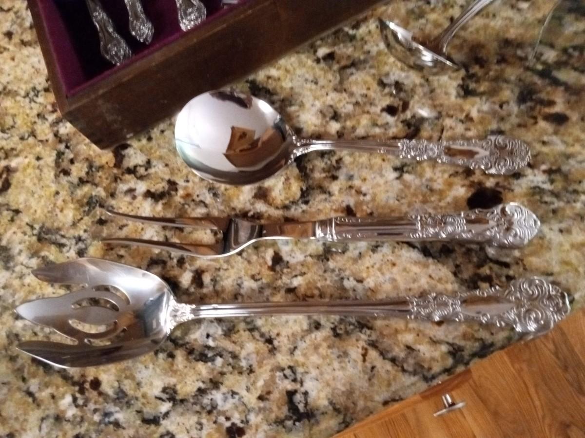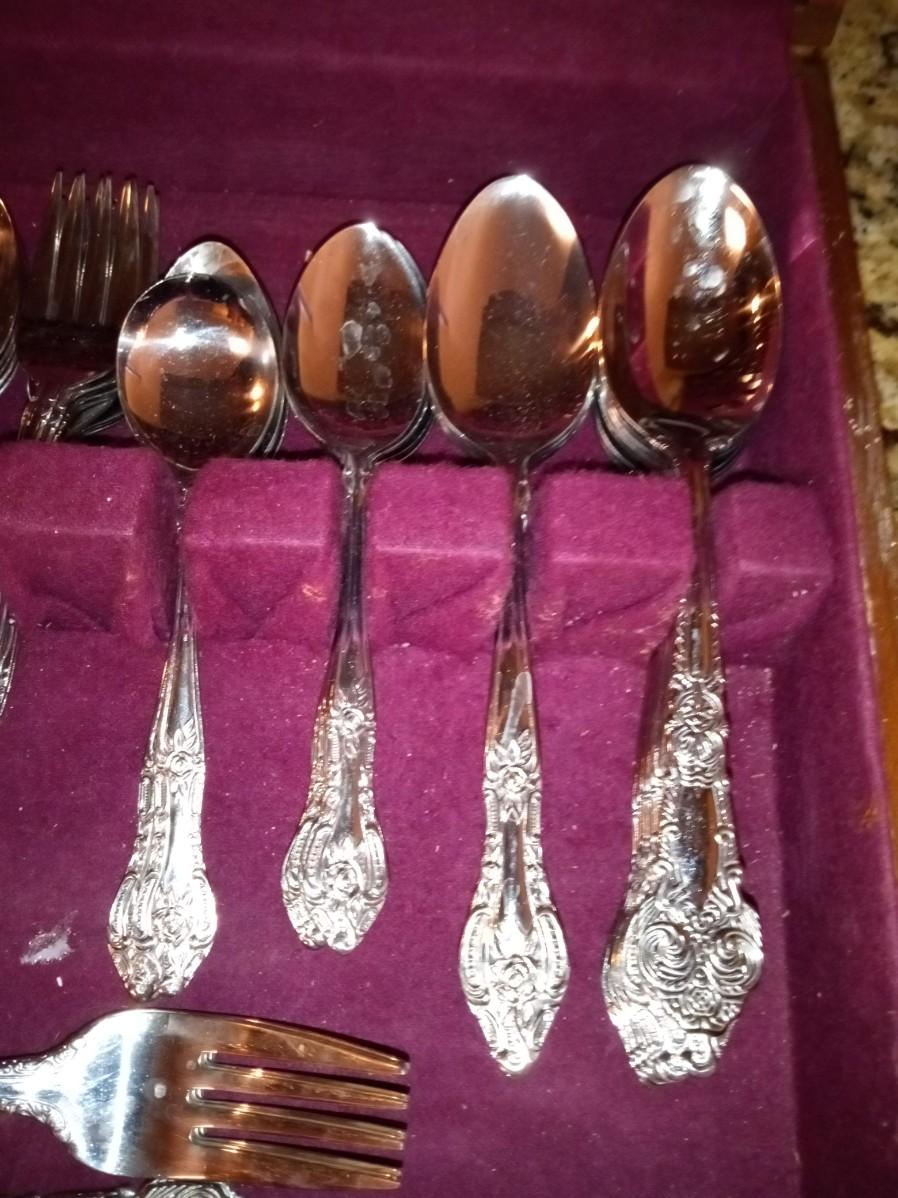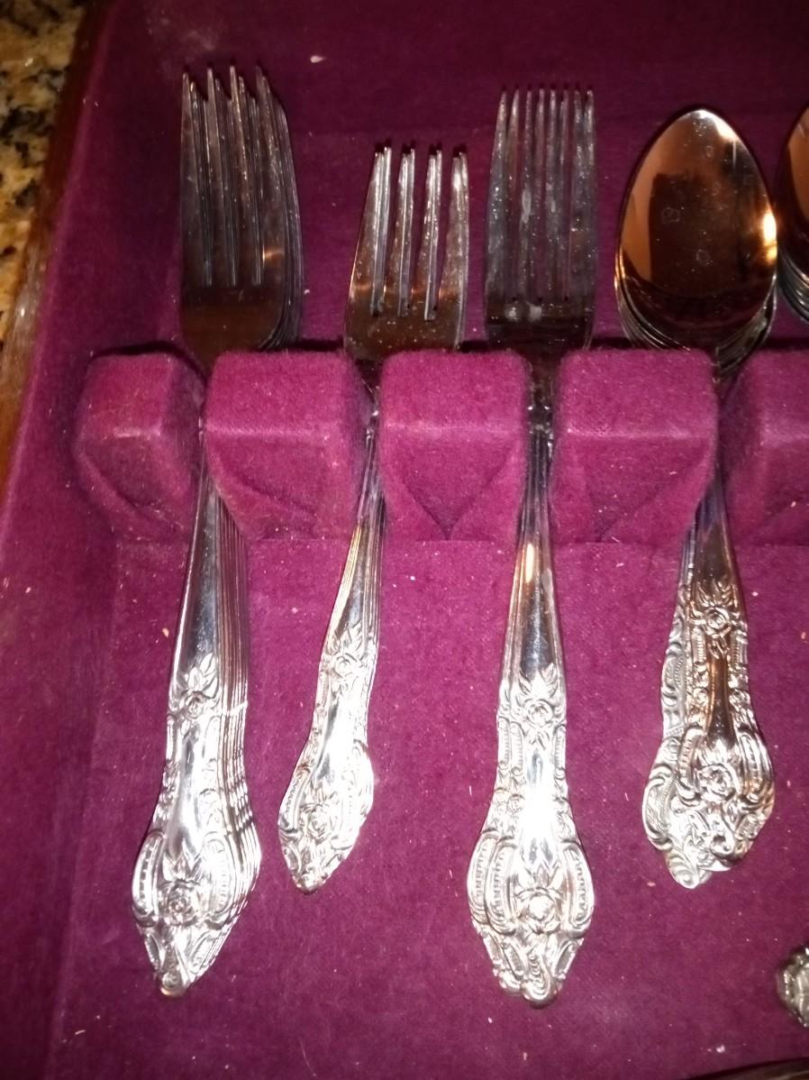 THIS IS A 12-PLACE SETTING MINUS 1 KNIFE. THERE ARE EXTRAS THAT DON'T QUITE MATCH THE MAIN PATTERN BUT ARE SO CLOSE.
