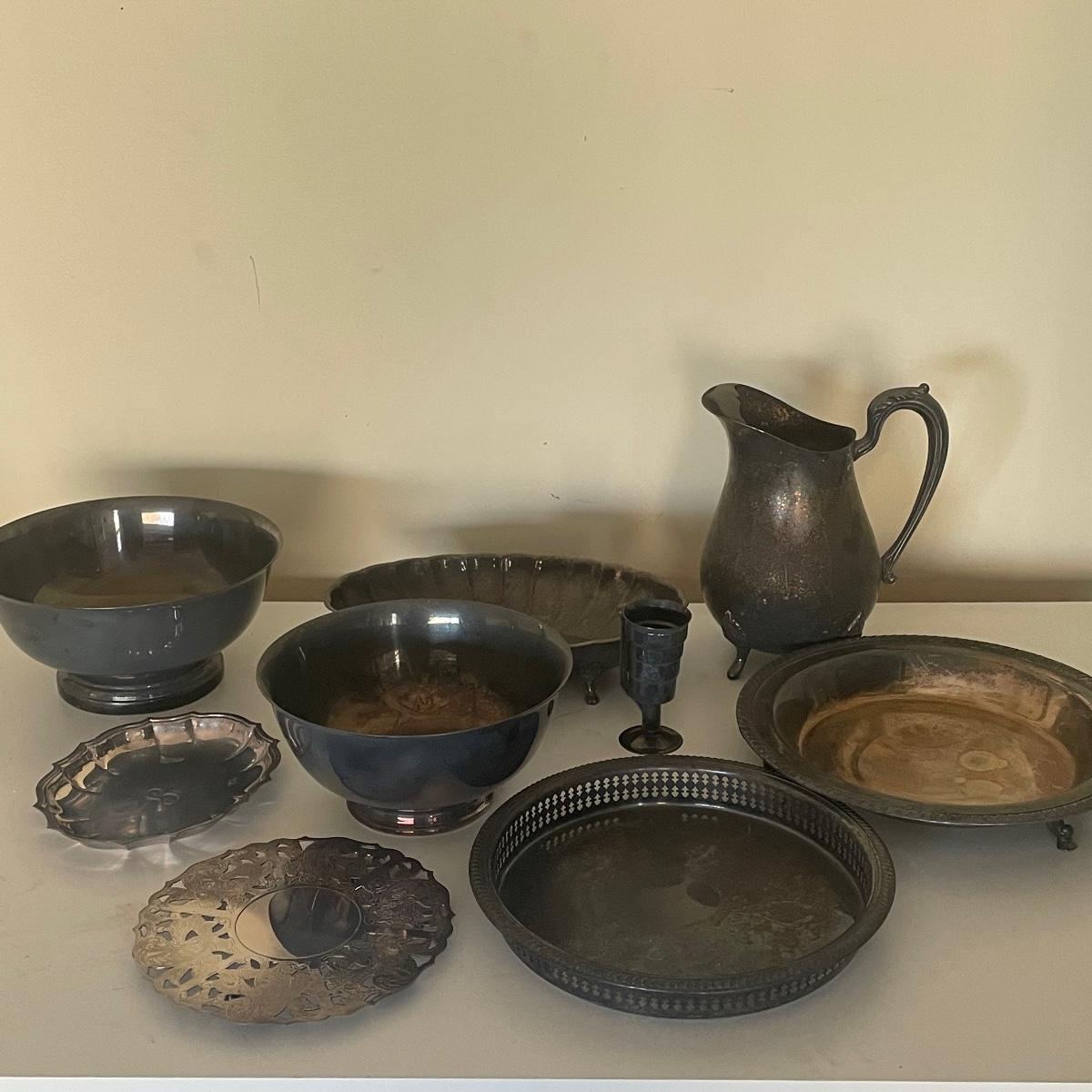 A great assortment of silver plated items here that includes Reed & Barton and Newport. There is a good amount of tarnishing on items that just need cleaning.