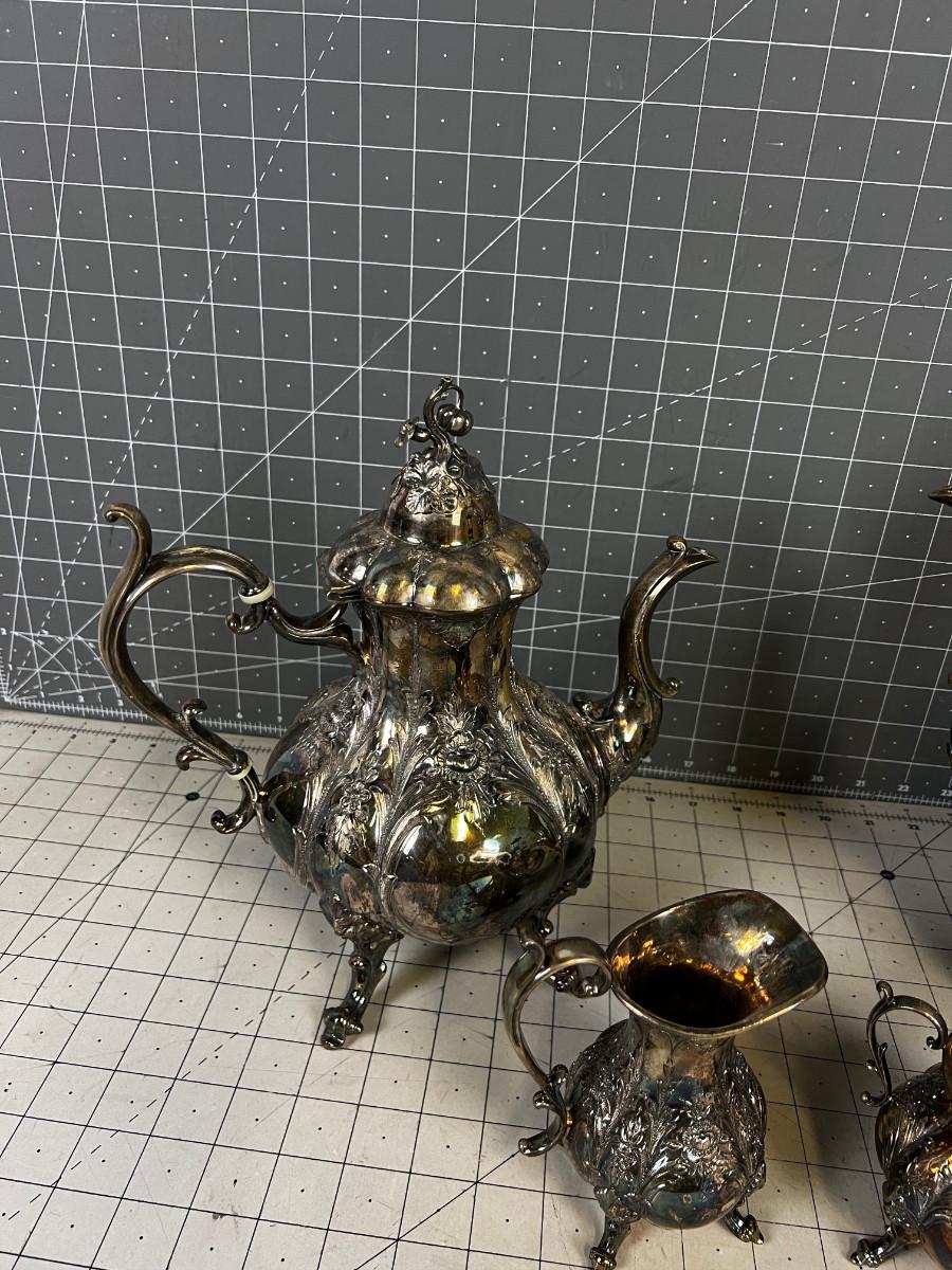 REED & BARTON Silver Plated Tea and Coffee Pots Plus Cream & Sugar Set (4 pieces)  Used. Plated. Awesome!!!!