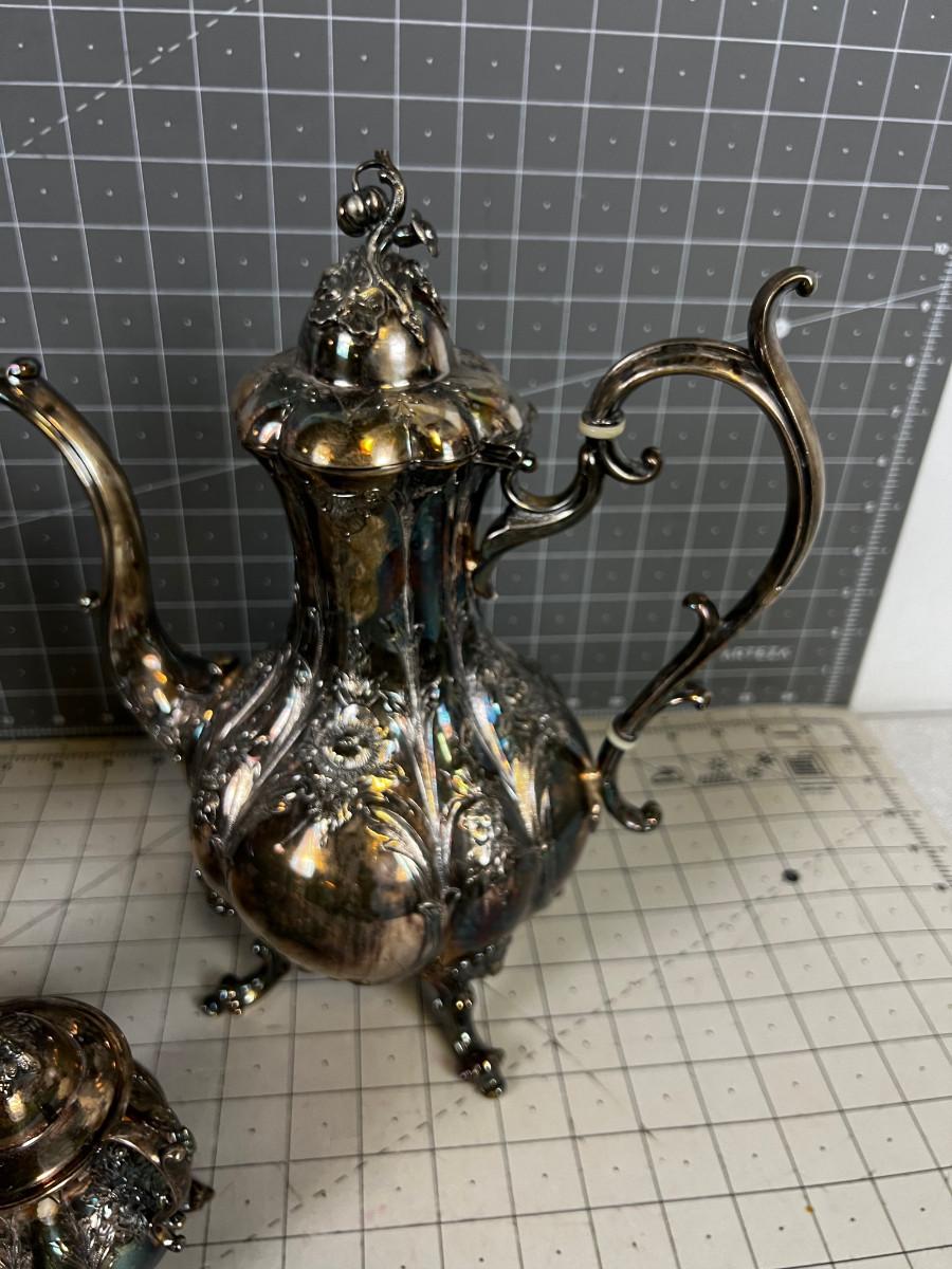 REED & BARTON Silver Plated Tea and Coffee Pots Plus Cream & Sugar Set (4 pieces) Used. Plated. Awesome!!!!