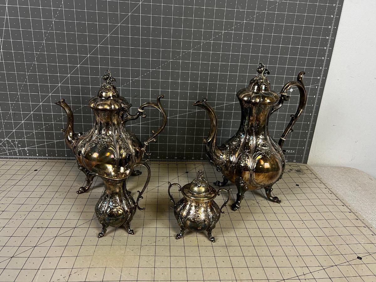 REED & BARTON Silver Plated Tea and Coffee Pots Plus Cream & Sugar Set (4 pieces)