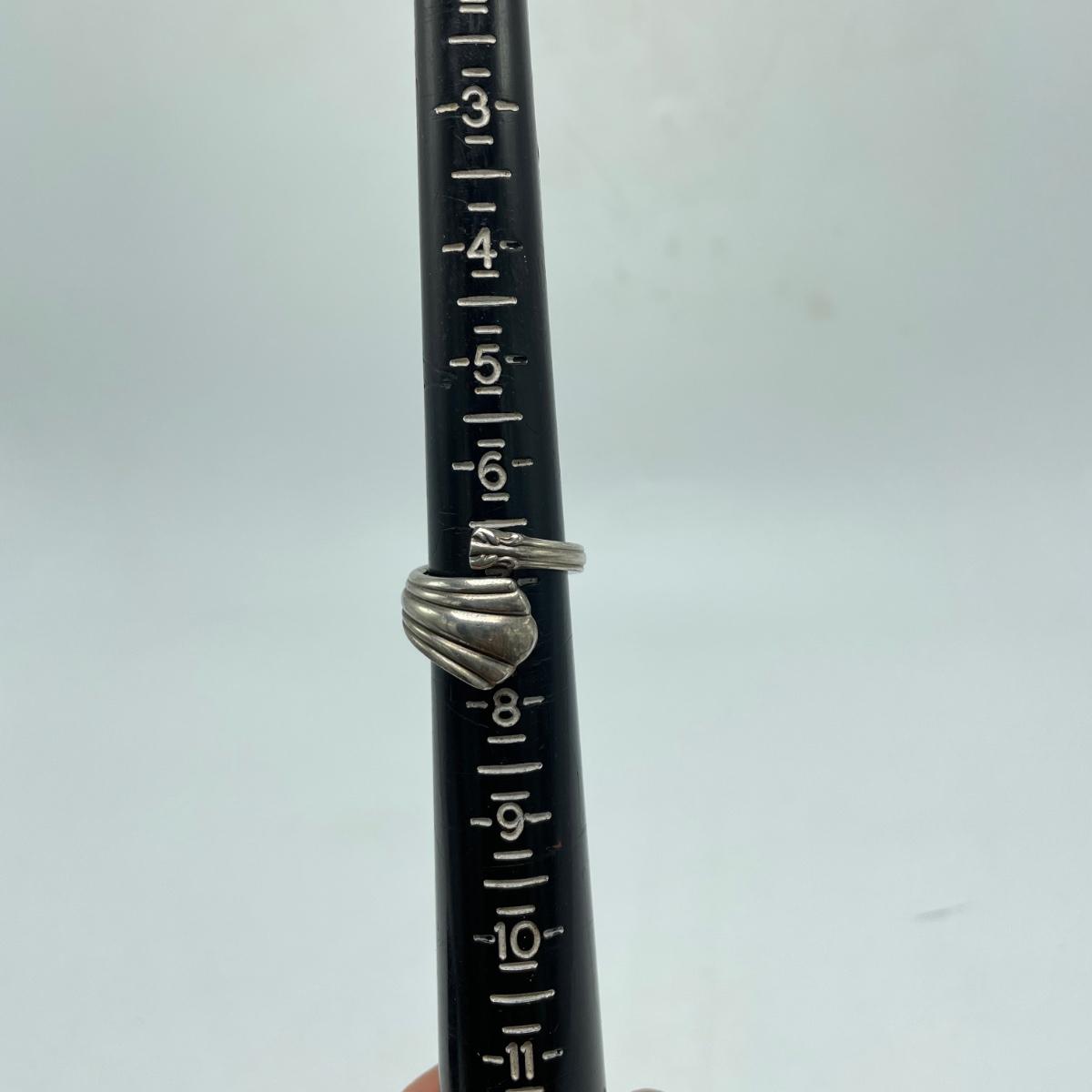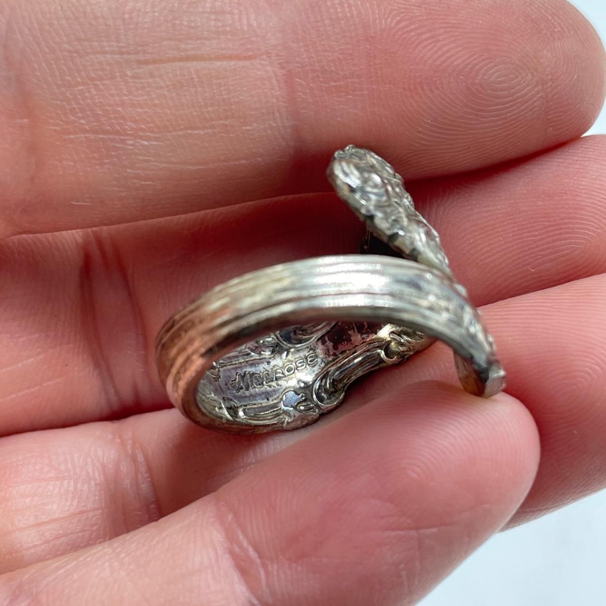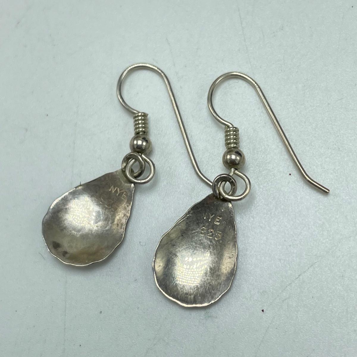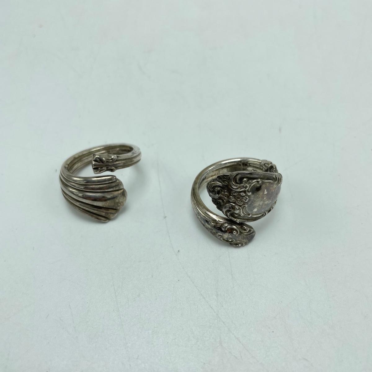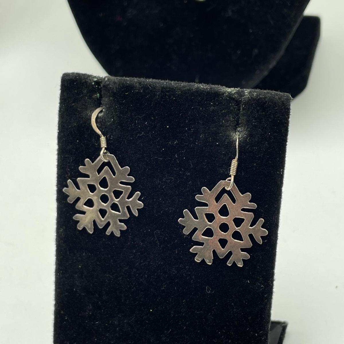 Three necklaces, the two with heart shaped pendants are marked sterling. There is a sterling linked bracelet, a snowflake pair of earrings and a local artist Stuart Nye earrings both marked 925. Lot features five rings three have smudged marks, but no clear 925 or sterling marks. The two repurposed silverware are both marked sterling. One is Reed & Barton and the other is Melrose by Gorham. See images. Shipping available.