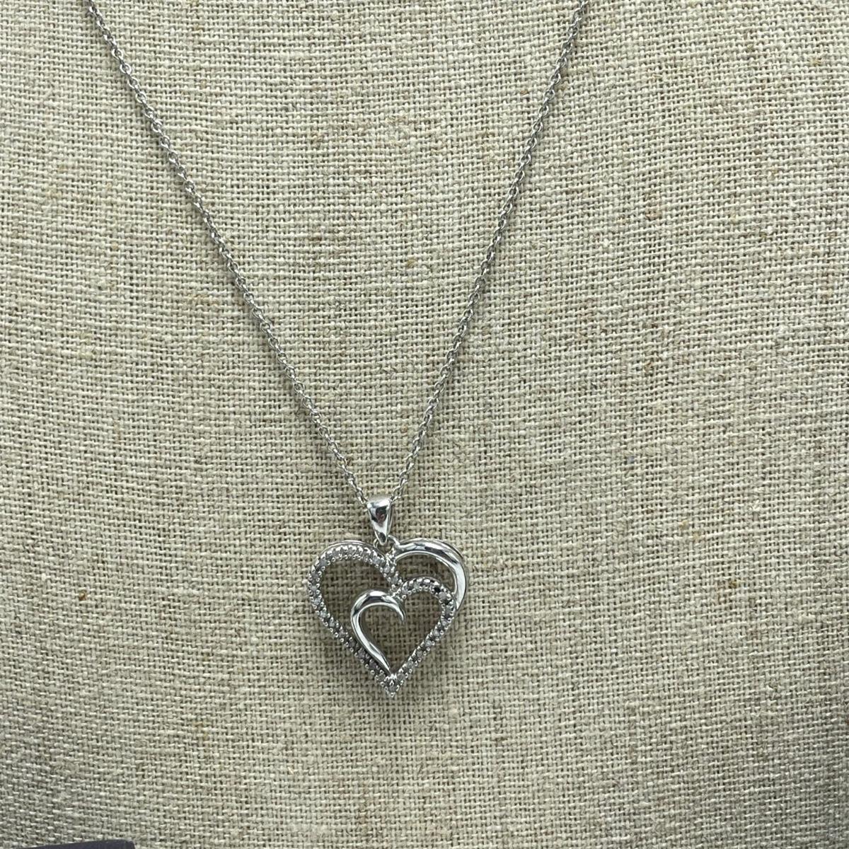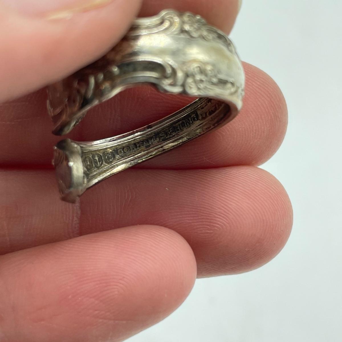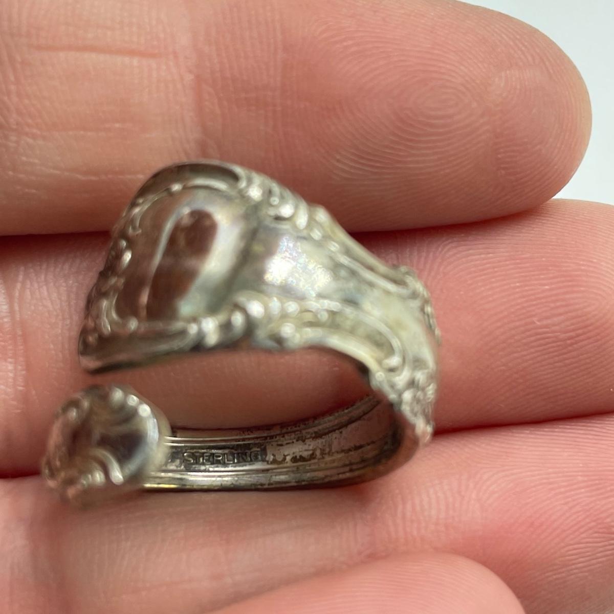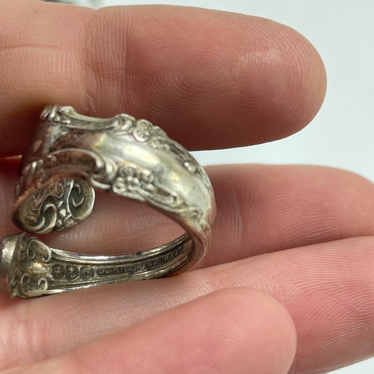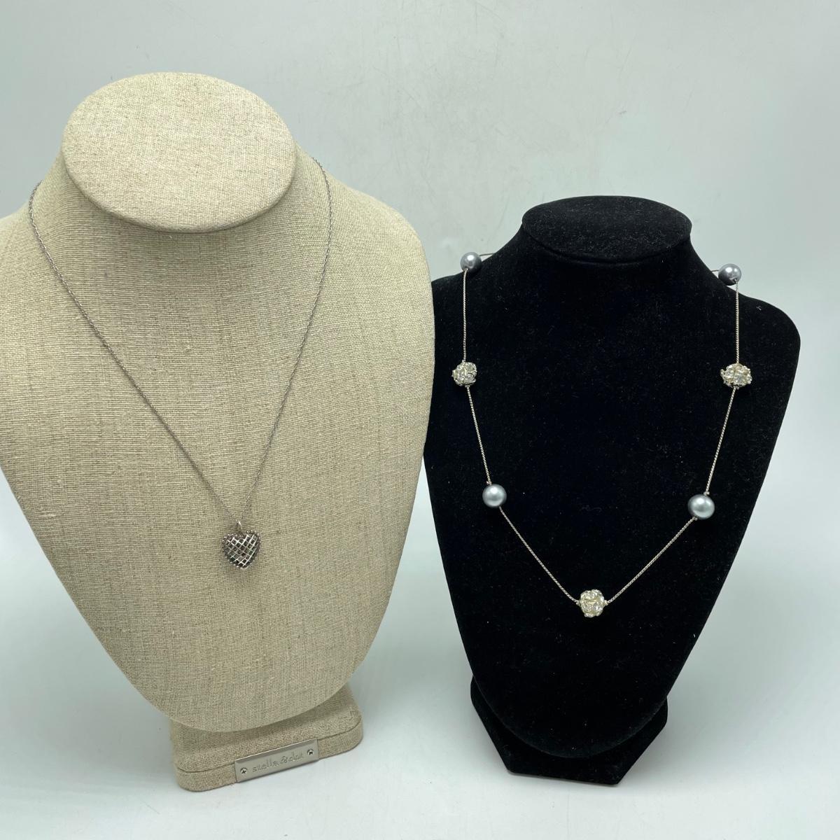 Three necklaces, the two with heart shaped pendants are marked sterling. There is a sterling linked bracelet, a snowflake pair of earrings and a local artist Stuart Nye earrings both marked 925. Lot features five rings three have smudged marks, but no clear 925 or sterling marks. The two repurposed silverware are both marked sterling. One is Reed & Barton and the other is Melrose by Gorham. See images. Shipping available.
