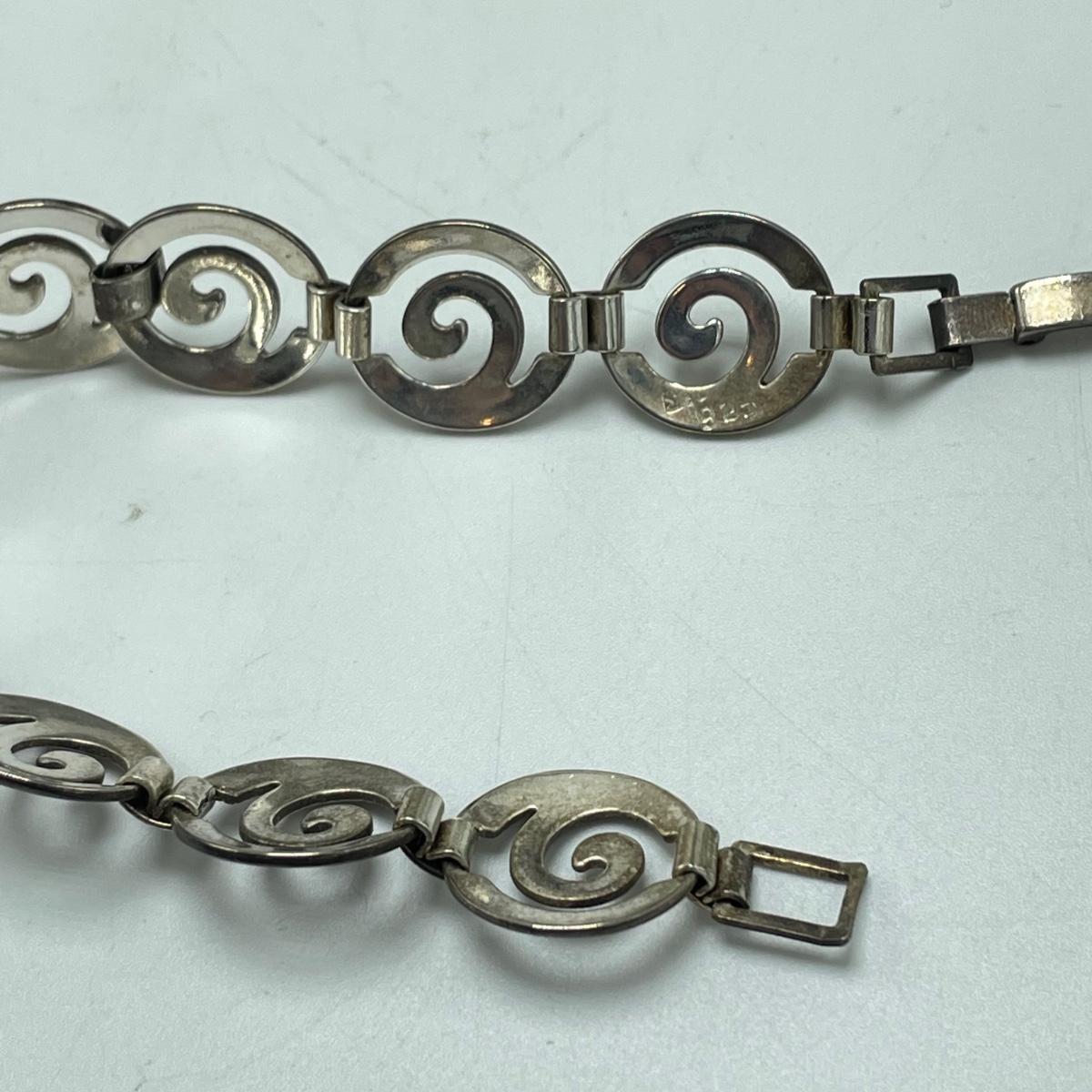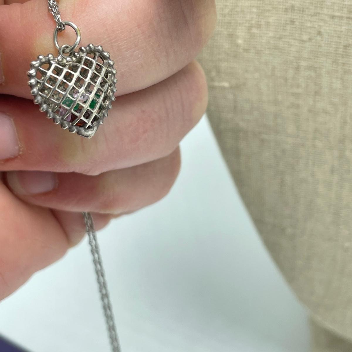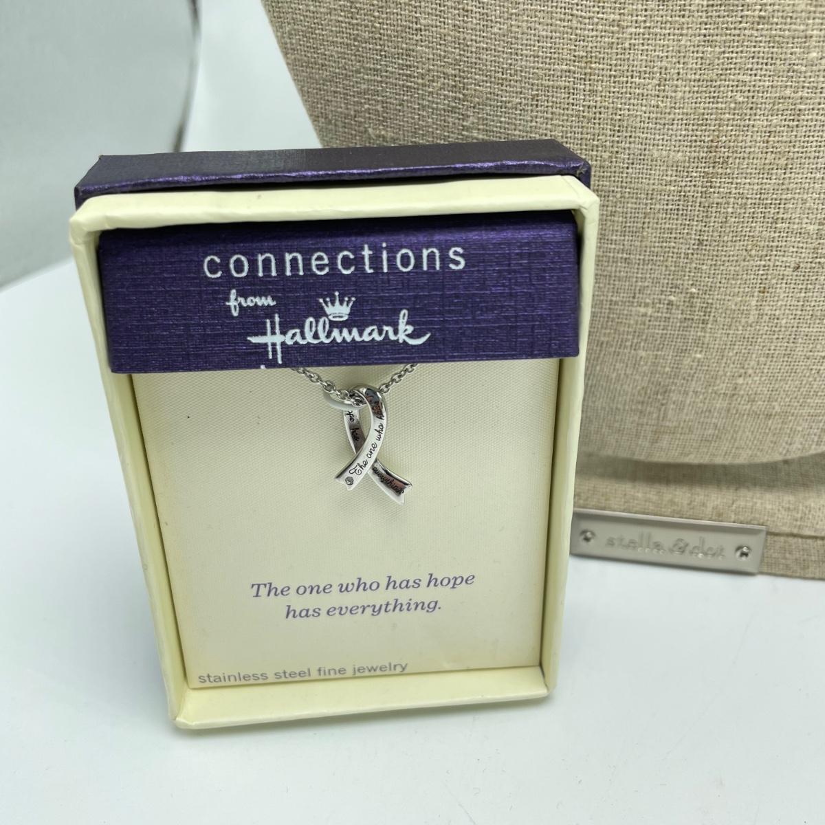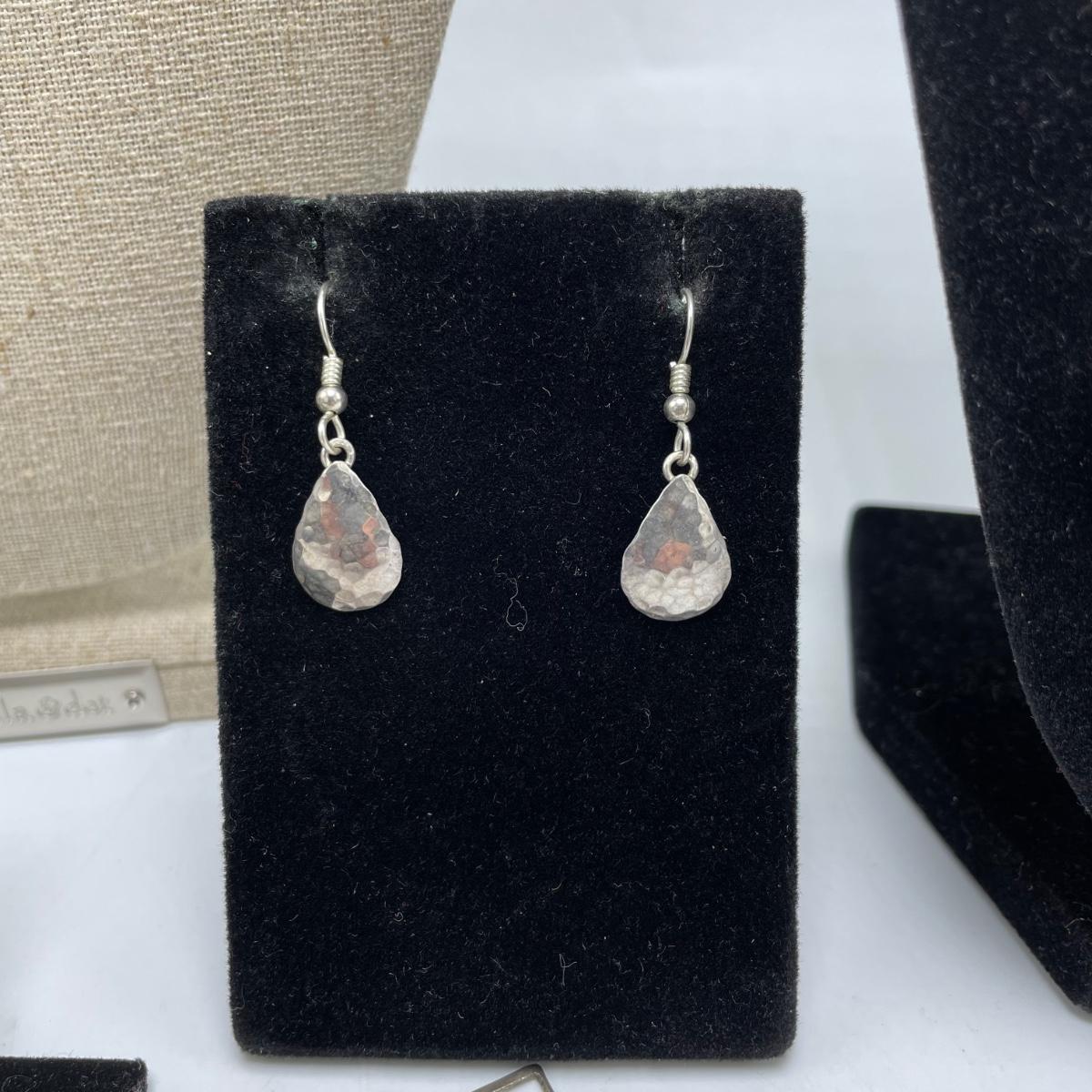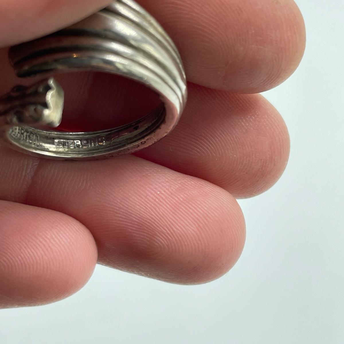Three necklaces, the two with heart shaped pendants are marked sterling. There is a sterling linked bracelet, a snowflake pair of earrings and a local artist Stuart Nye earrings both marked 925. Lot features five rings three have smudged marks, but no clear 925 or sterling marks. The two repurposed silverware are both marked sterling. One is Reed & Barton and the other is Melrose by Gorham. See images. Shipping available.