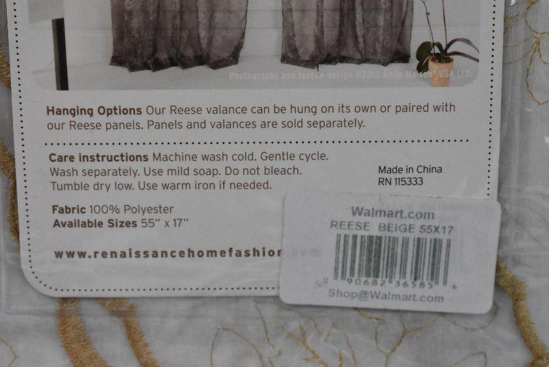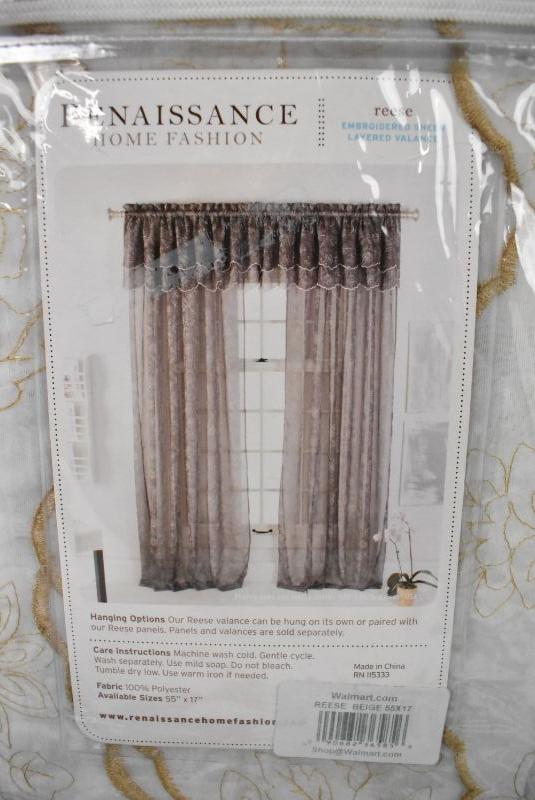 Reese Embroidered Sheer Layered Curtain Valance, 55" x 17" by Renaissance - New