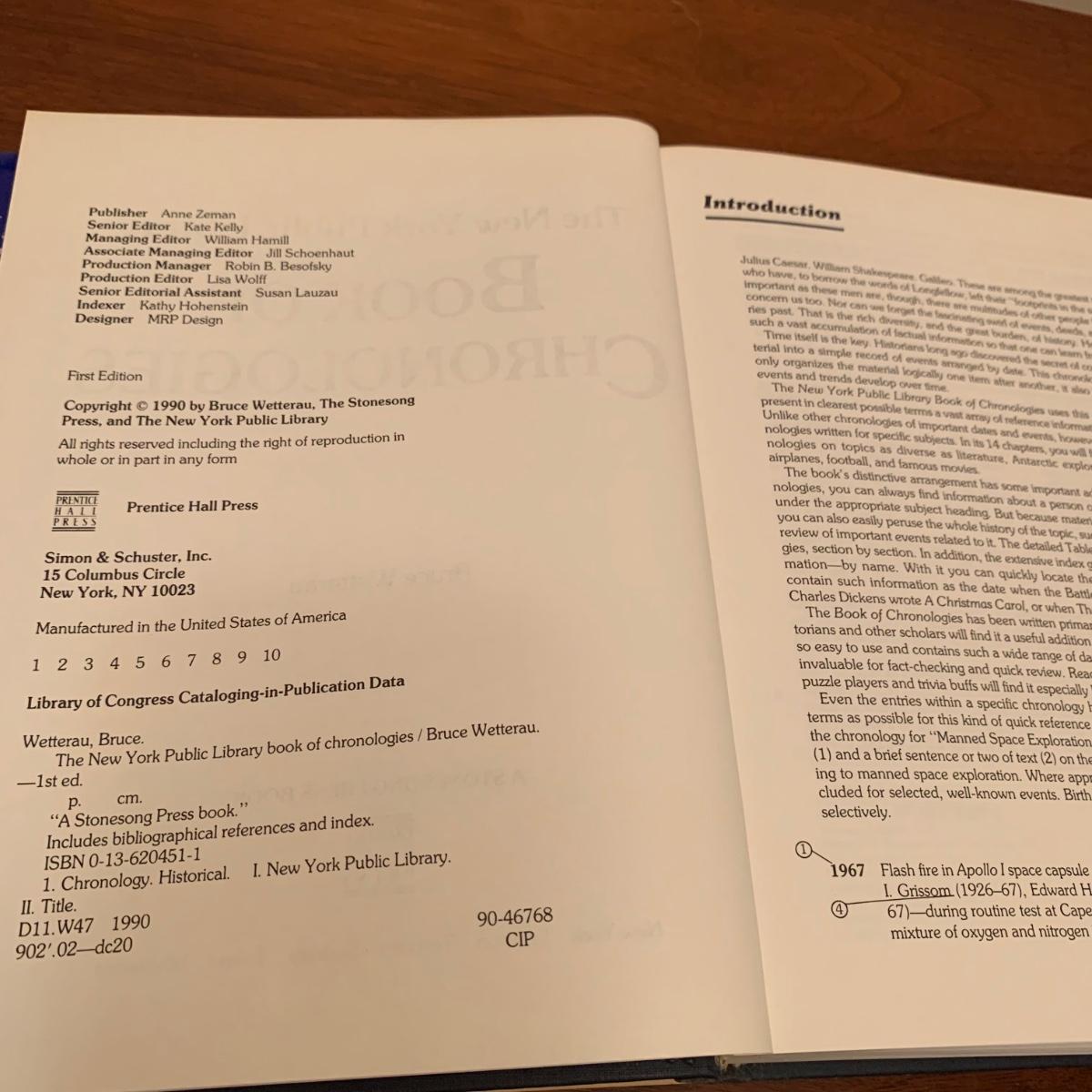 Reference Books: New Columbia Encyclopedia, Webster’s Dictionaries, & Book of Chronologies (O-HS)