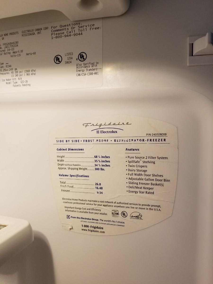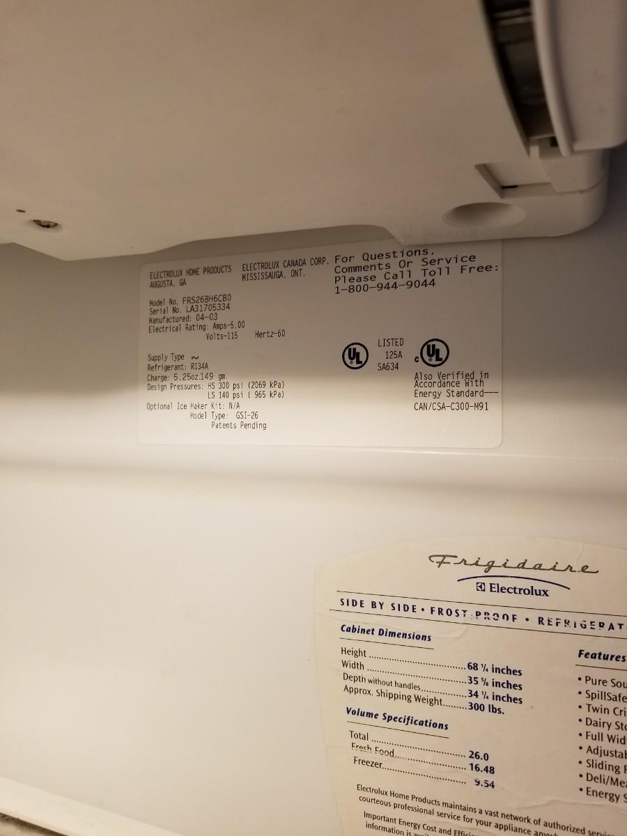 Frigidare by Electrolux working refrigerator with ice and water in the door *** refrigerator is cold and ice and water worked when last connected