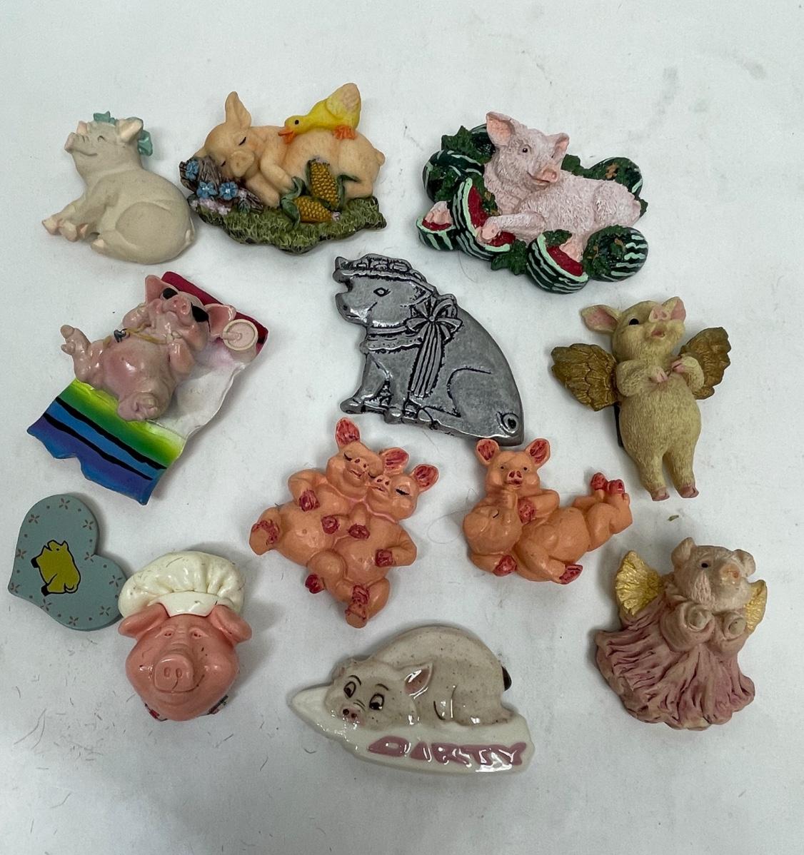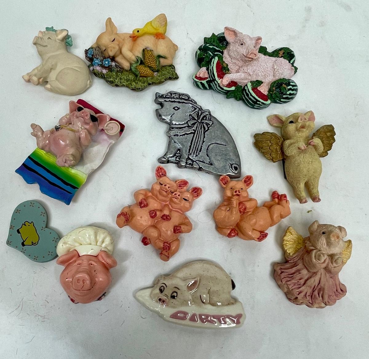 13 pig themed magnets in good used condition.