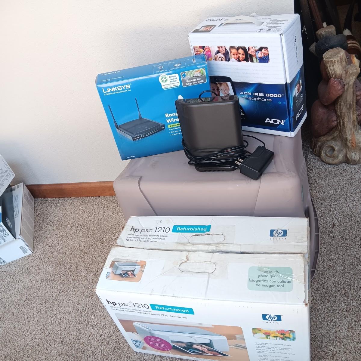 REFURBISHED HP PSC 1210 PRINTER, LINKSYS WIRELESS ROUTER AND A VIDEOPHONE