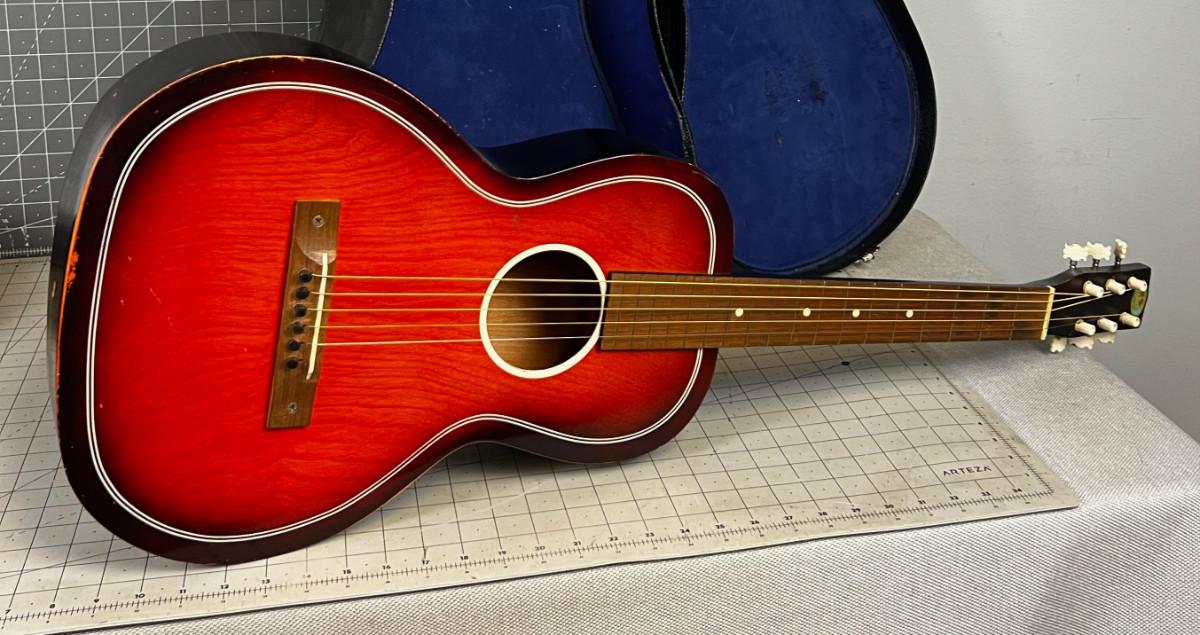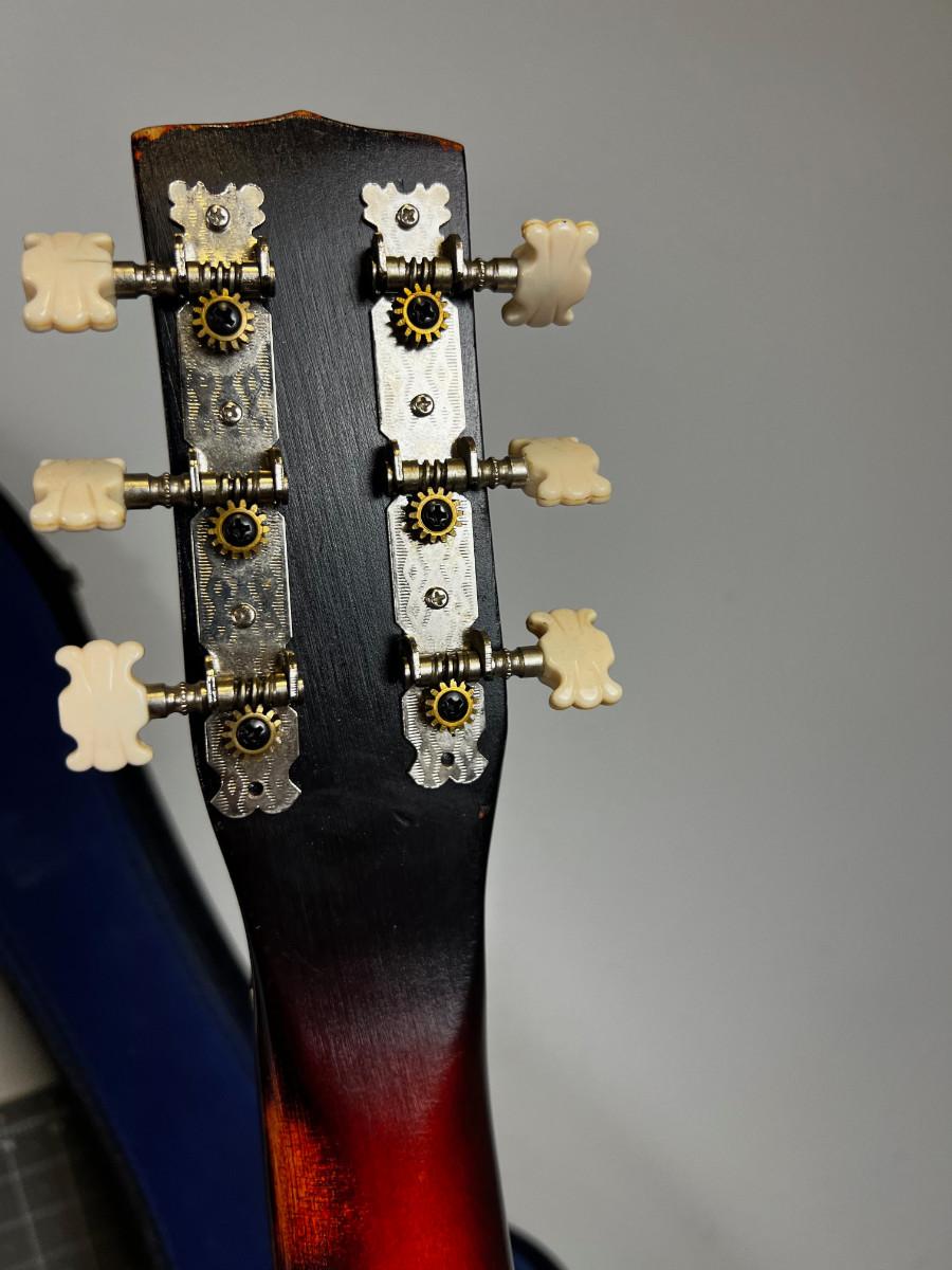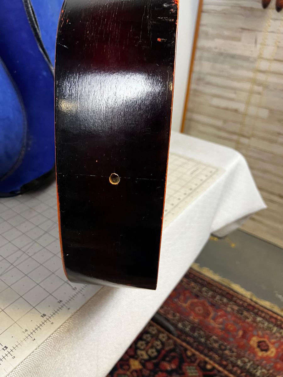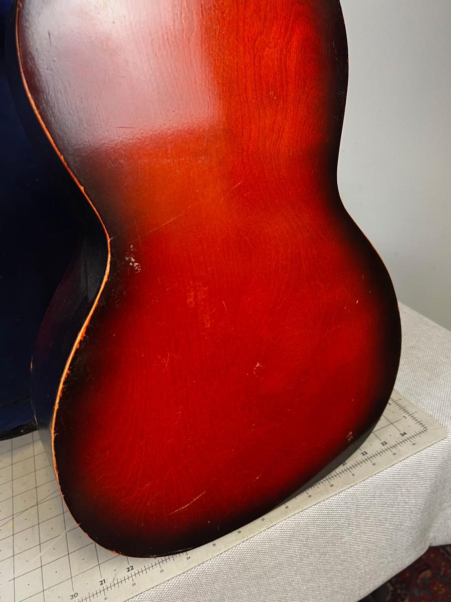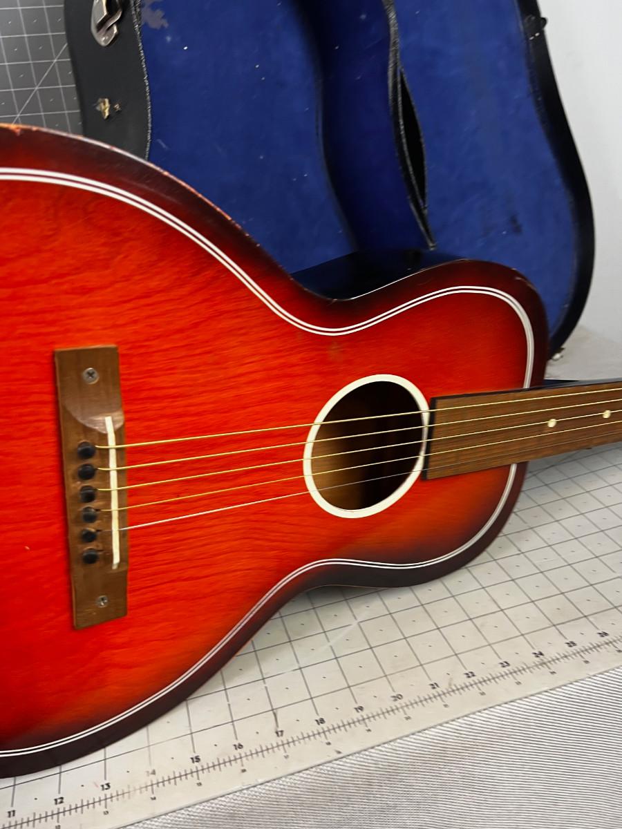 Made in Chicago, Missing a String. Appears to be in Good Usable Condition, after your fix the string. Has a CASE!! But the case does not have a handle.