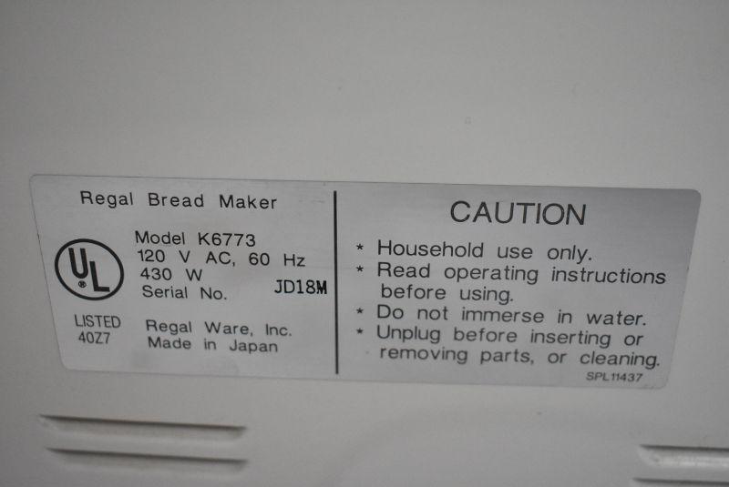 Regal Kitchen Pro Collection Bread Maker, tested, works