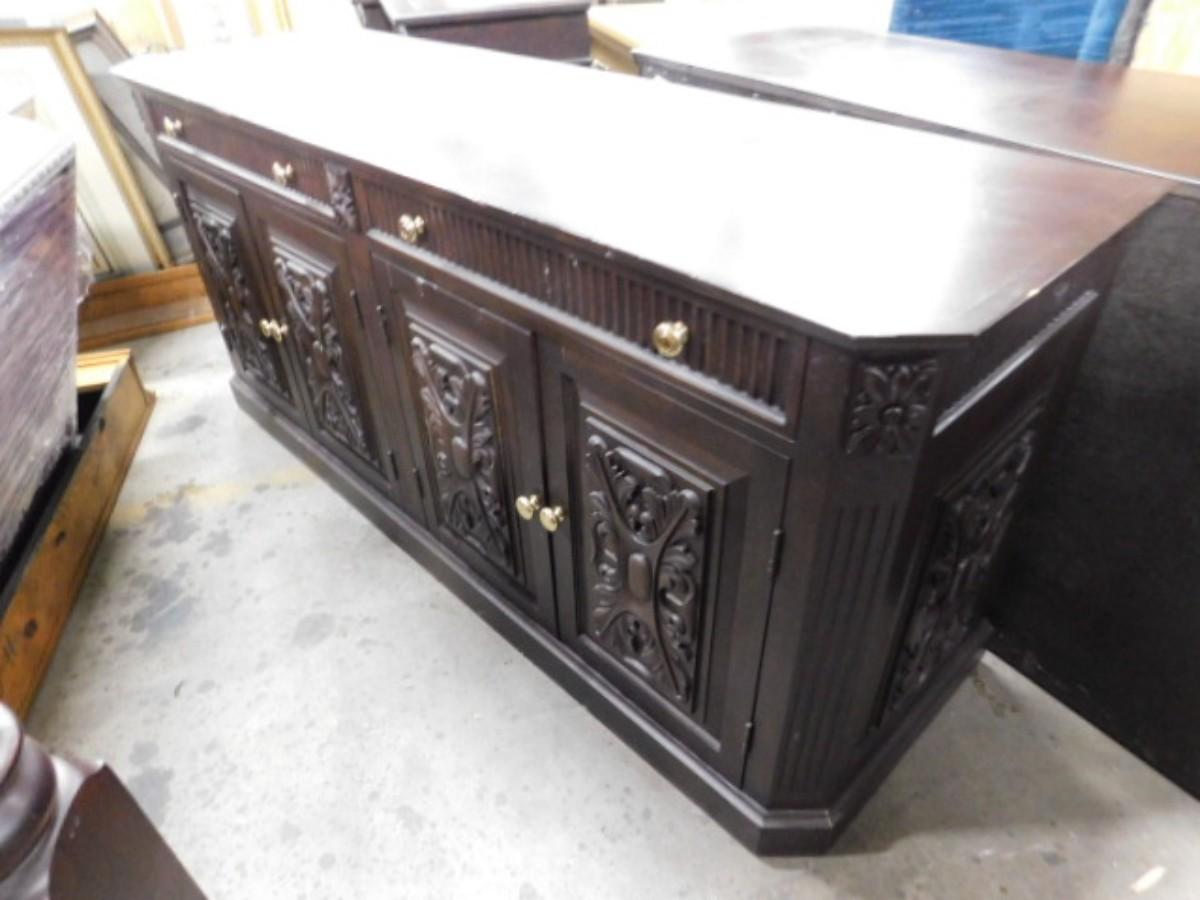 Regency Design Sideboard with Double Drawers and Lower Cabinet Storage Choice B. Expect some wear or scratches to the finish. Shipping option available via freight or local mover at Buyer's expense. Buyer must have all shipping scheduled within the stated dates and times of pickup. Recommended local mover is Beaty Bros. Moving 828-201-2982