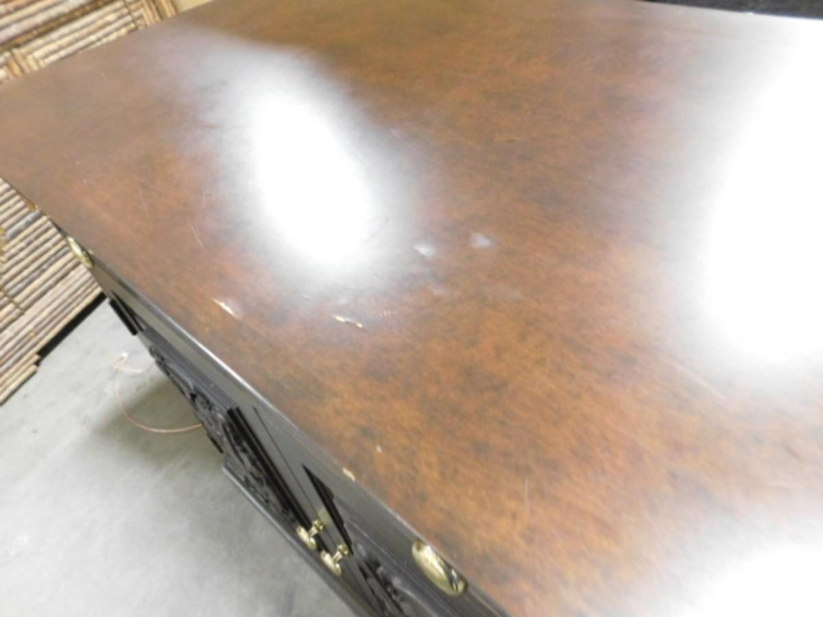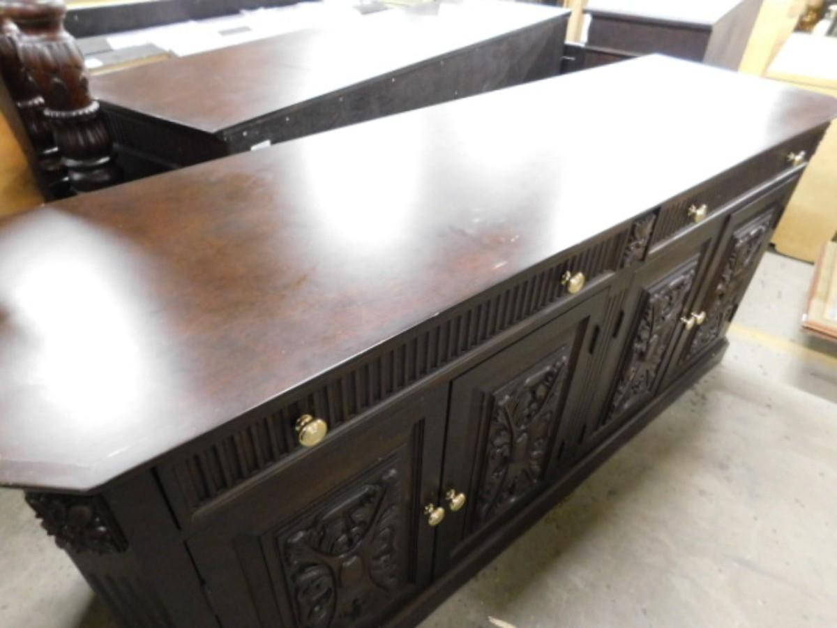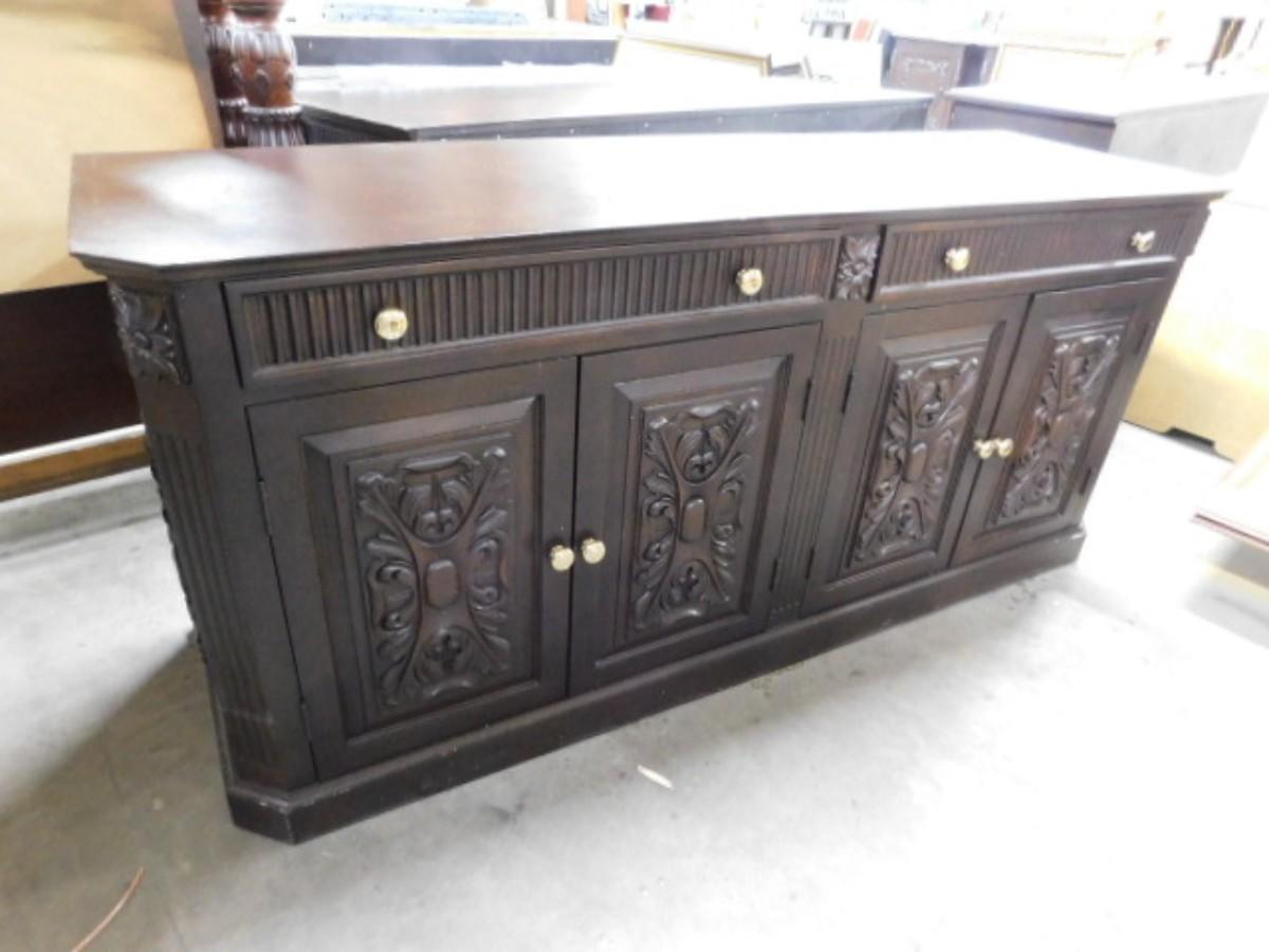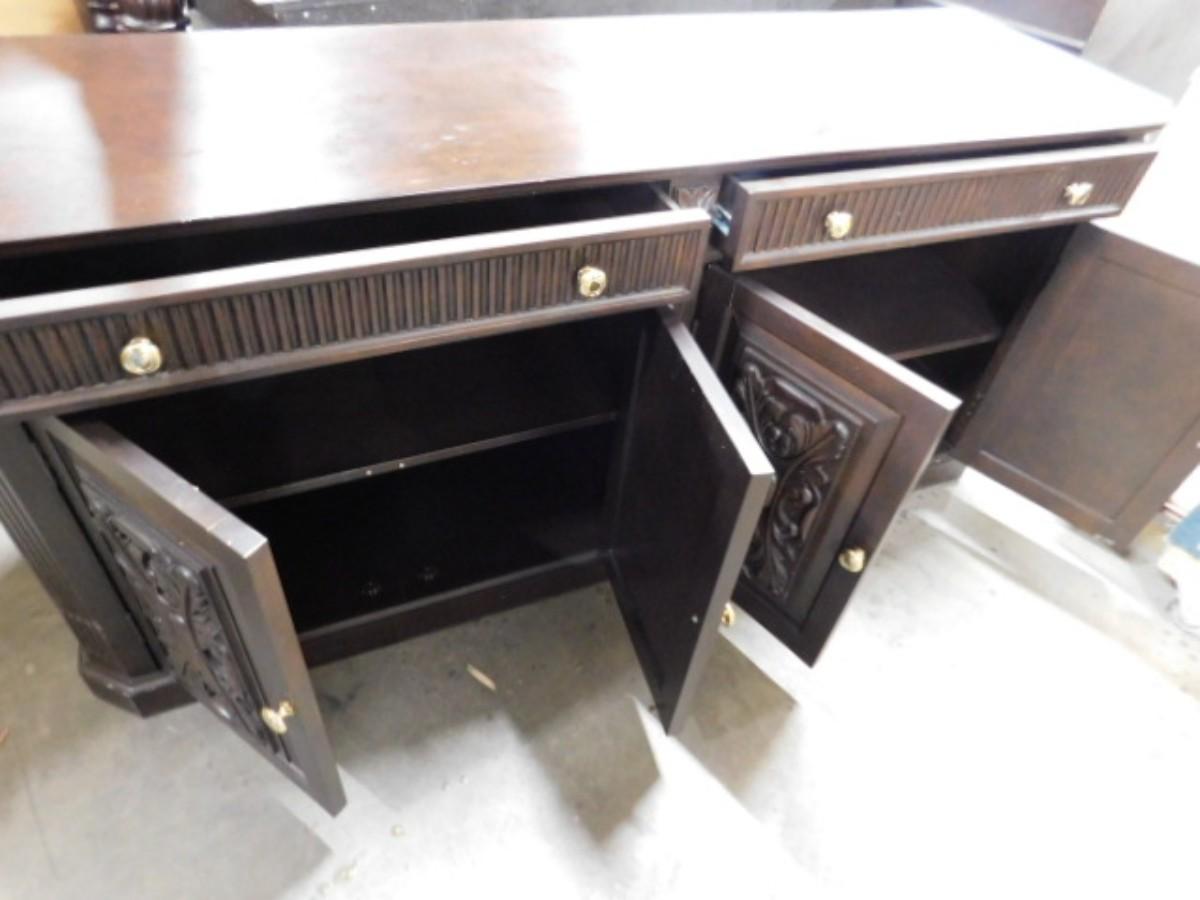 Regency Design Sideboard with Double Drawers and Lower Cabinet Storage Will need to be cleaned Expect some wear or scratches to the finish. Shipping option available via freight or local mover at Buyer's expense. Buyer must have all shipping scheduled within the stated dates and times of pickup. Recommended local mover is Beaty Bros. Moving 828-201-2982