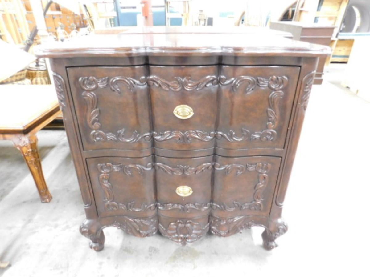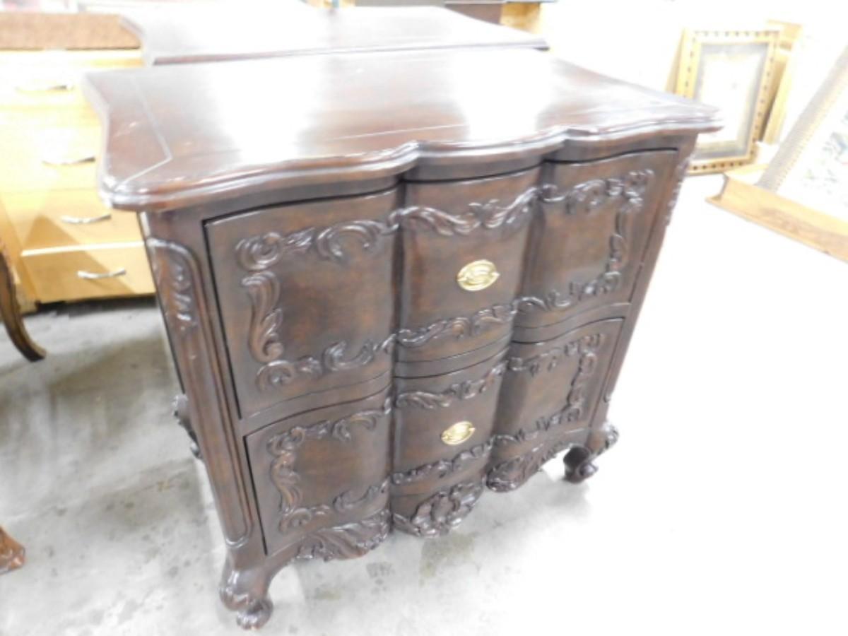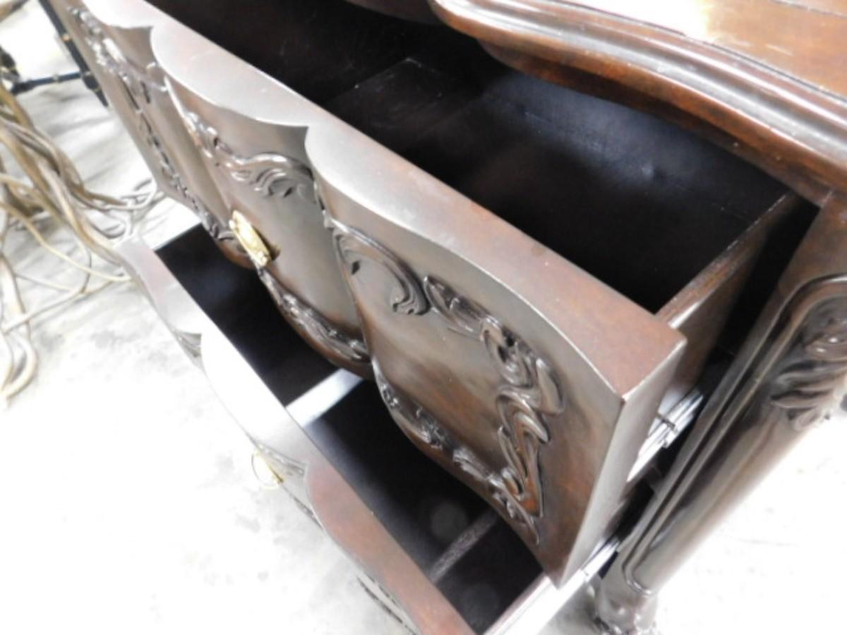 Regency Mahogany Finish Serpentine Double Drawer Side Dresser Choice #1 of 2 Expect some wear or scratches to finish. Shipping option available via freight or local mover at Buyer's expense. Buyer must have all shipping scheduled within the stated dates and times of pickup. Recommended local mover is Beaty Bros. Moving 828-201-2982