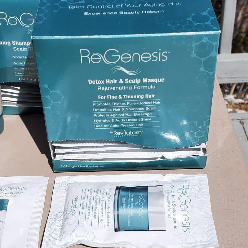 Unopened Regenesis Revitalash Lot B (Detox Hair and Scalp Masque, 1 Each Travel Size Shampoo/ Conditioner, 3 pc Foam Regimen and Information Booklets)