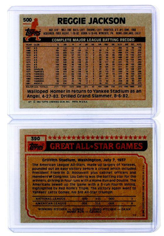 REGGIE JACKSON CALIFORNIA ANGELS BASEBALL CARDS SET 1983 Topps #500 #390 - NM