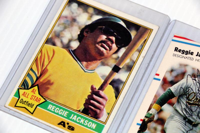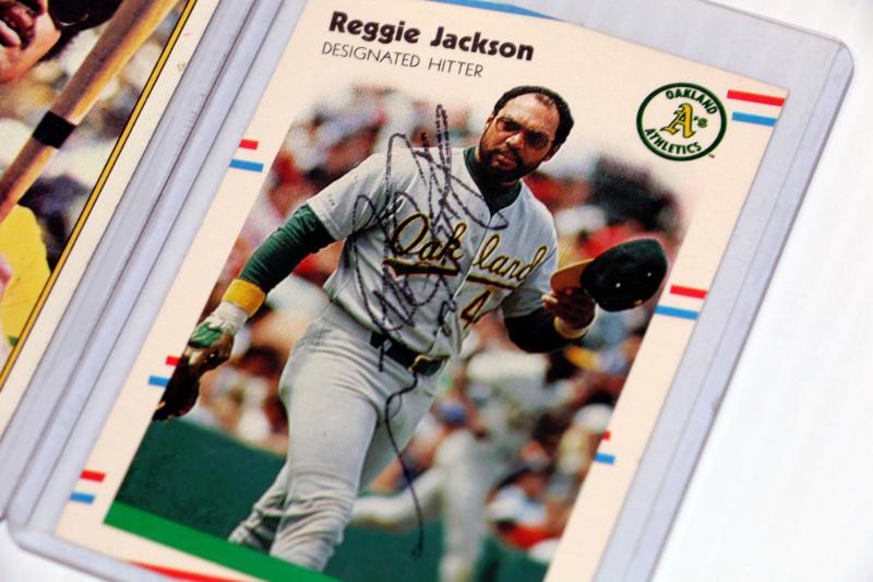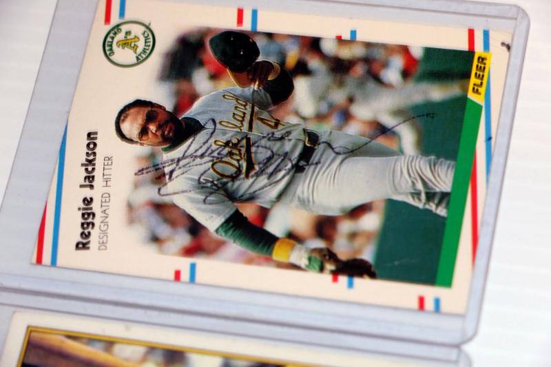 Reggie Jackson Signed Fleer + Topps Baseball Cards Lot #815-32