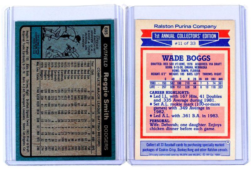 REGGIE SMITH 1980 Topps #695 WADE BOGGS 1984 Ralston Purina Co. Baseball Cards Set