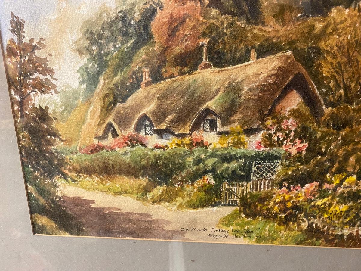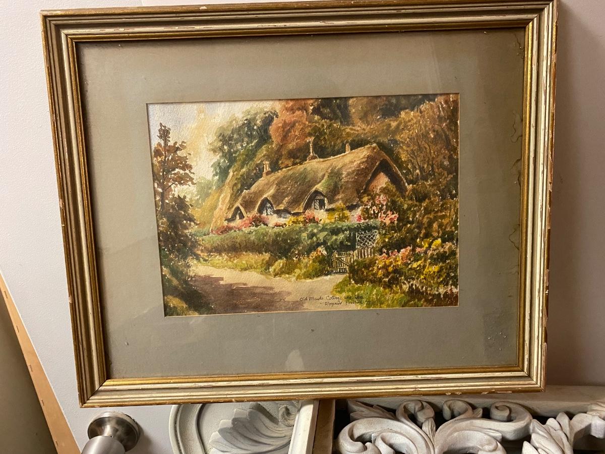 Old Maids Cottage signed by Reginald Heckford. Has some damage as shown in photos. Approx 14 x16