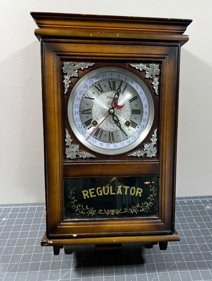 Alaron 31 Day Regulator Clock. Feels like it works. NO Key 12" X 22" Good Condition.