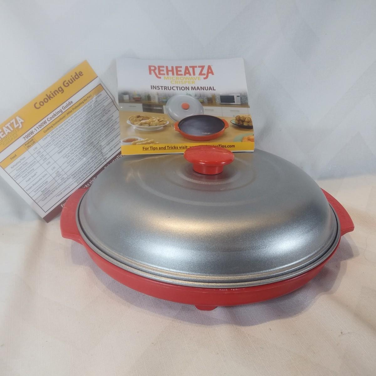 This auction lot is for a Reheatza - Crisper for Microwave. This is a unique product that works with your microwave to reheat items to keep them crisp. Appears unused. Measures about 11-inches in diameter.