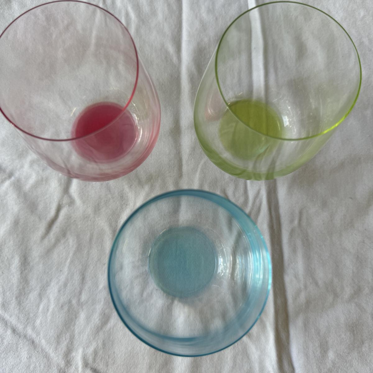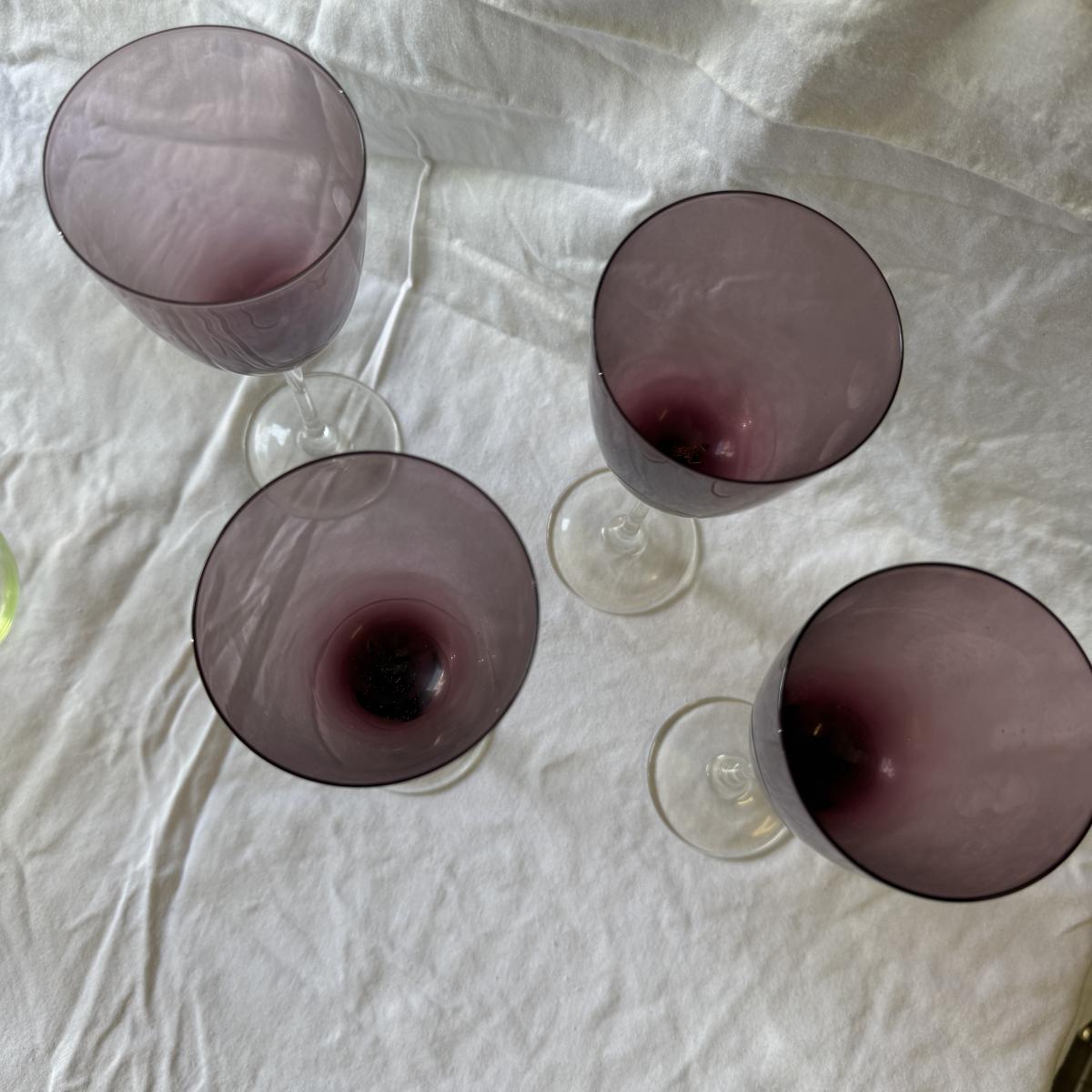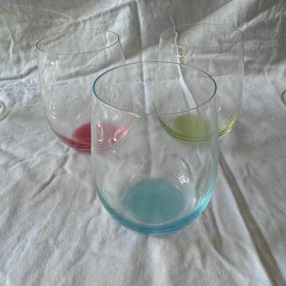 Nice quality sets of wine glasses. Four purple colored Lenox, three multi colored Reidel, three Mikasa with different fun patterns, and four plain glasses by Bormioli. Wine glasses are 9” tall. Stemless are 4” tall. Shipping available. Shipping can be costly. We suggest contacting our preferred local shipping provider, Postage Express, with dimensions and getting an estimate before bidding: (828) 255-9250 or shipping@postageexpressnc.com.