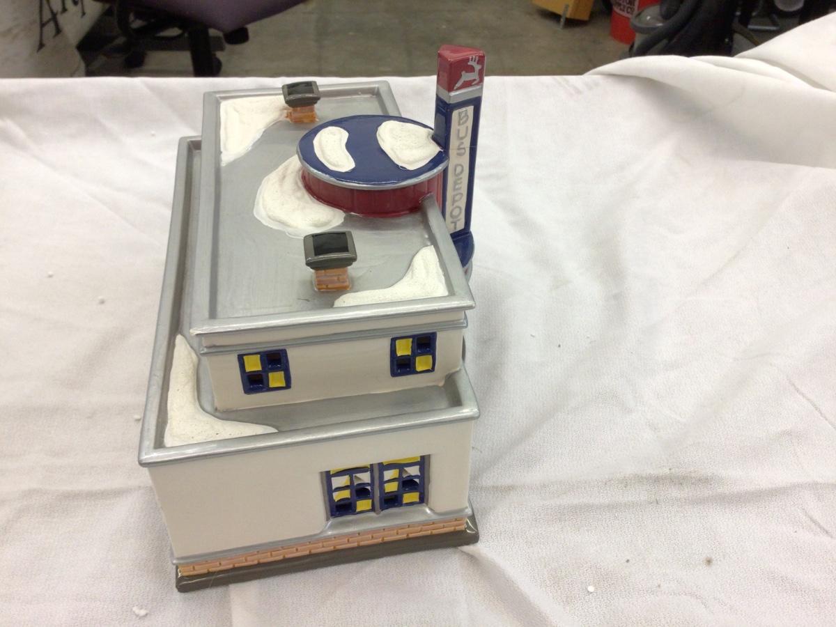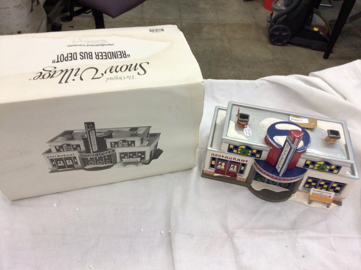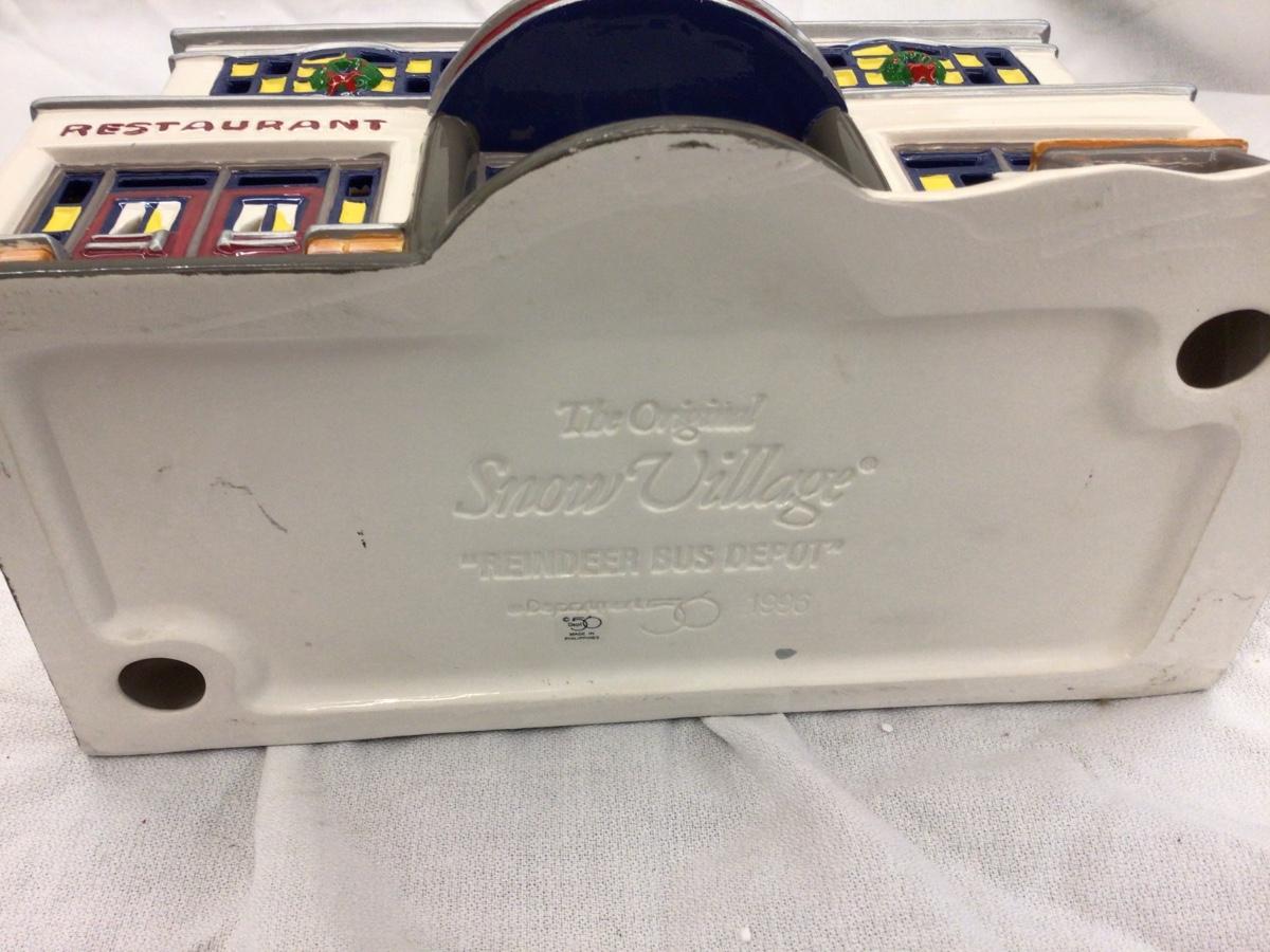 Reindeer Bus Depot Dept. 56 Snow Village. Has Box has some water damage and has light.