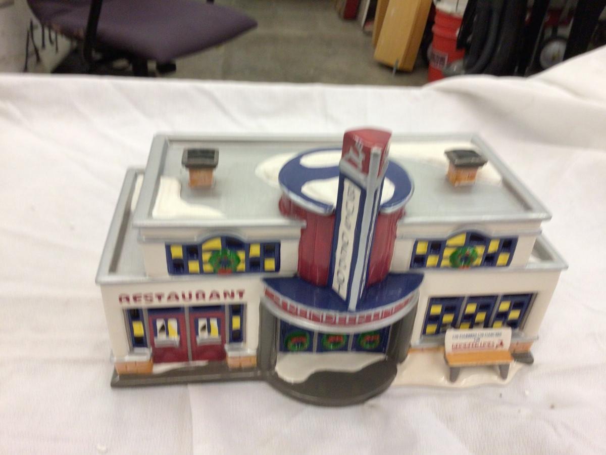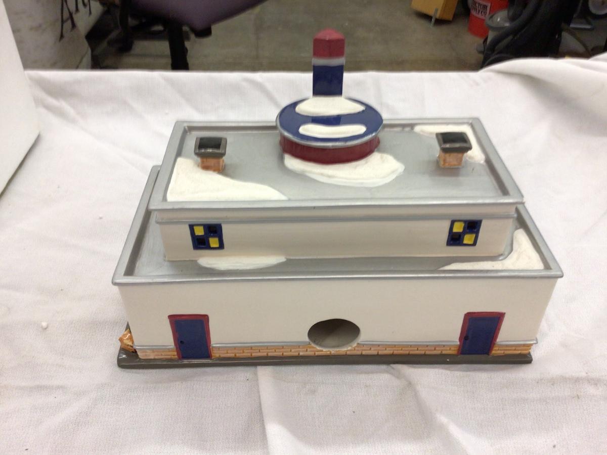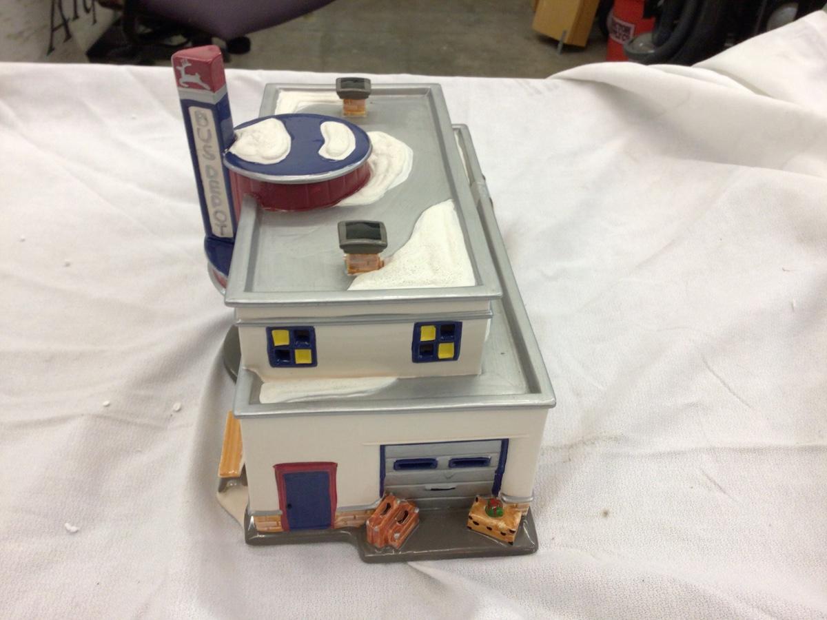 Reindeer Bus Depot Dept. 56 Snow Village. Has Box has some water damage and has light.