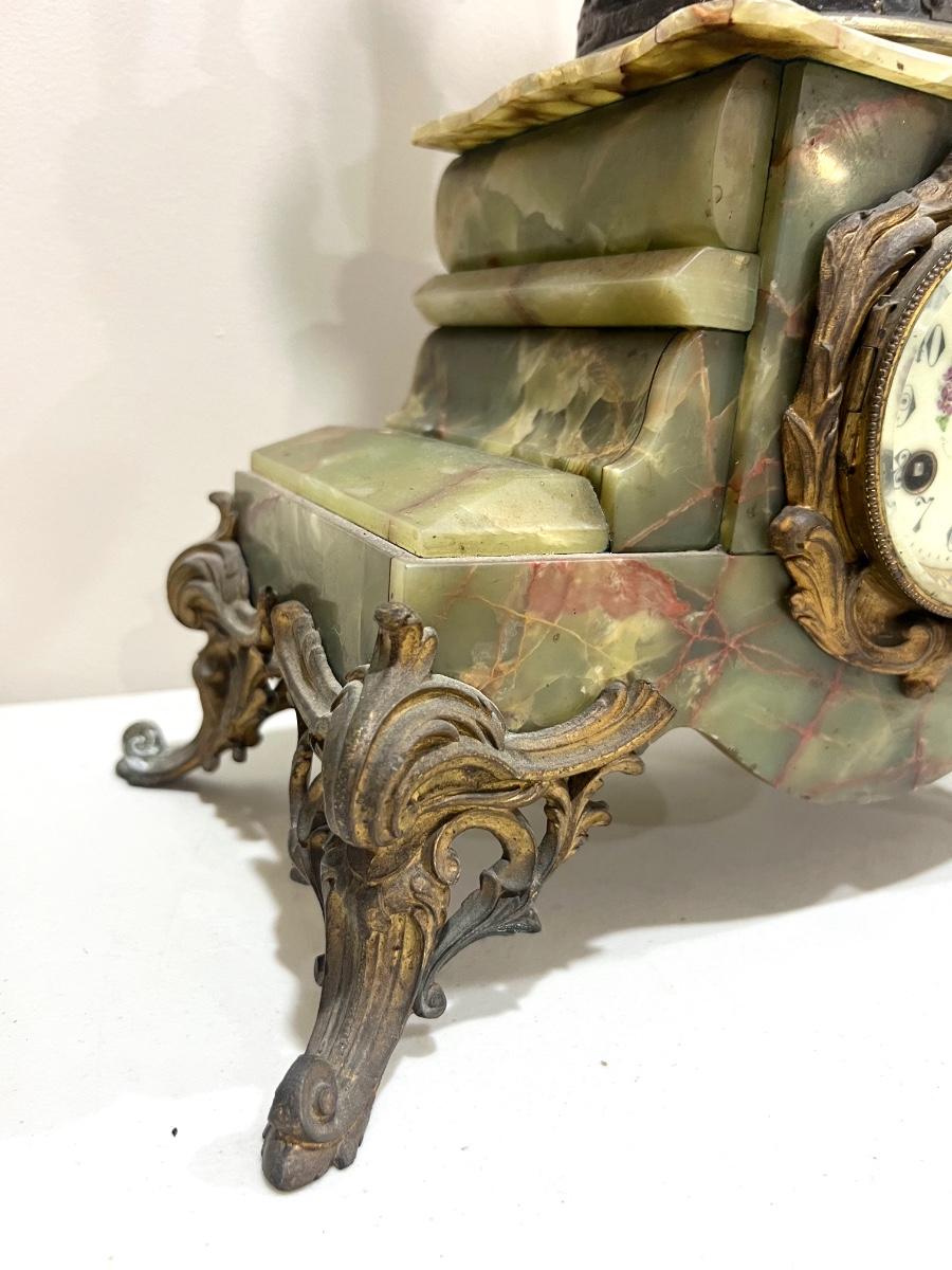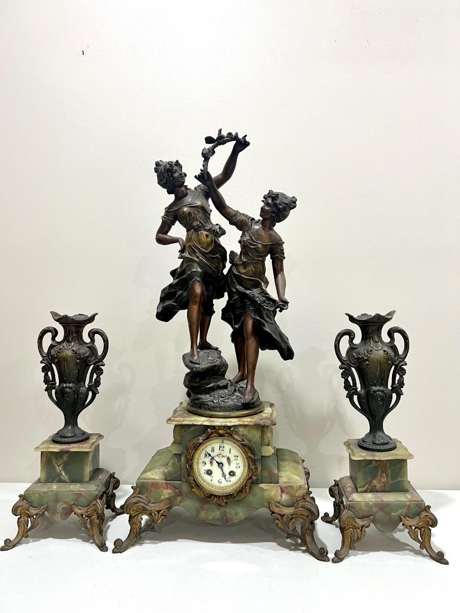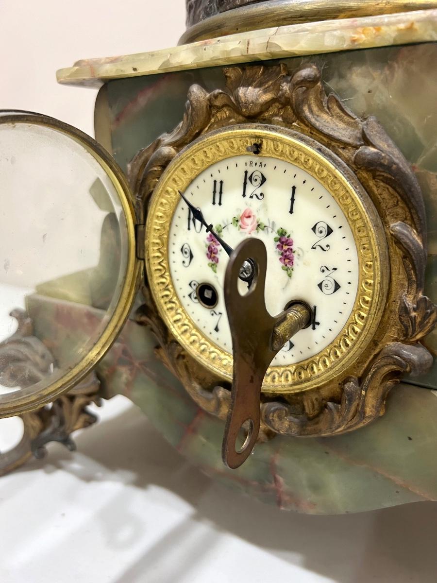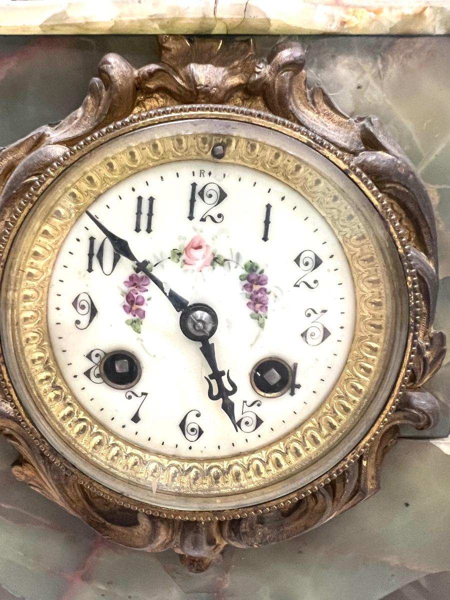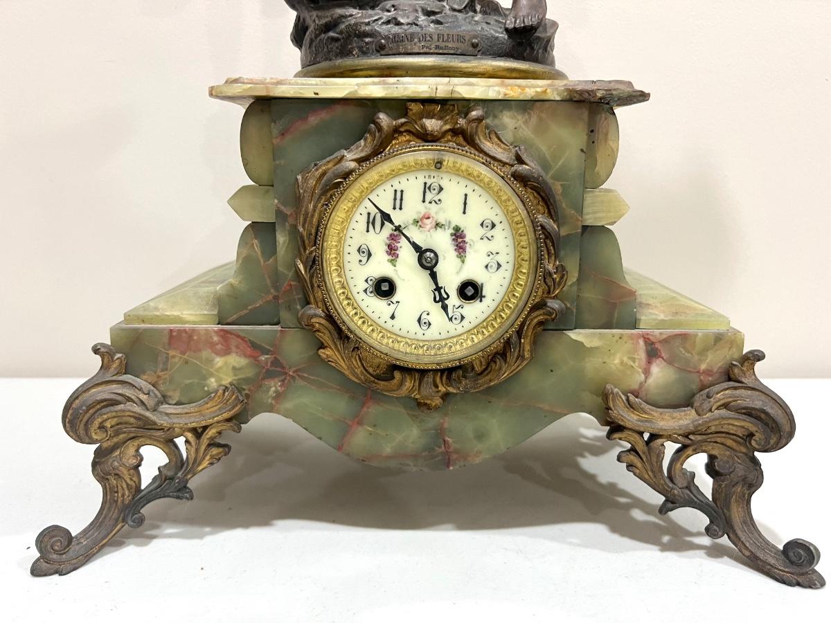REINE DES FLEURS Par-Ruffony 19th Century Onyx Marble Mantle Clock Set