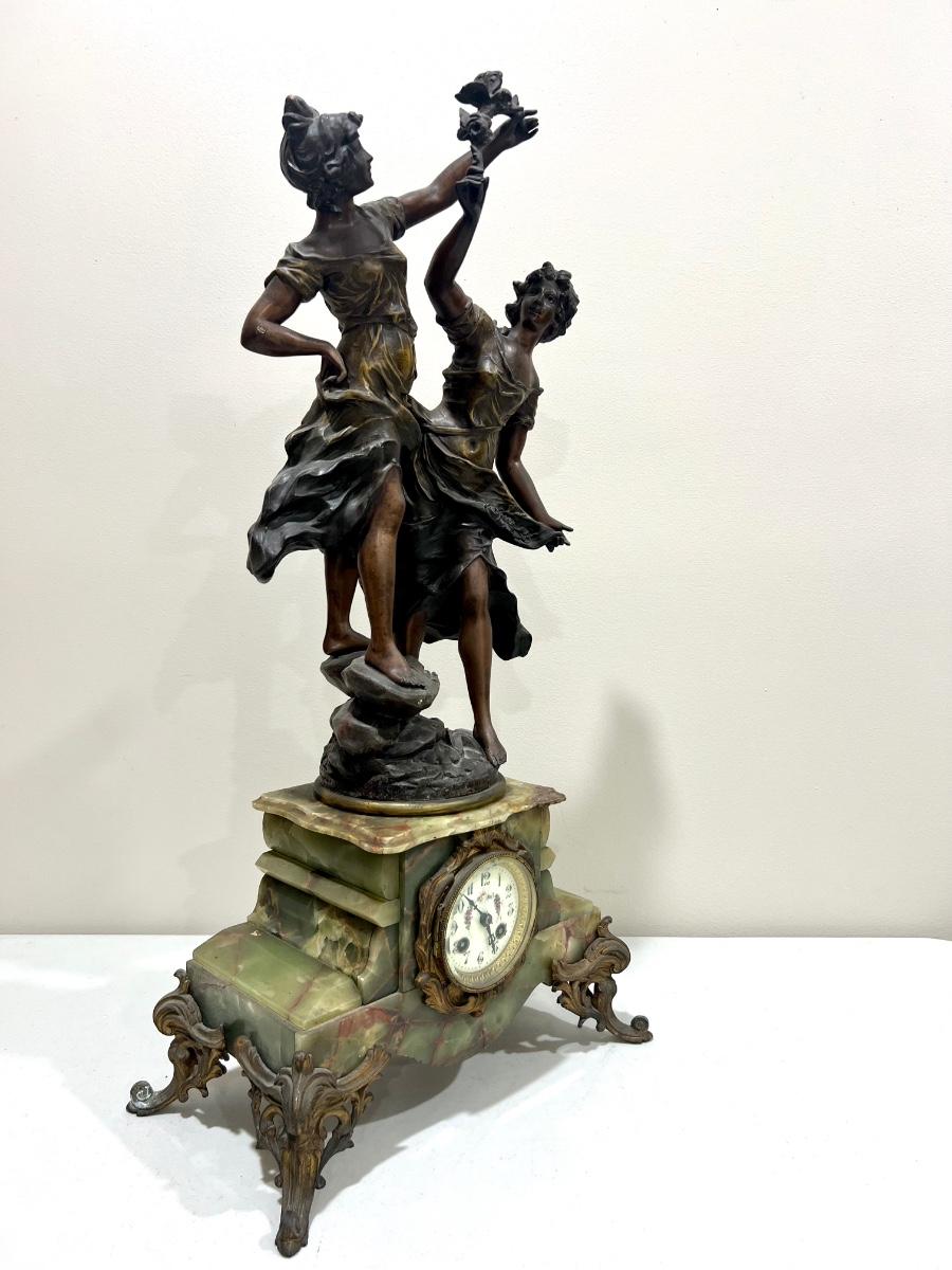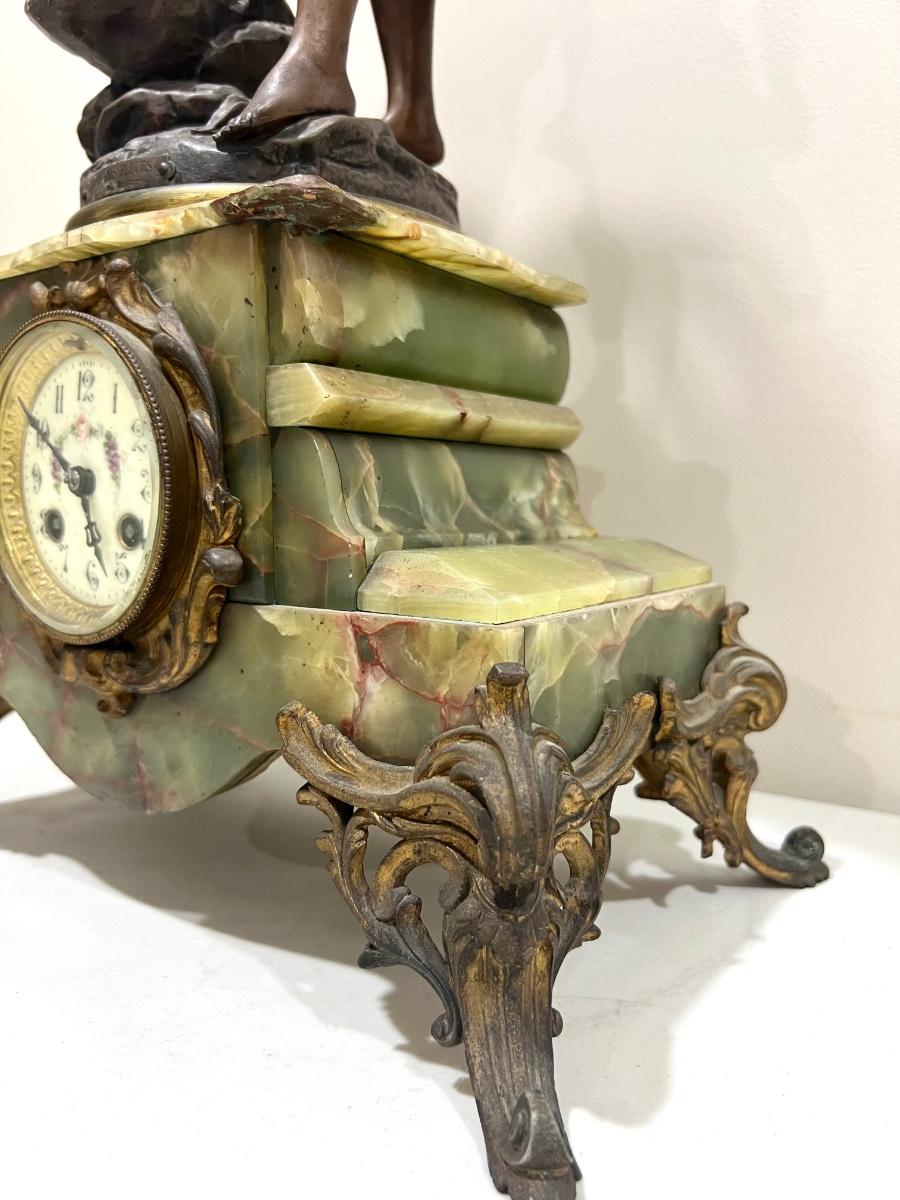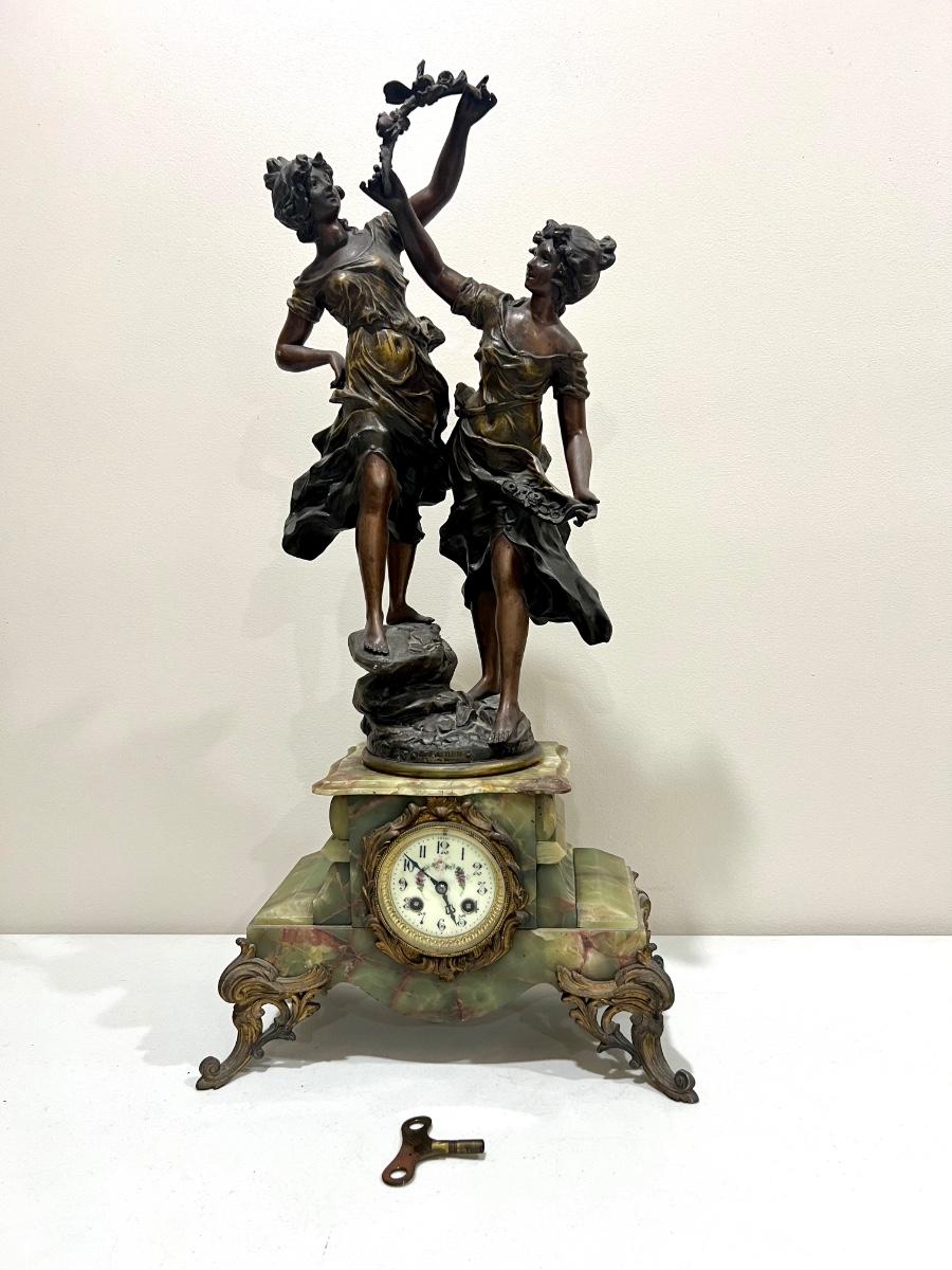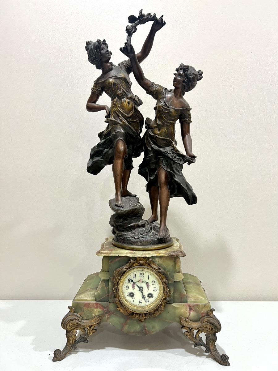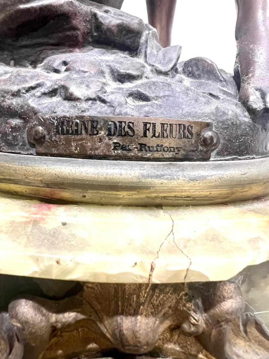 REINE DES FLEURS Par-Ruffony 19th Century Onyx Marble Mantle Clock Set