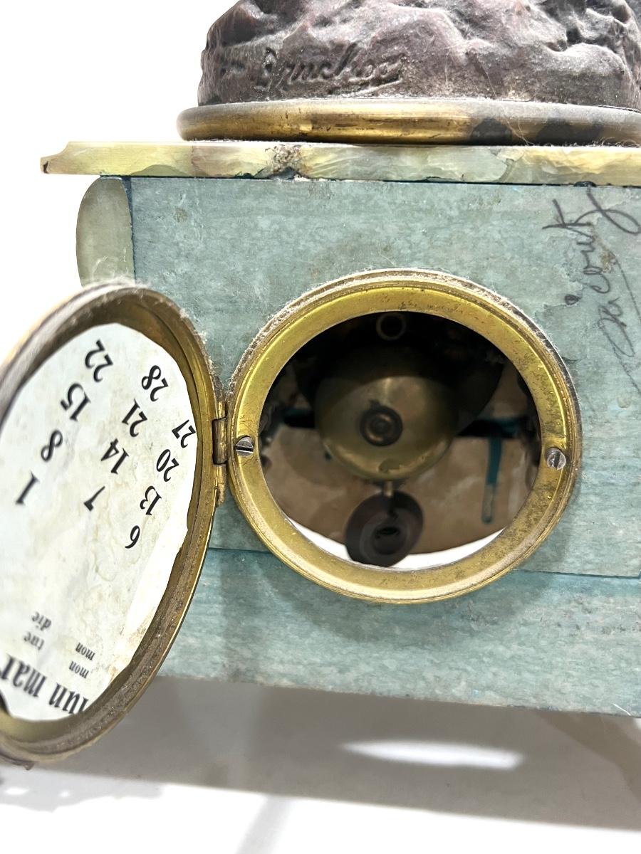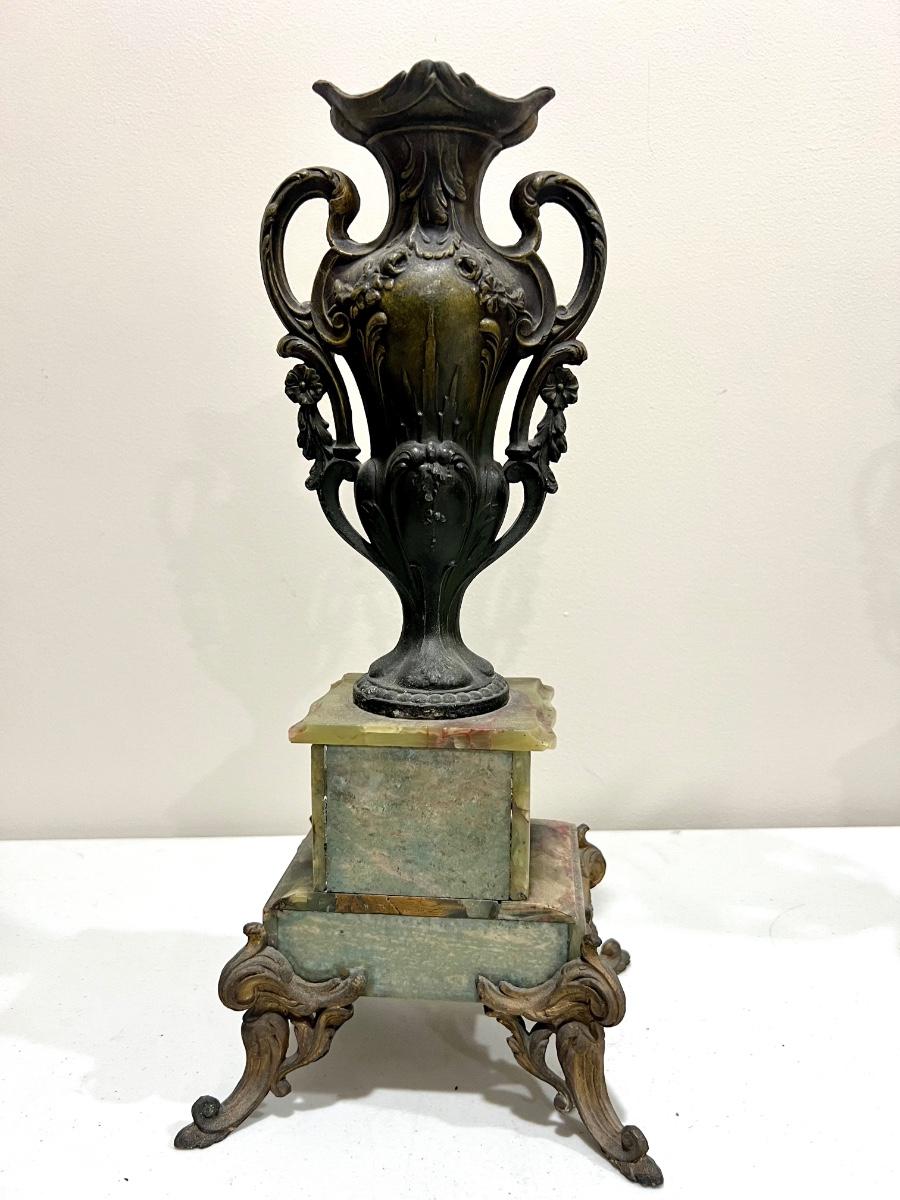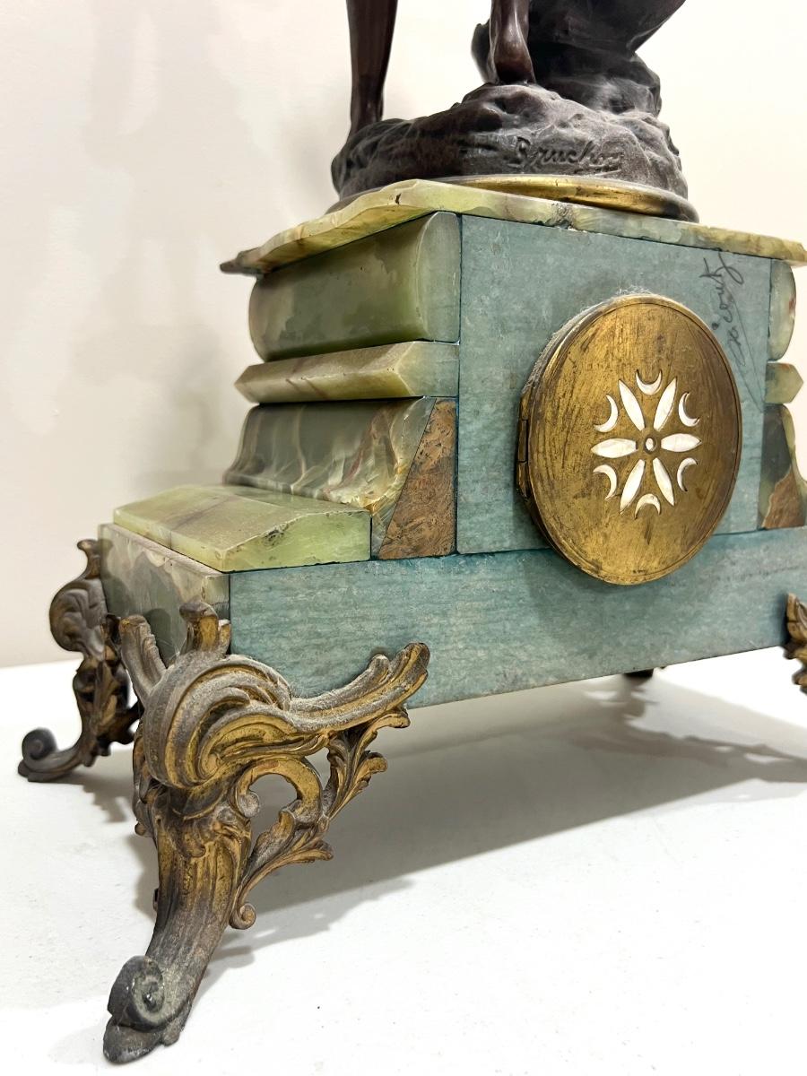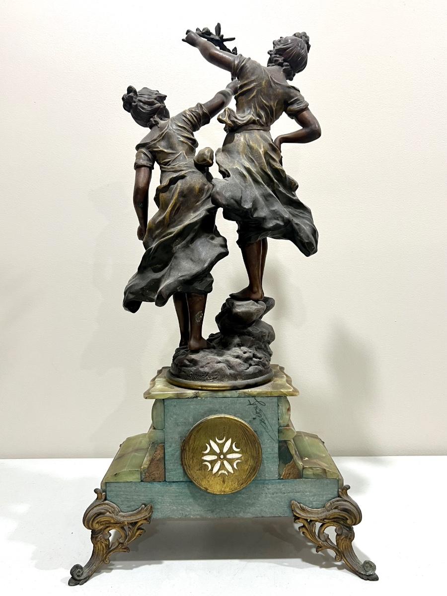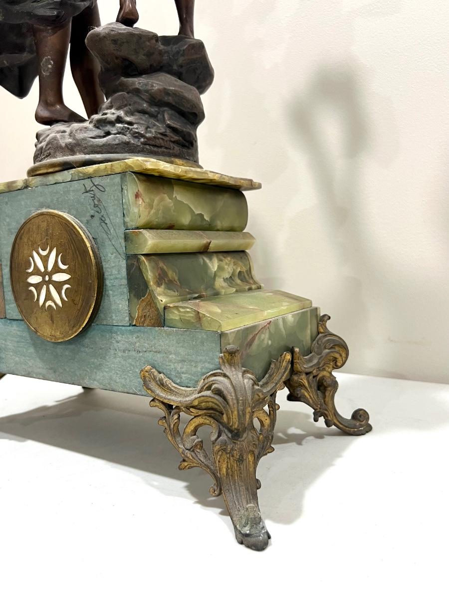 REINE DES FLEURS Par-Ruffony 19th Century Onyx Marble Mantle Clock Set