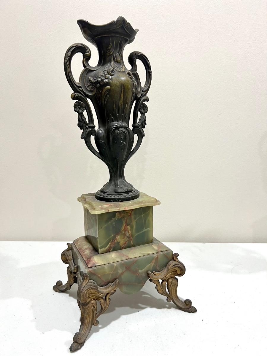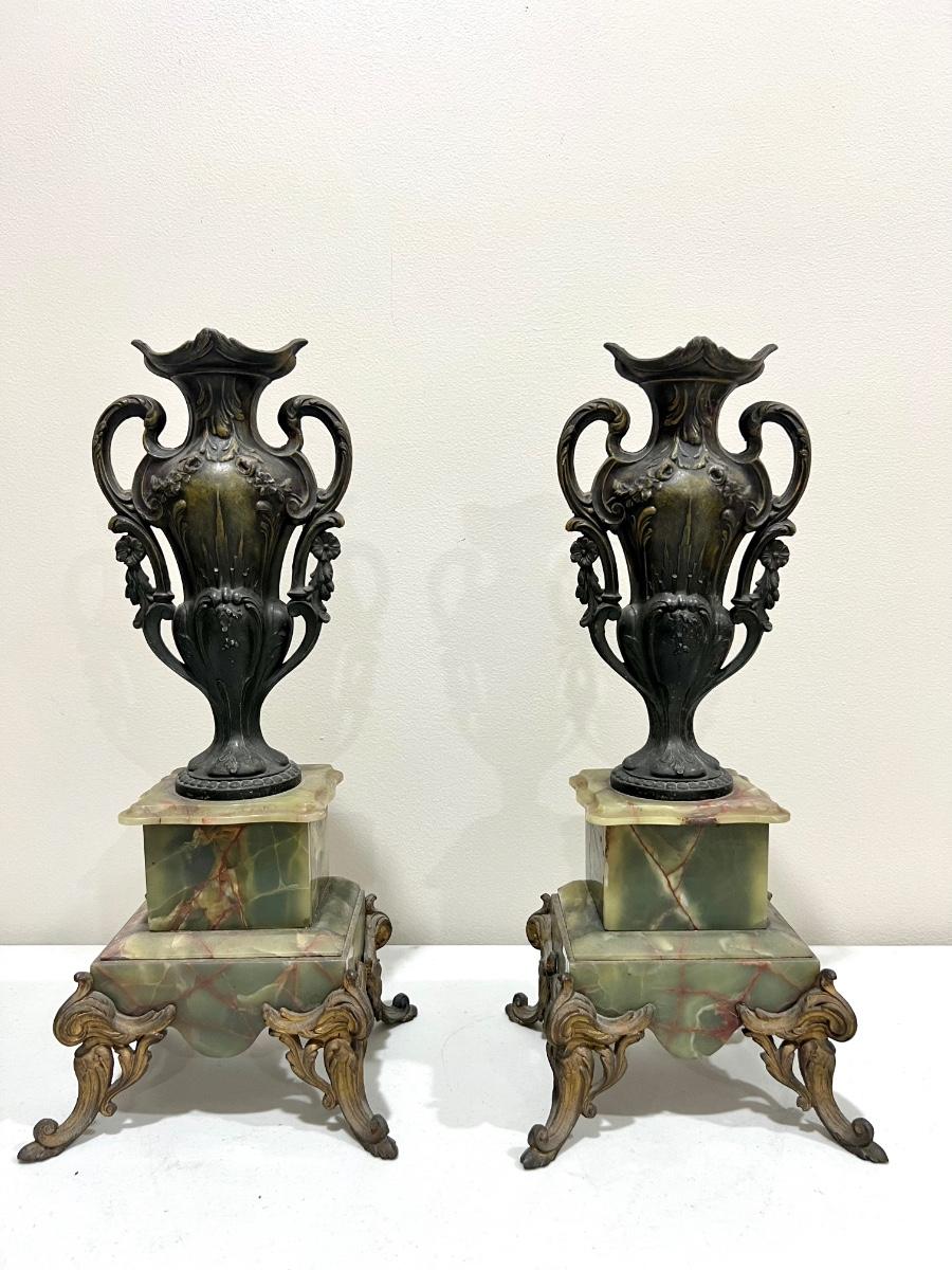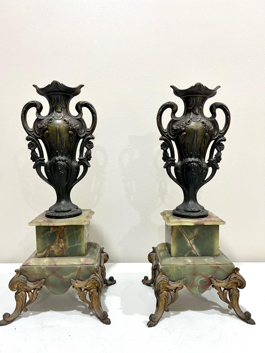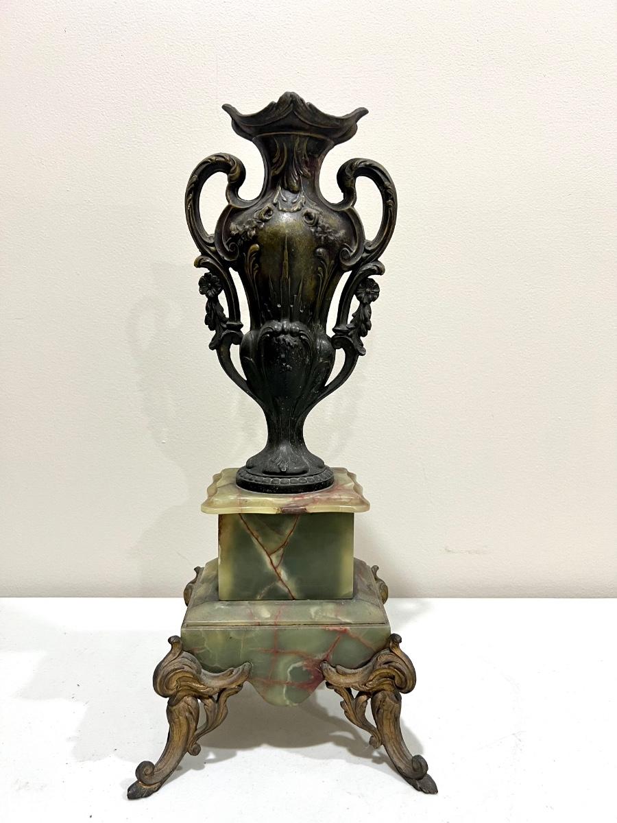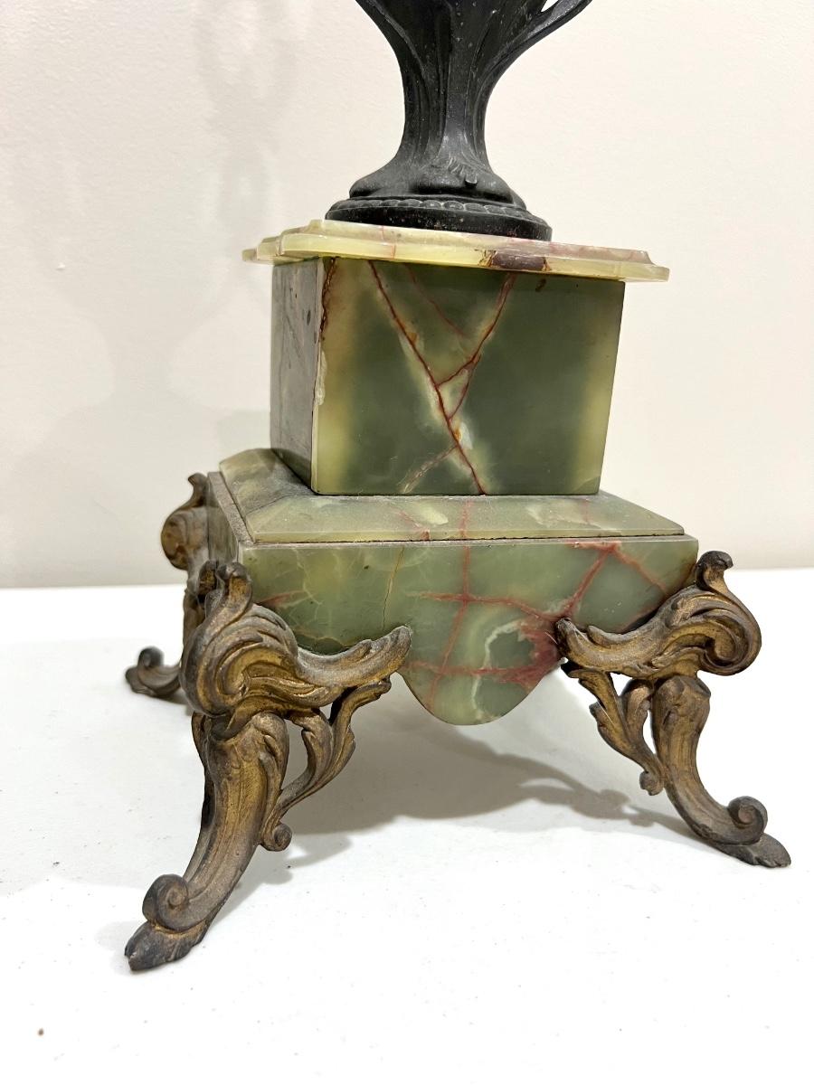REINE DES FLEURS Par-Ruffony 19th Century Onyx Marble Mantle Clock Set