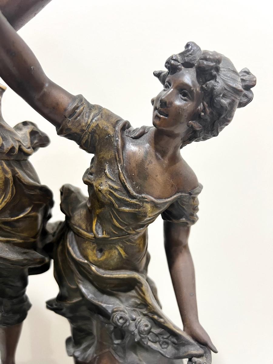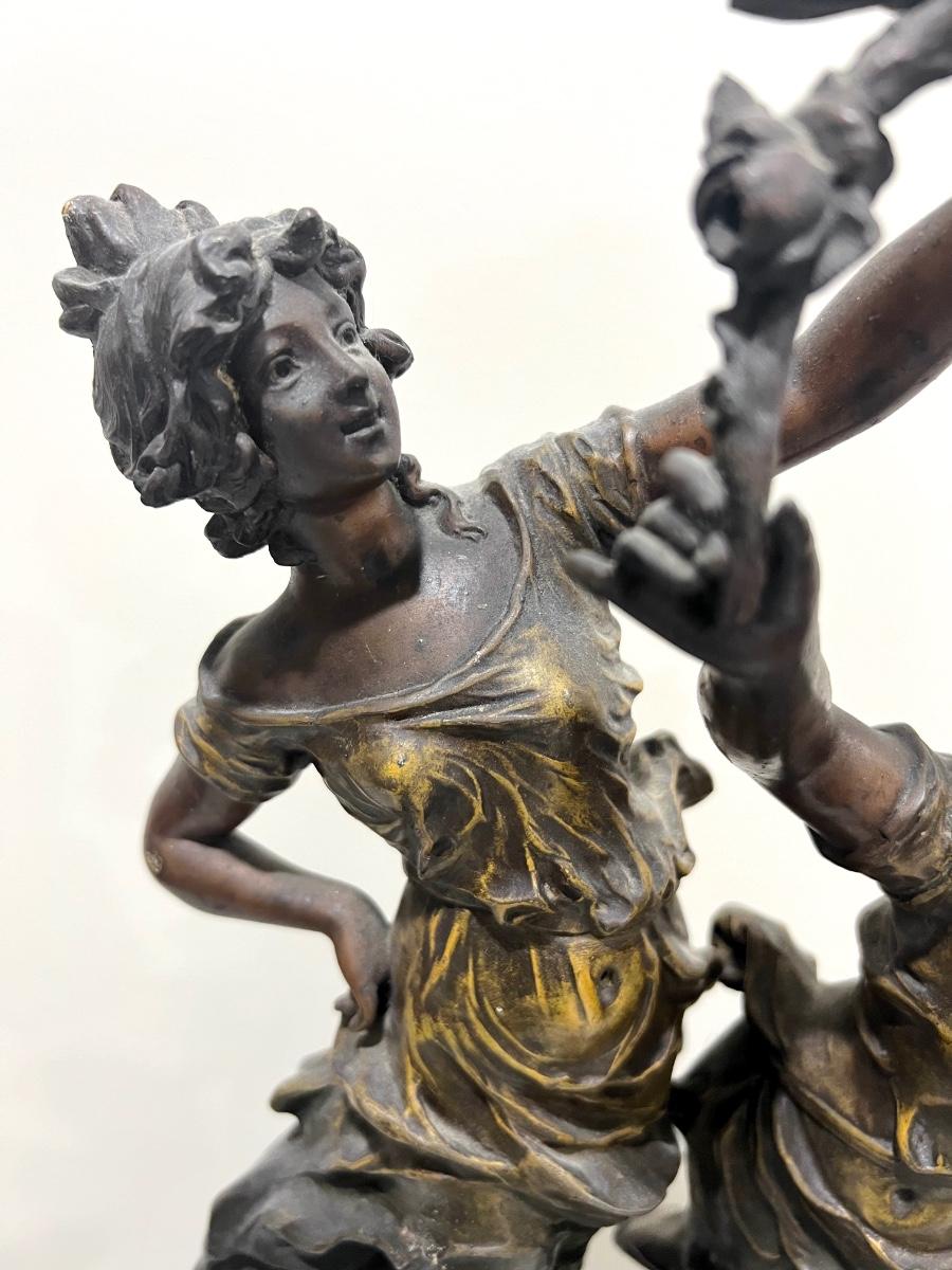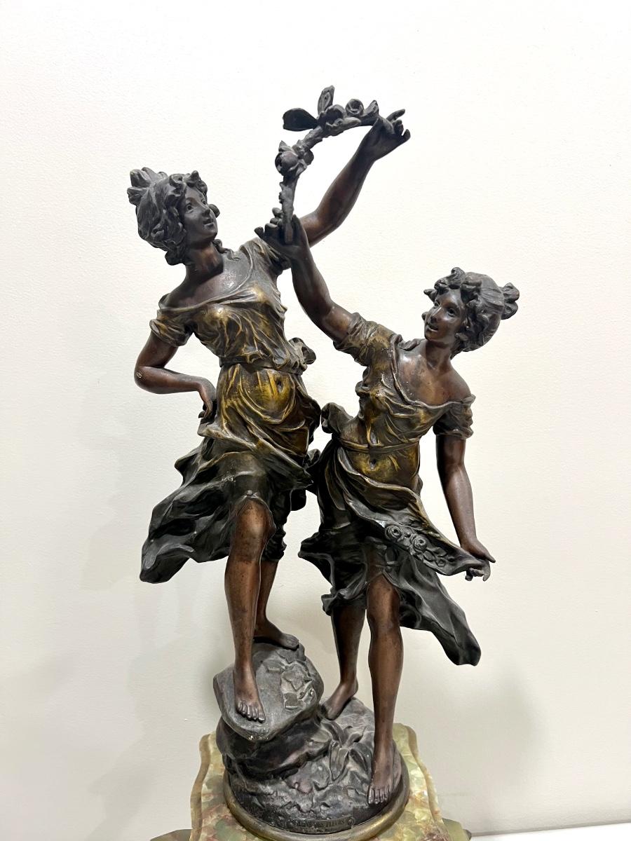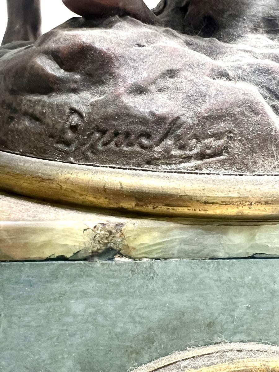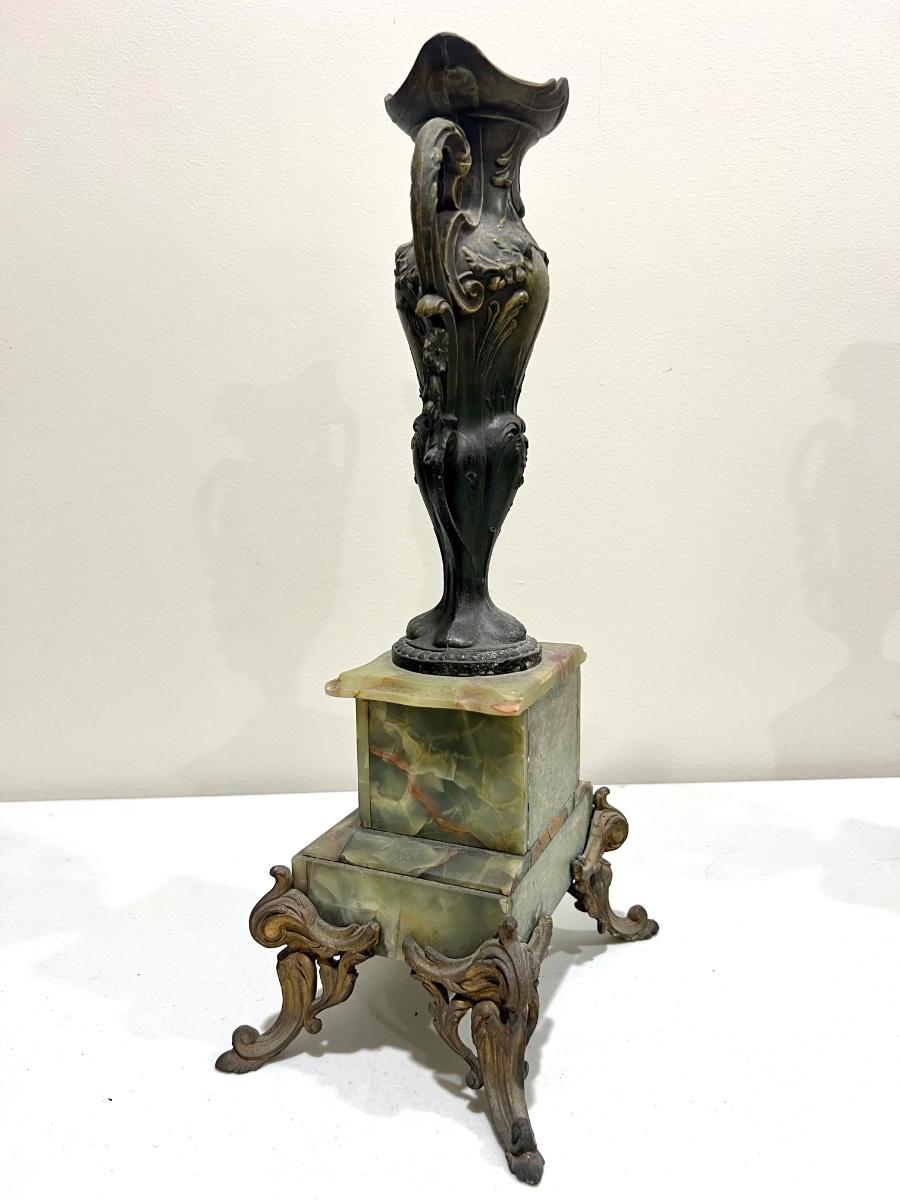 REINE DES FLEURS Par-Ruffony 19th Century Onyx Marble Mantle Clock Set