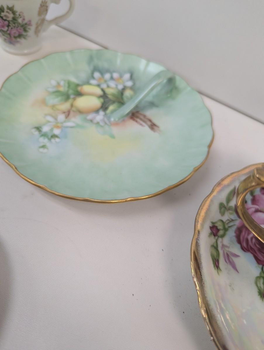 Reinhold Schlegelmilch RS Germany Floral Plate Oscar & Edgar Gutherz O & EG Royal Austria Plate Hand Painted Fan Crest Japan Plates