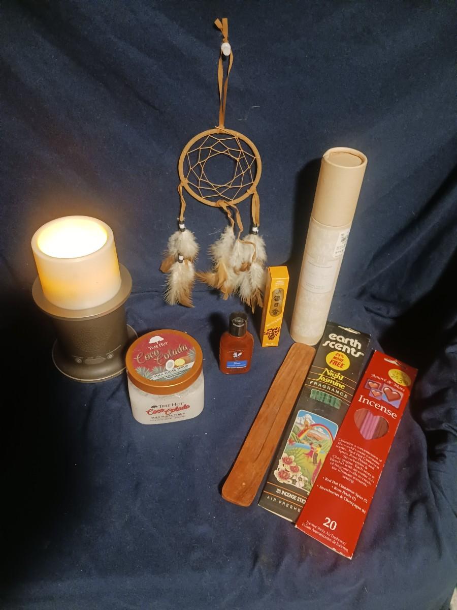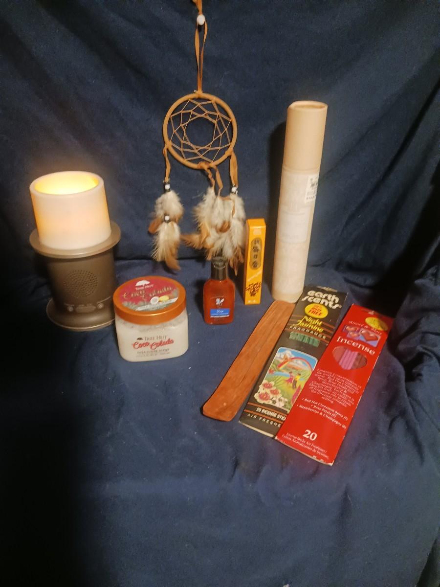 INCENSE, BLUETOOTH CANDLELIT SPEAKER, DREAM CATCHER AND BODY SCRUB