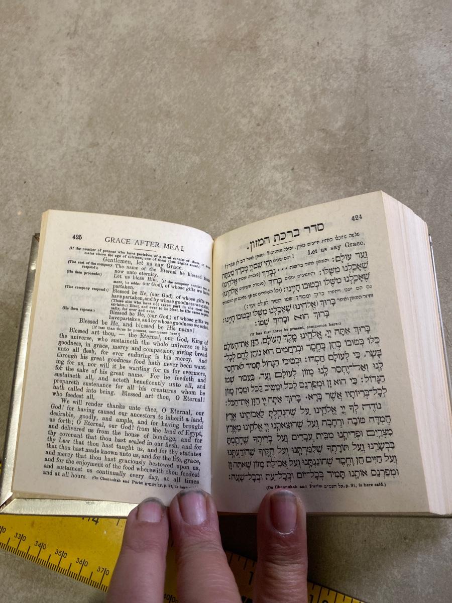 Sabbath book with follower written in both English and Hebrew