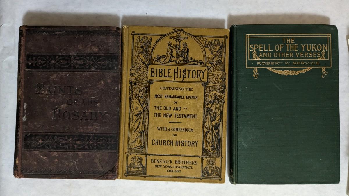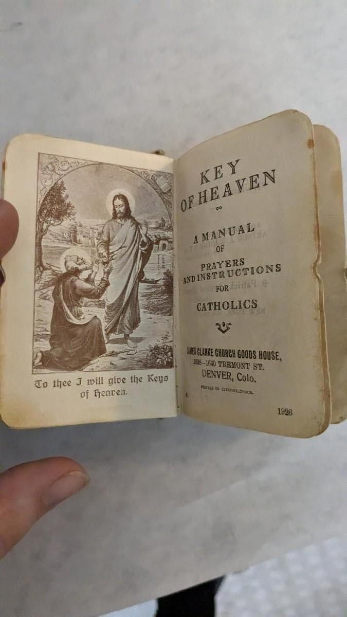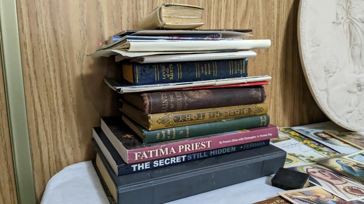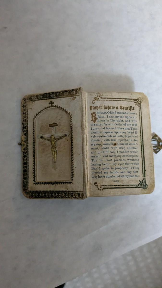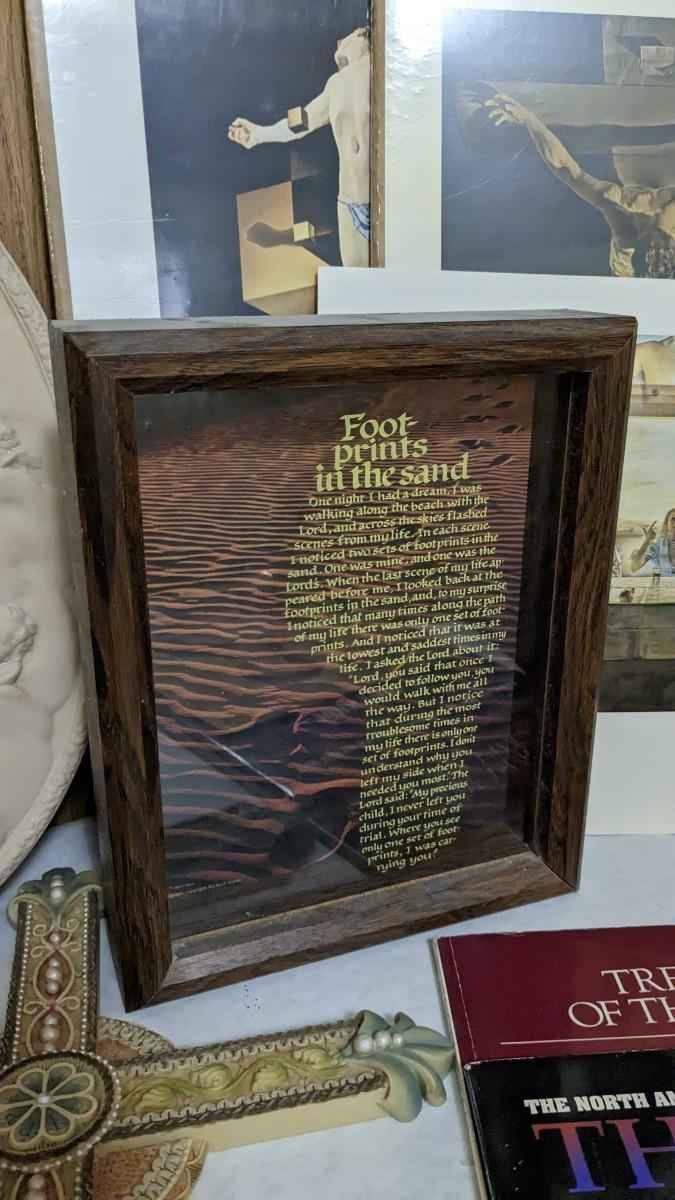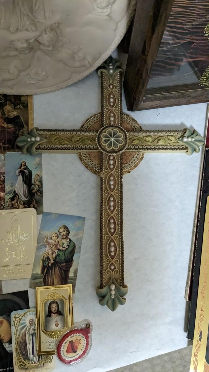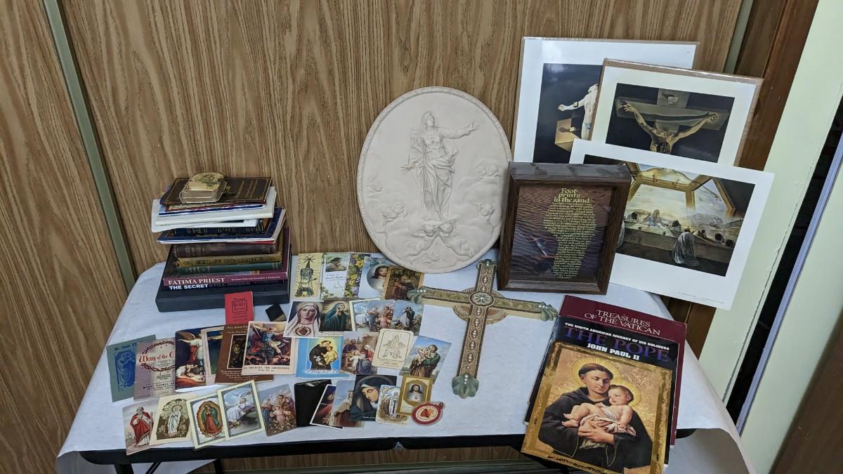 a large assortment of never framed religious prints, books, bibles, saint cards, and more! varied decades on this starting in the 40s. A very lovely assortment to behold in this one. livingroom