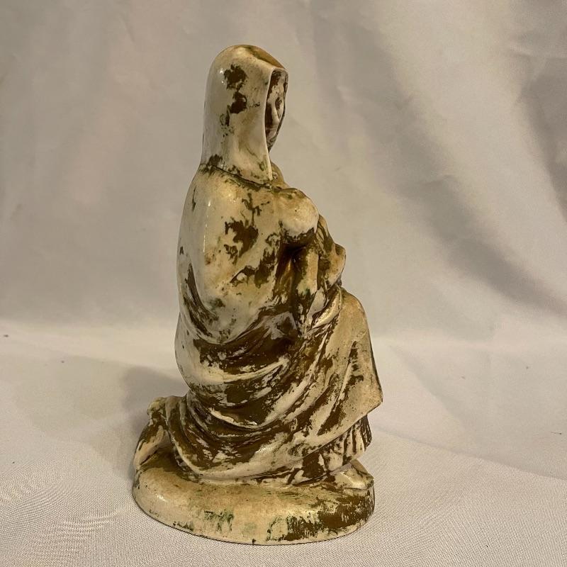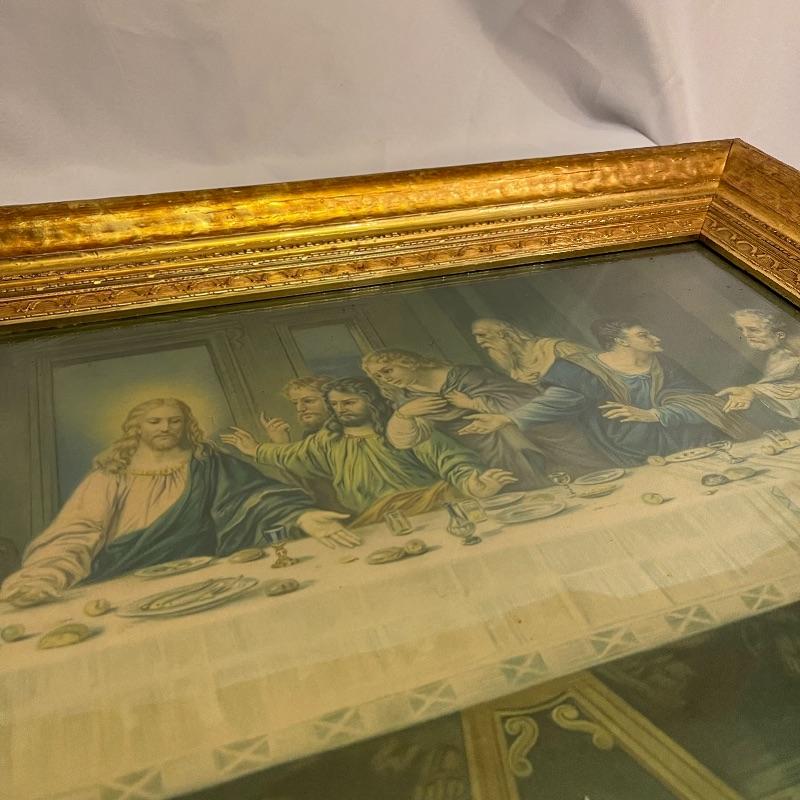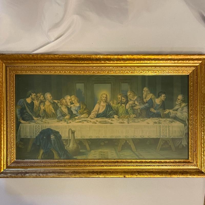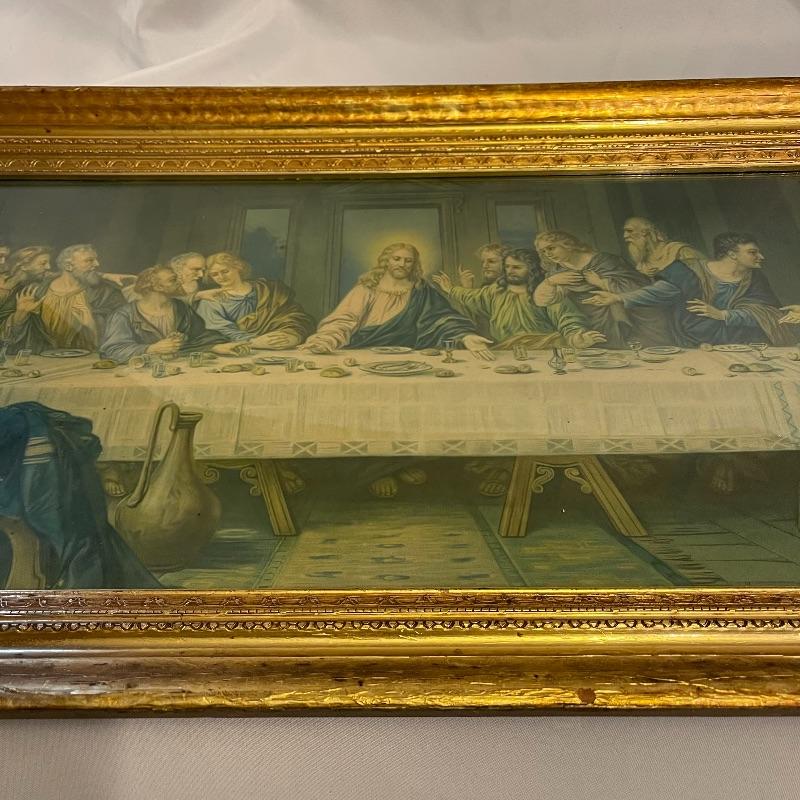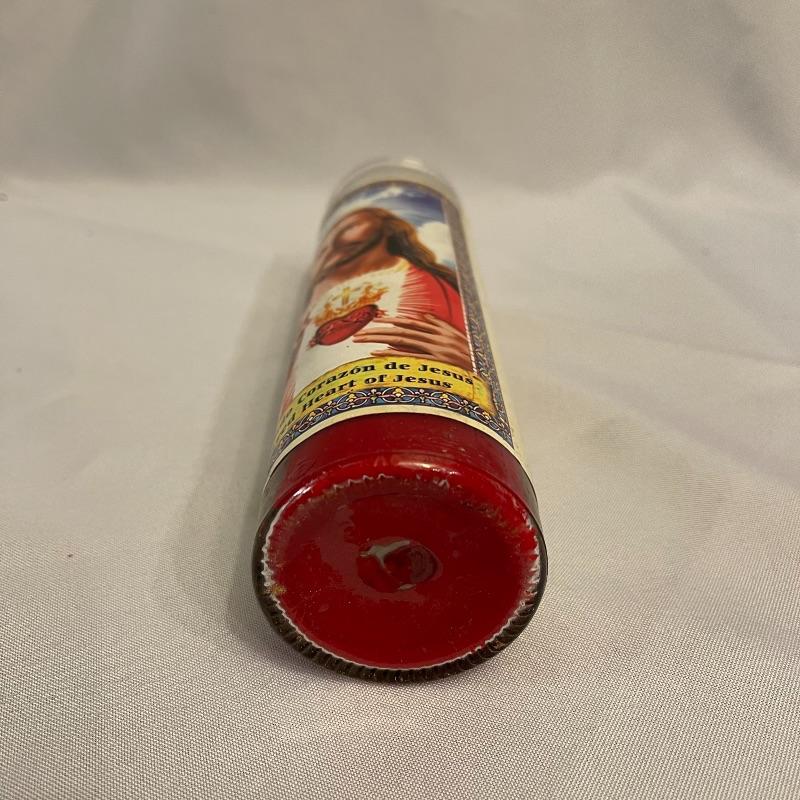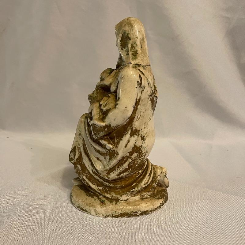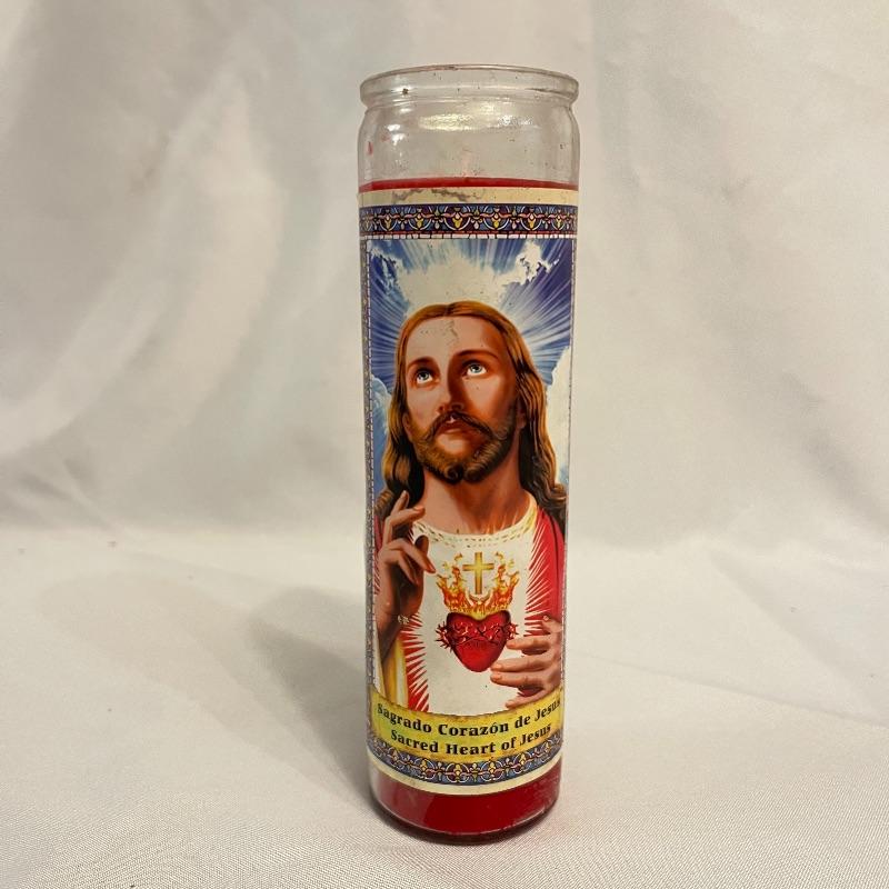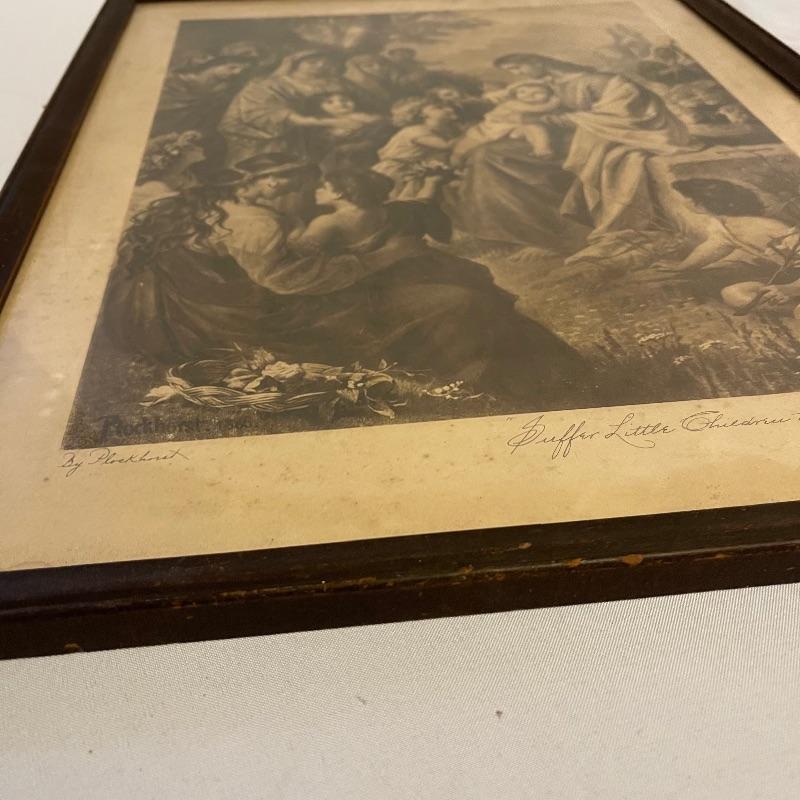 Collection of religious items includes 4 artworks, 2 candles, and 1 small statue. There is a beautiful wooden relief picture of Jesus that measures 21” x 25.5” and is 2.5” deep. There is also a print by Plockhorst called "Suffer Little Children to Come Unto Me" that measures approx 17” x 22.5" Both candles are 8” tall and the statue of Mary with baby Jesus is just under 9” tall.
