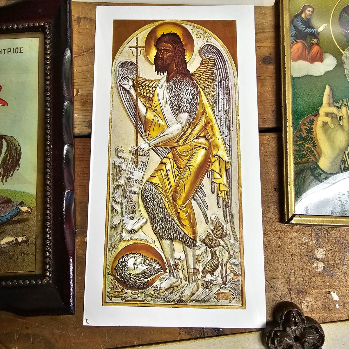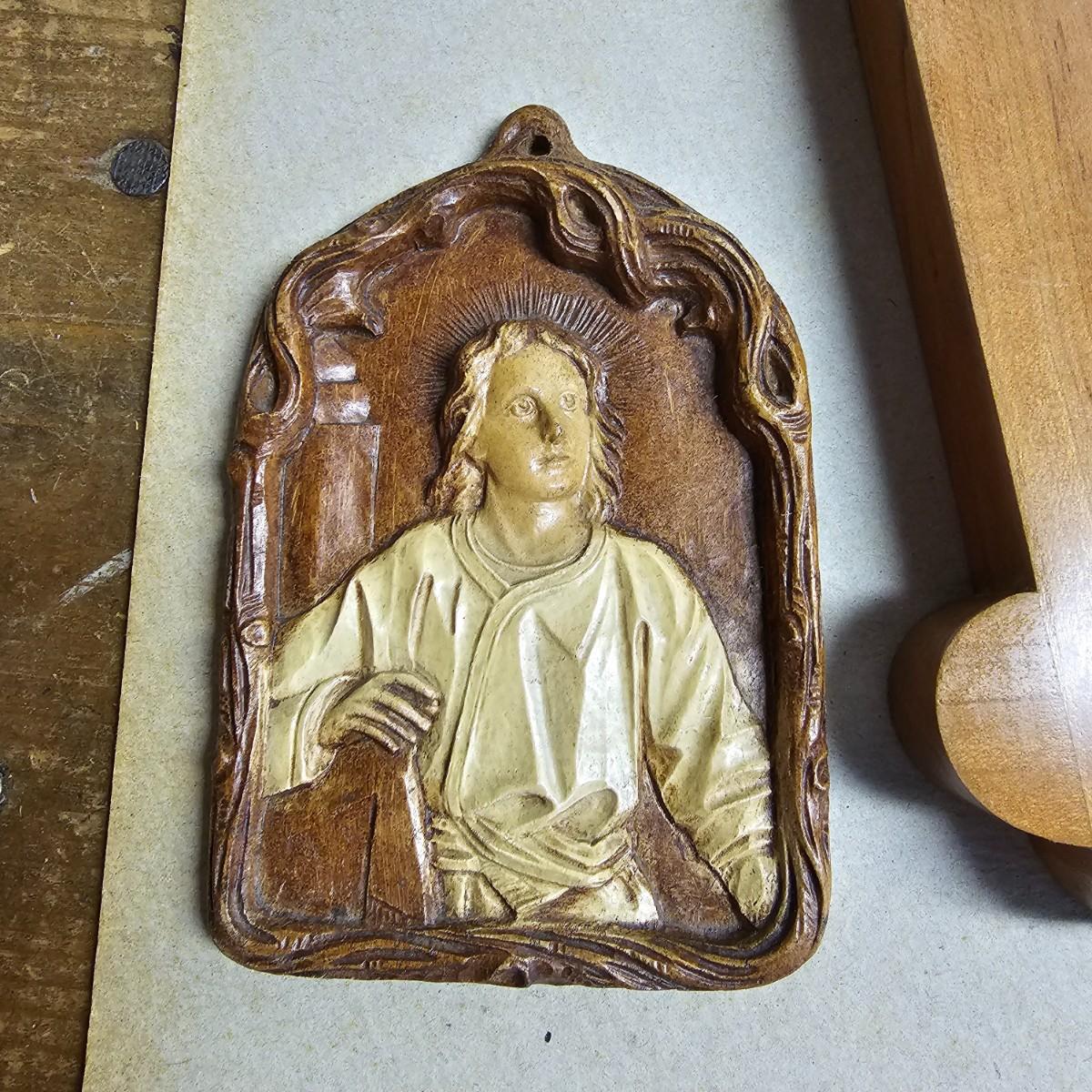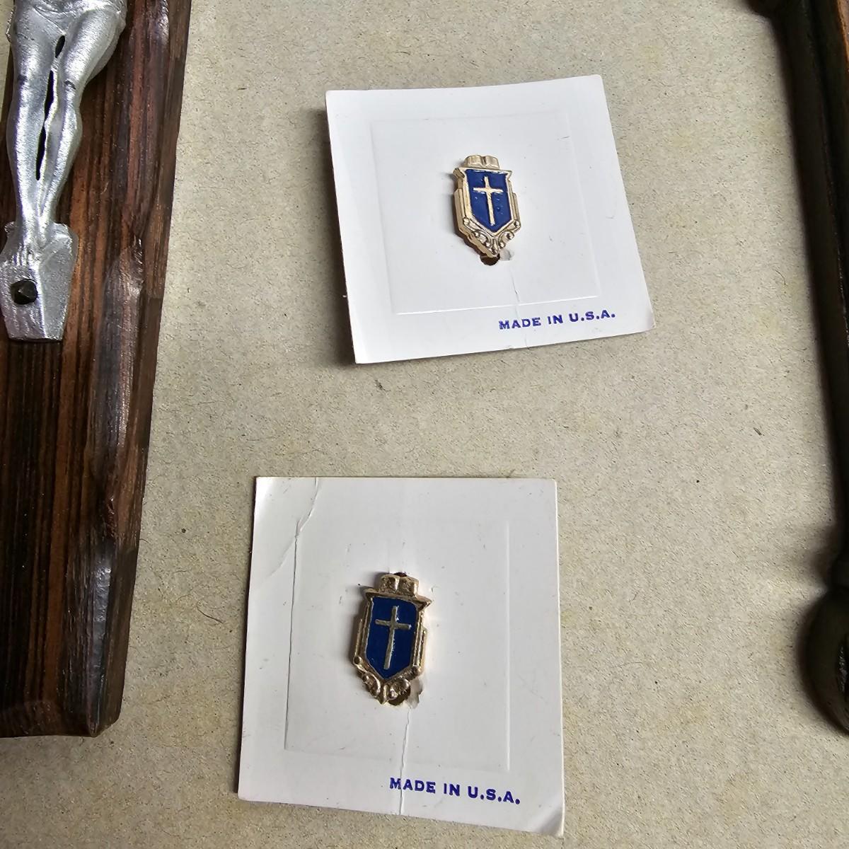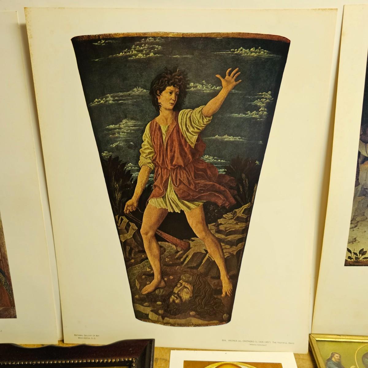 Several images of religious importance. Madonna and child, saints and symbols. Largest prints are 11" x 14", large wooden cross is 8" x 11"H. See photos for details. Shipping available.