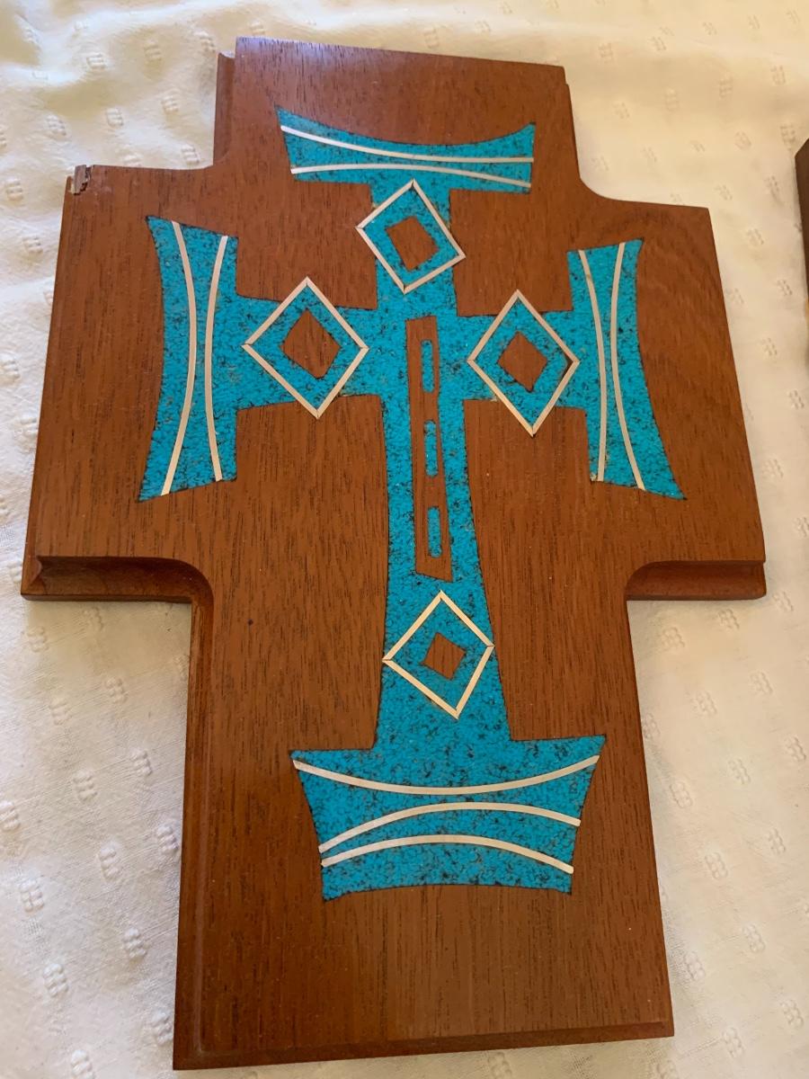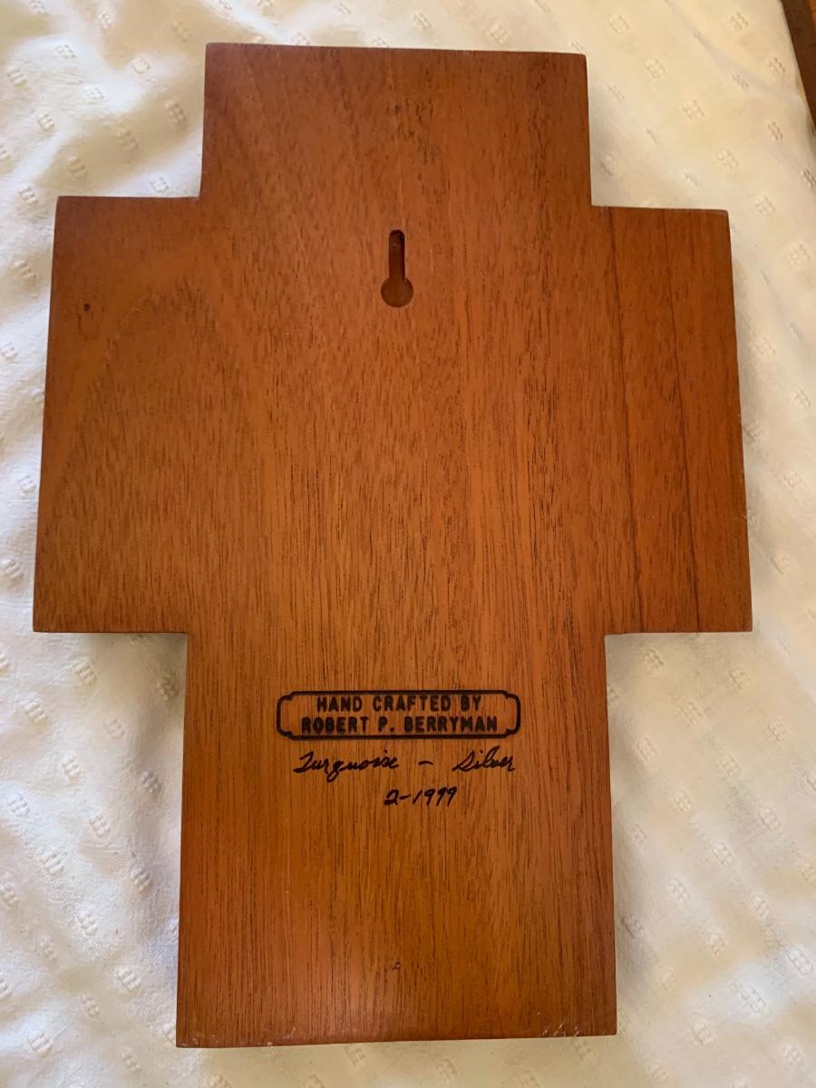 Words of Wisdom, frames art and Wood cross with “silver and turquoise” 1999 by Robert P Berryman