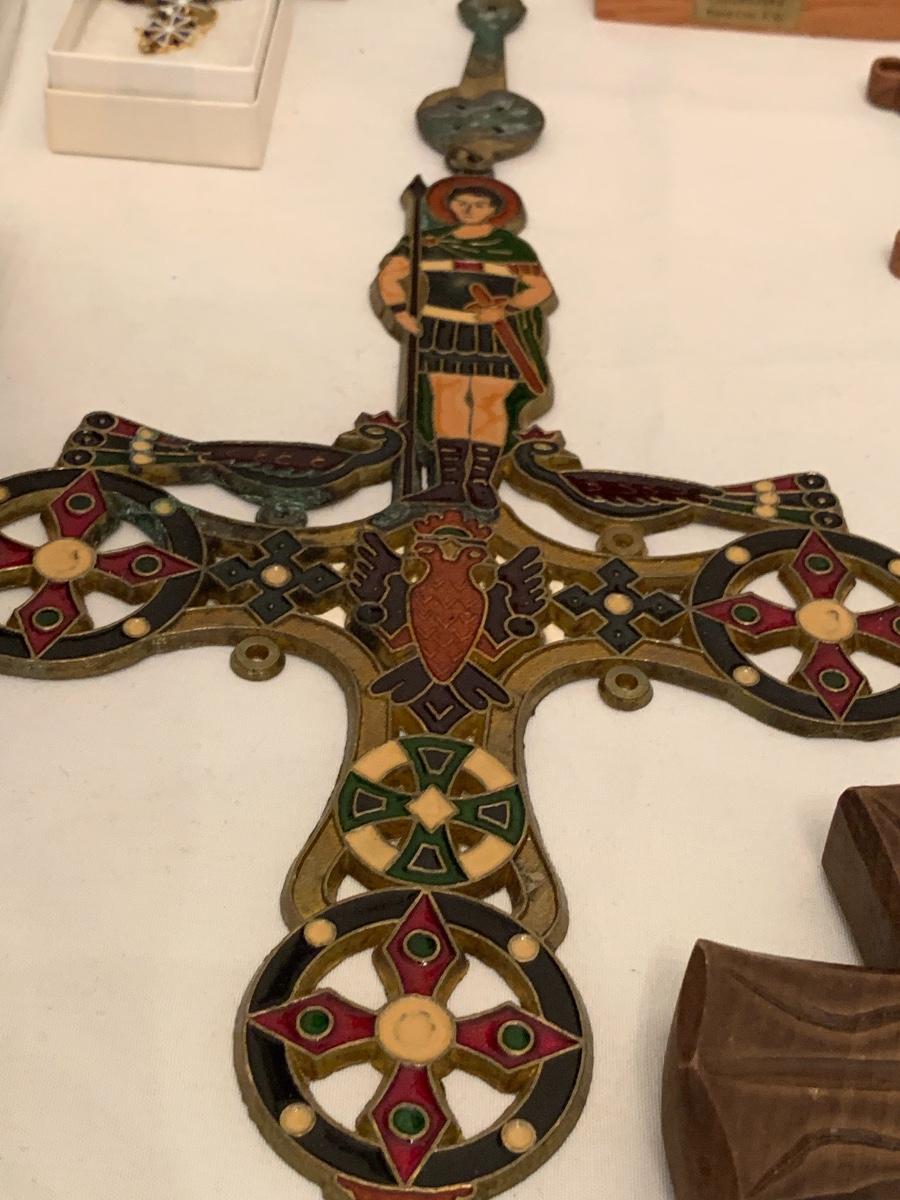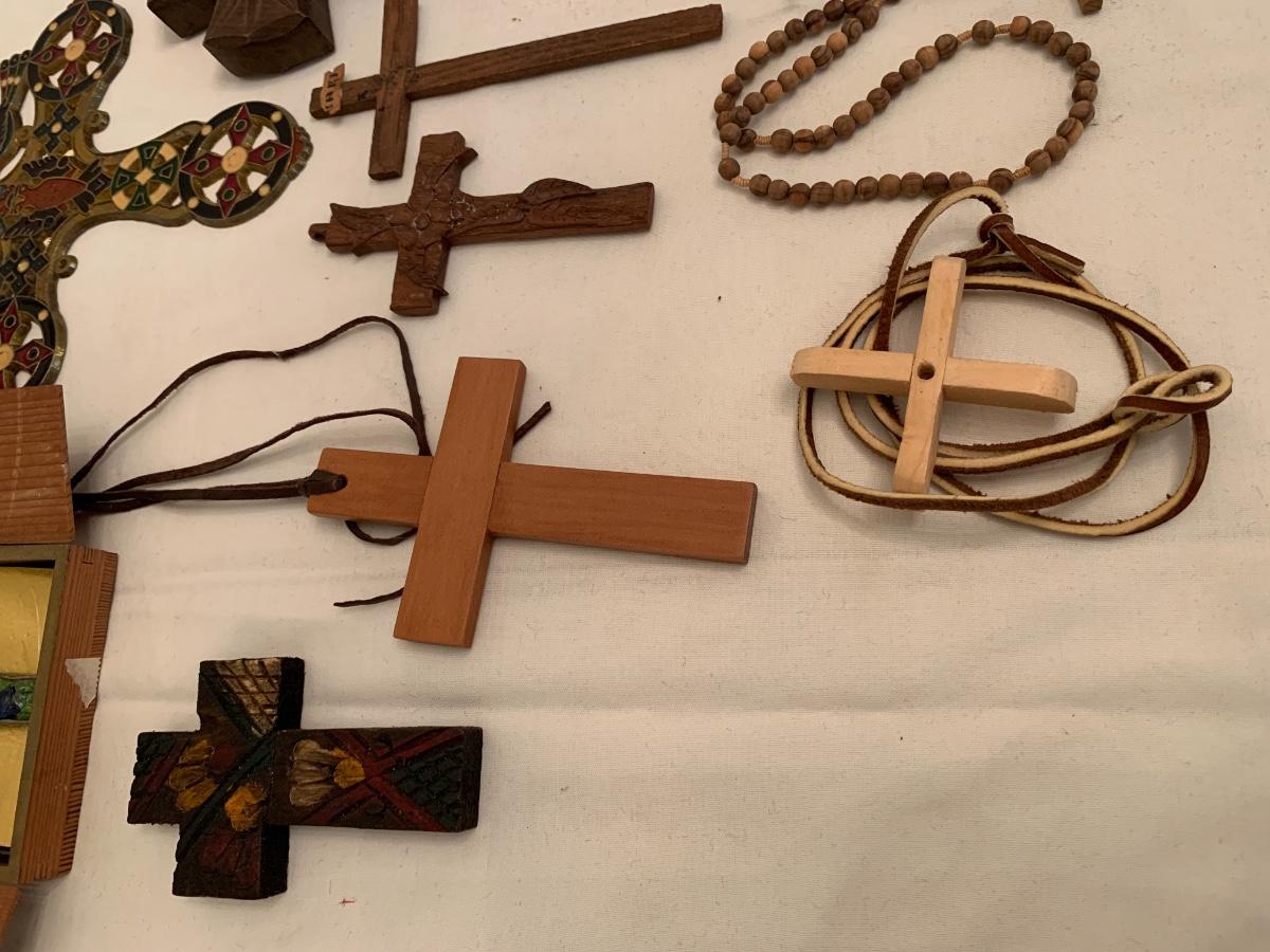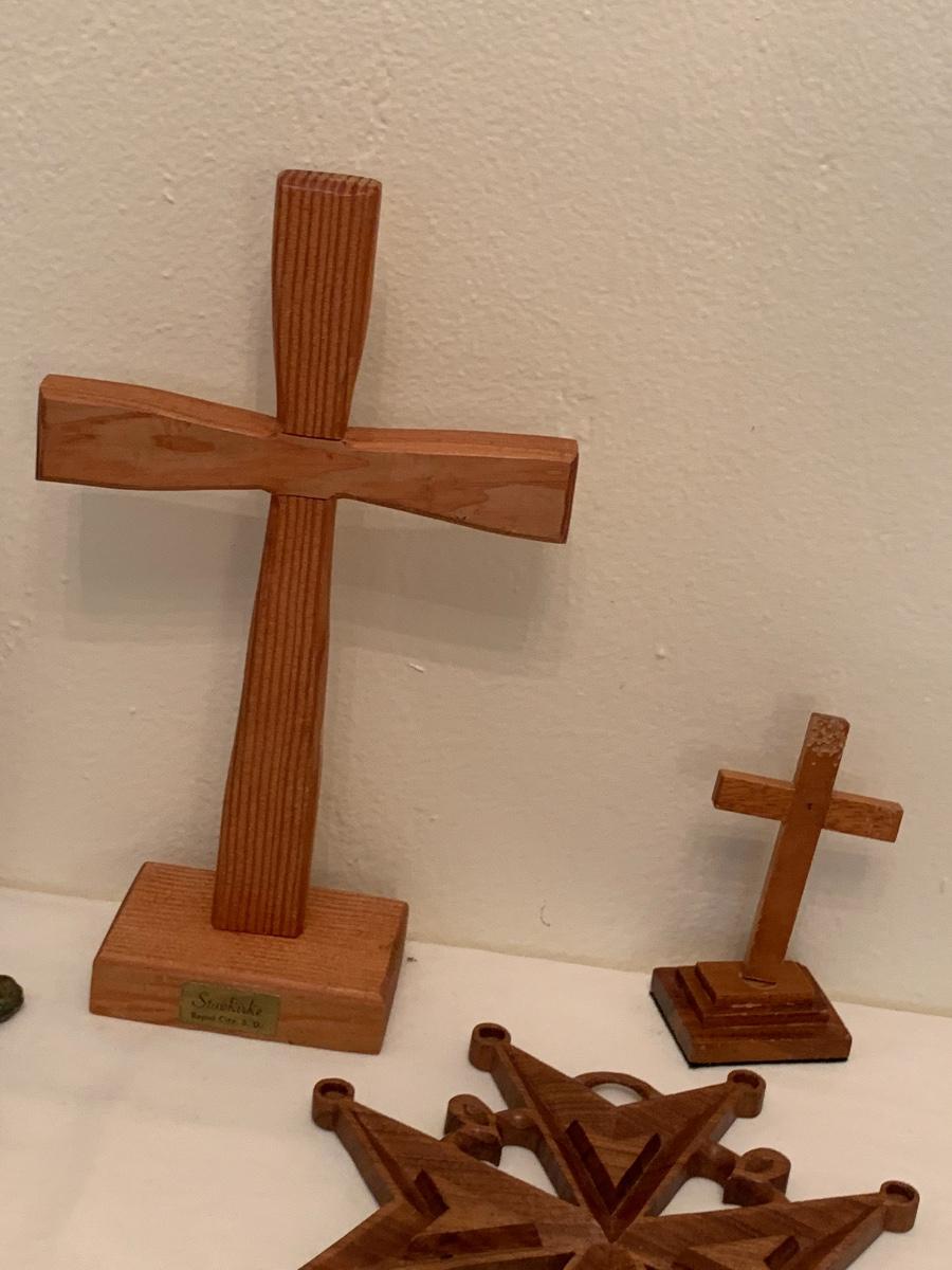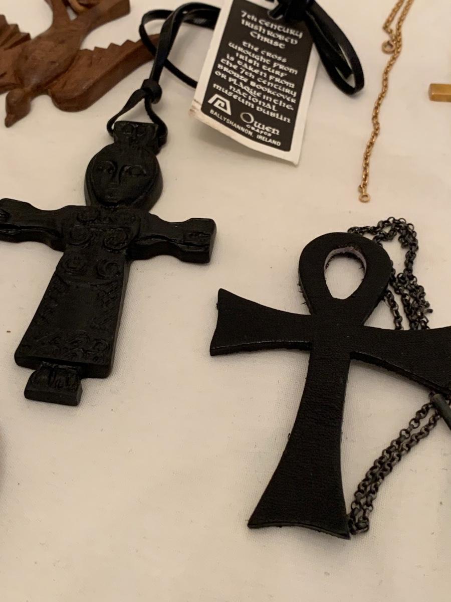 Large collection of religious items included crosses and crucifix made from wood and metal.