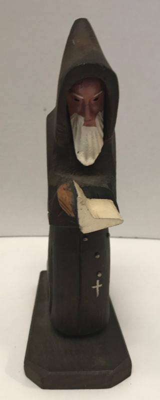Religious praying monk with holy book hand carved figurine. Material: Wood. Measurement approximate: 9.5 H. Shipping Cost:$17.00 excluding California, Hawaii & Alaska.