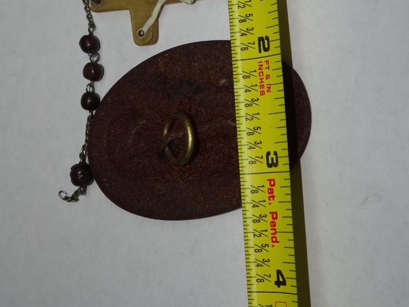 Note: the little copper virgin is not a pin, it hung or was attached to something.