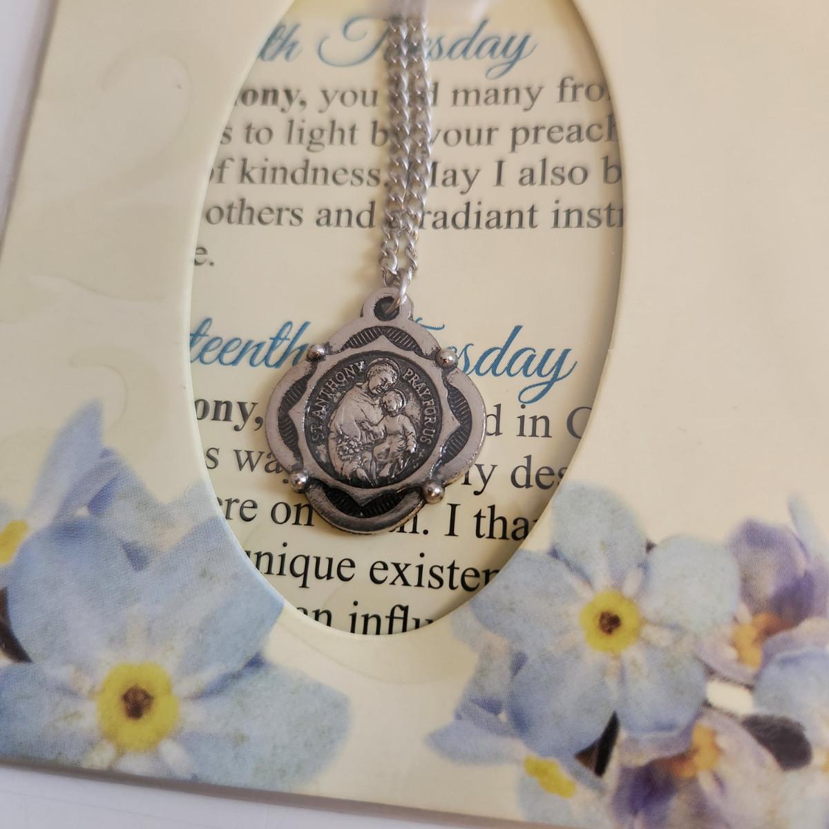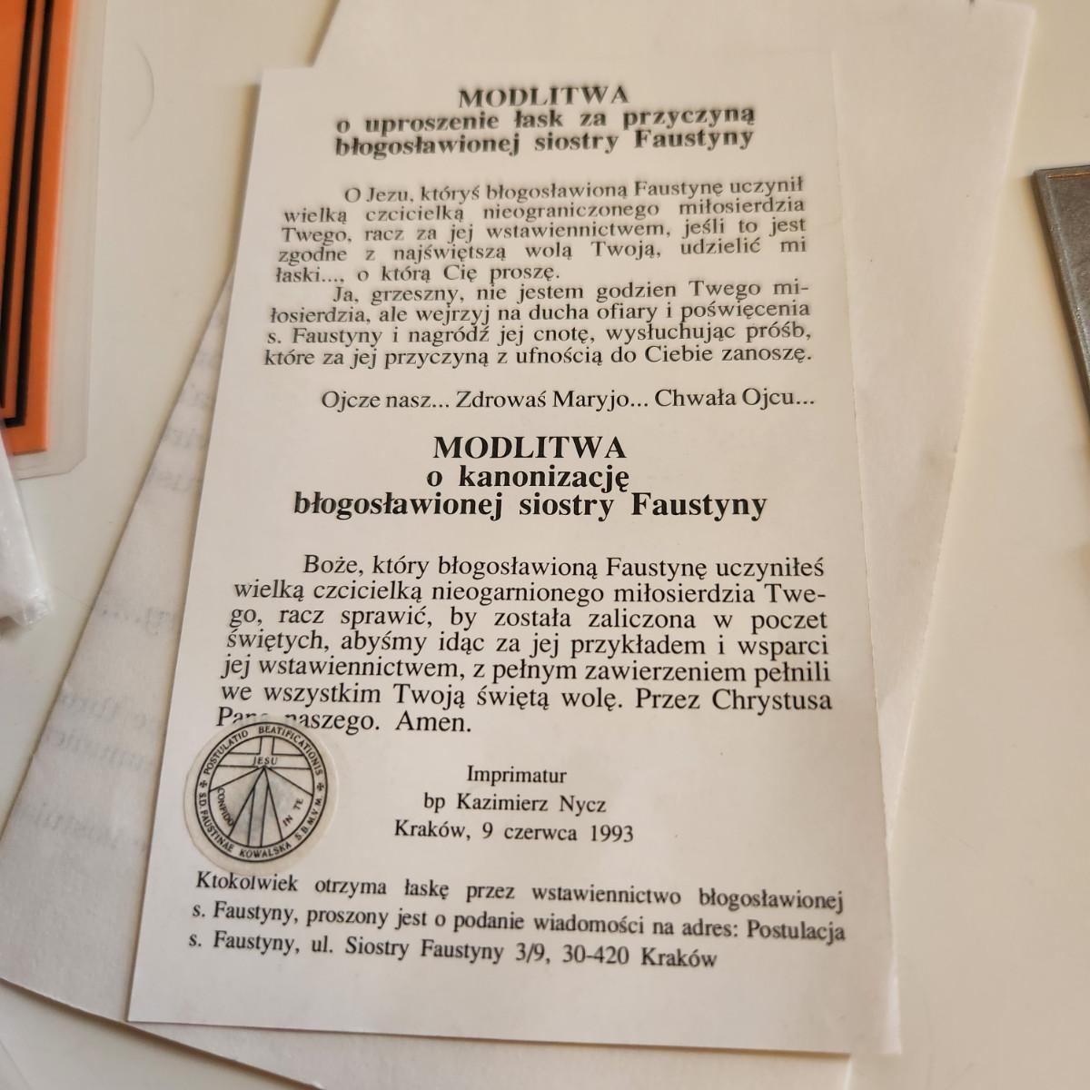 This auction lot is for a gathering of Religious Relics, Beads, Medal & Prayer Cards. This grouping includes "touched-to" relics of St. Jude, St. Theresa, St. Francis of Assissi and St. Faustina. Also included is a St. Theresa Chaplet of Beads and a medal of St. Anthony with a bookmark prayer of Thomas Merton.