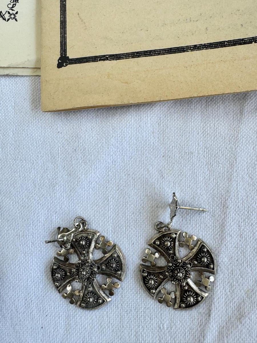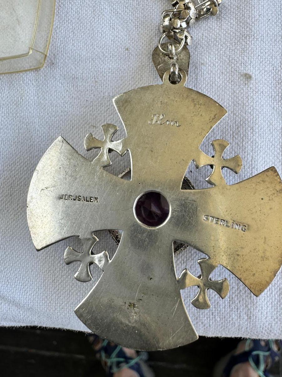 Religious sterling silver Jerusalem cross with Amethyst stone, Bibles