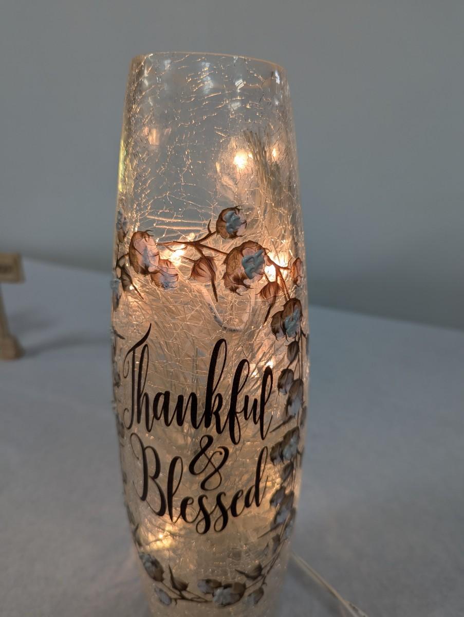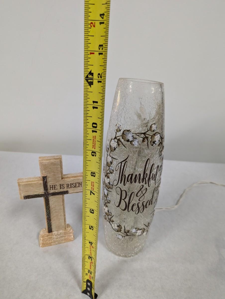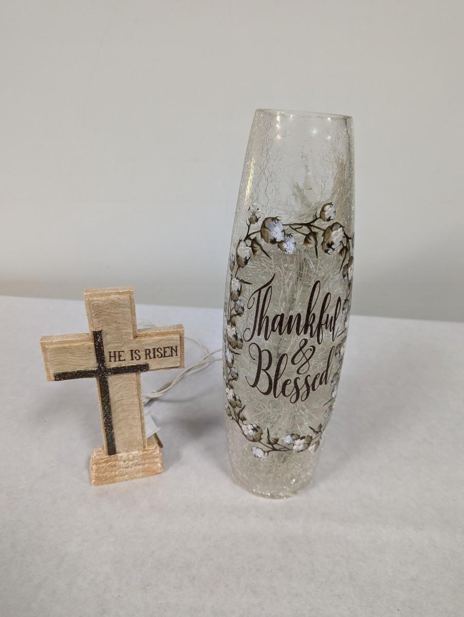 Religious Thankful & Blessed Pre-Lit Hurricane Light & Cross