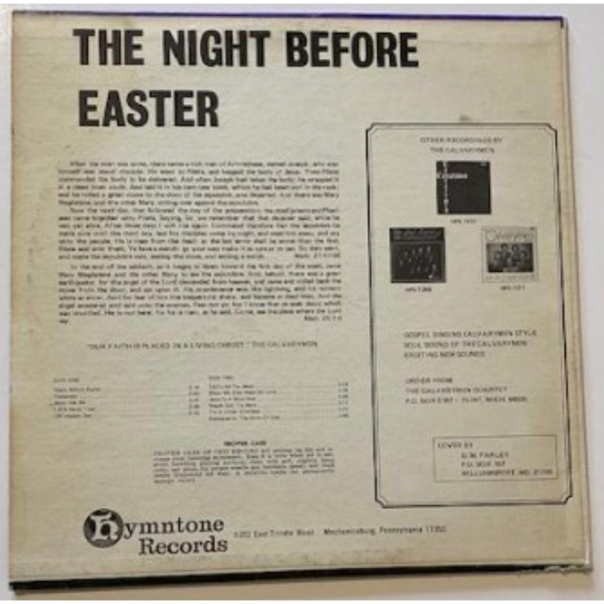 The Cavalrymen - The Night Before Easter - Hymntone Records - HPS 7485. The sleeve has some discoloration in the back. Thank you for looking. As a reminder, if this is a lot, we do not break up lots. Also, all items are prepacked, so each item is sent individually. Any item that qualifies for media mail and weighs over one pound will be shipped via media mail. Otherwise, the item will be shipped USPS ground advantage, or UPS ground. Shipping for this item is $9.00. Items ship within two days after payment is received. Item SKU is Vinyl 15.