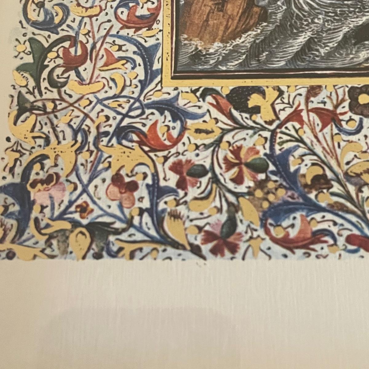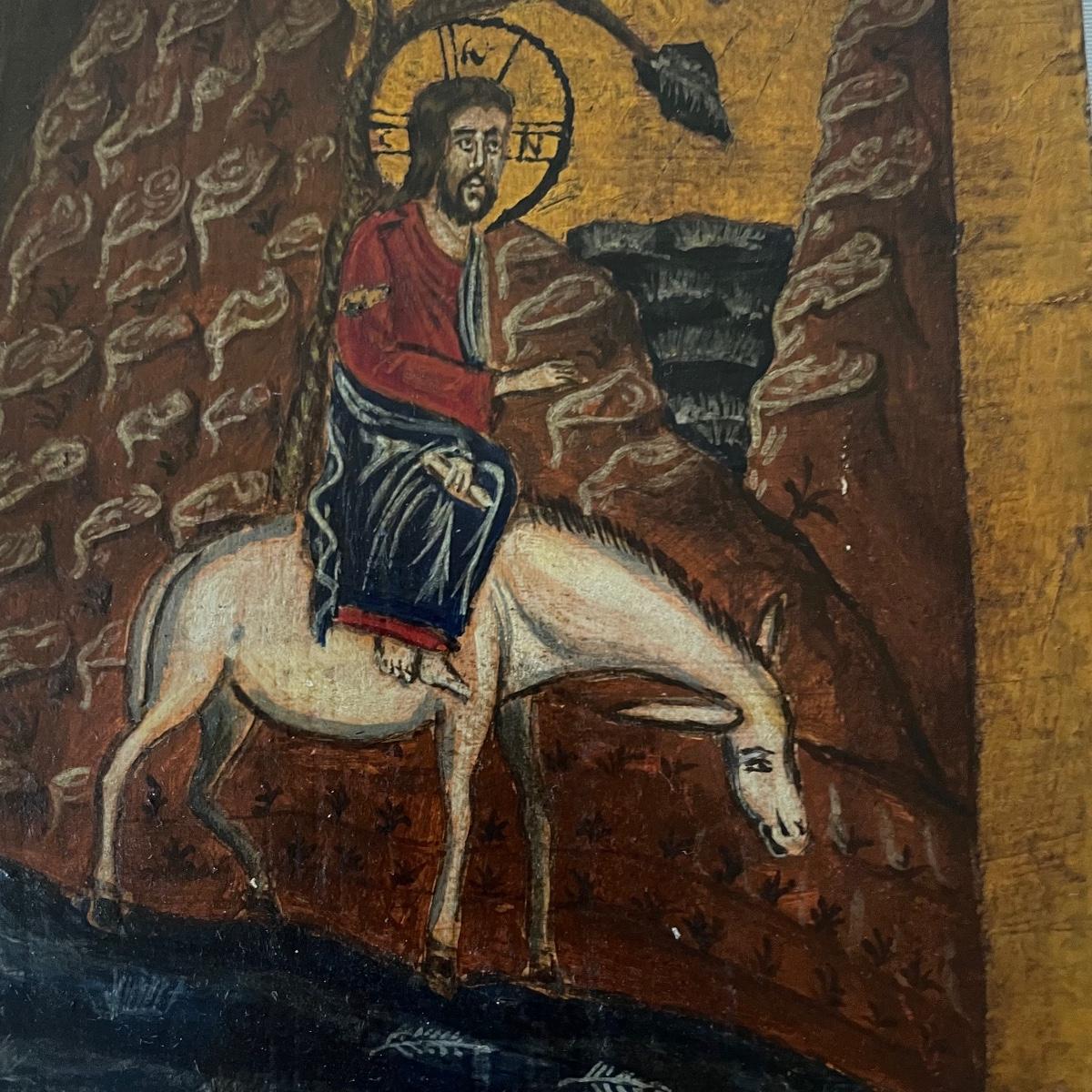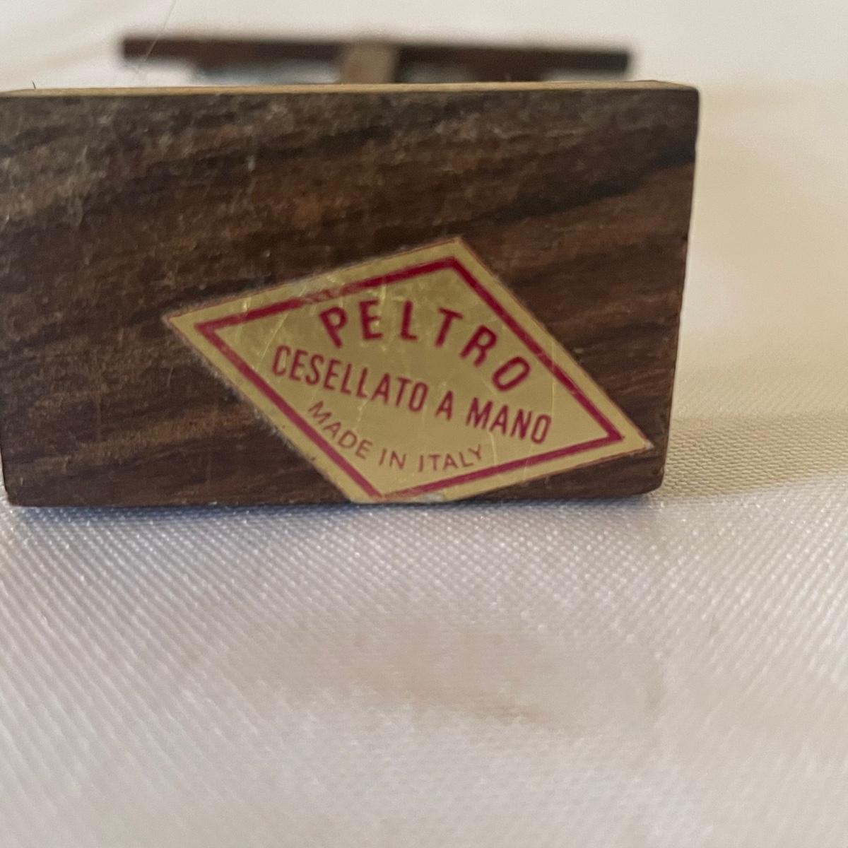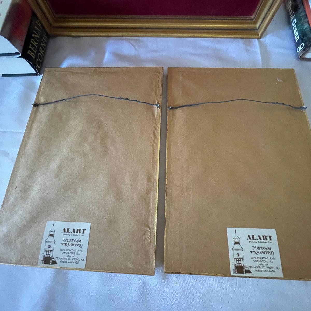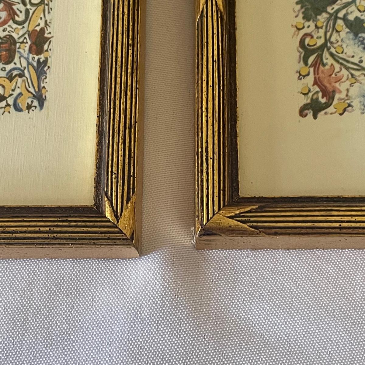The smallest piece which is the crucifix was Made in Italy and is wood and pewter. Also Italian made is the larger wood cross piece which measures 15” x 11” x 0.5”. Lot also includes four prints in a gilded frame with a red velvet like matting and two more prints in matching gilded frames. An additional wood piece with a religious scene that measures 5” x 8” x 0.5” is included in lot.