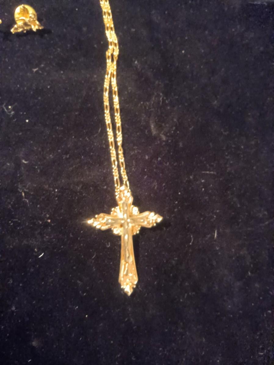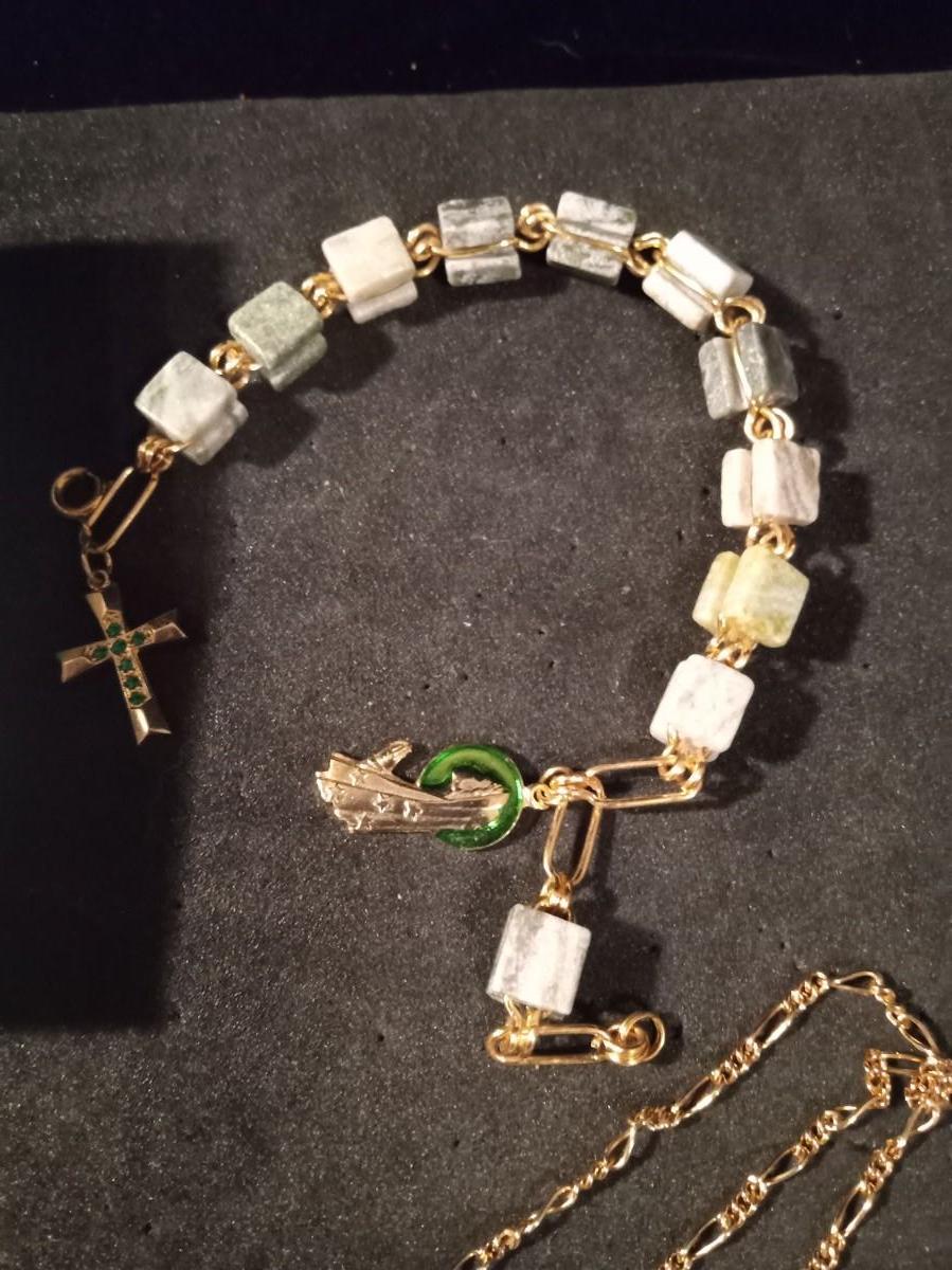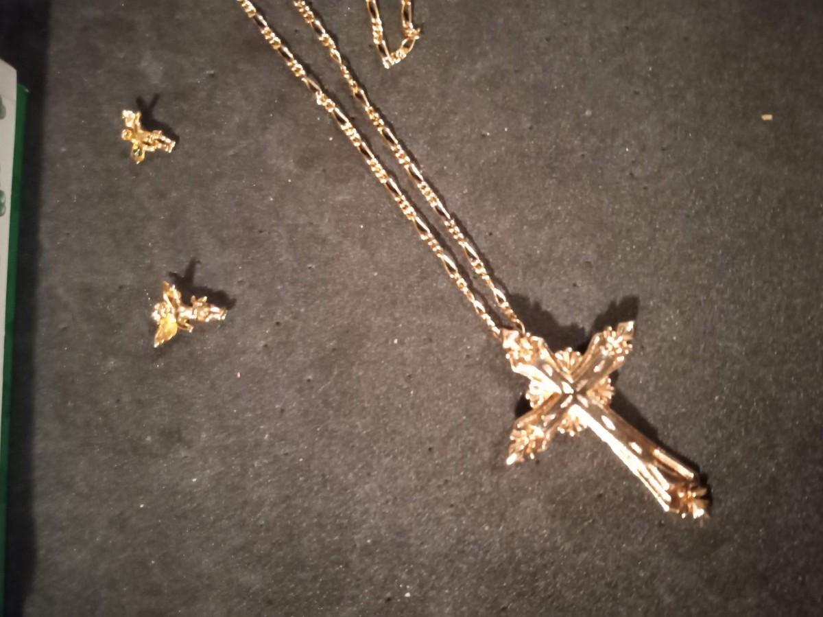 ROSARY BRACELET, CROSS PENDANT NECKLACE AND ANGEL PINS